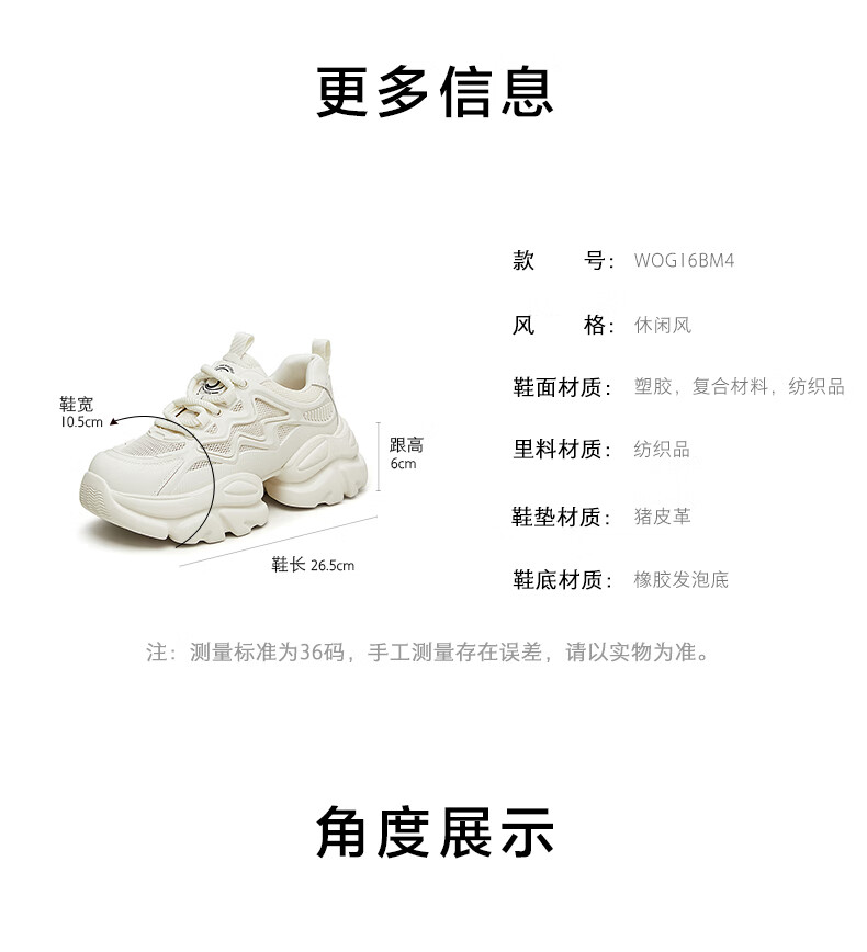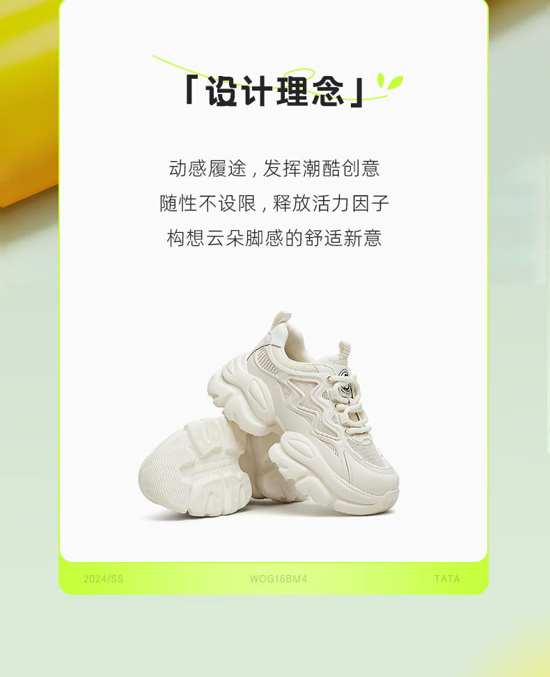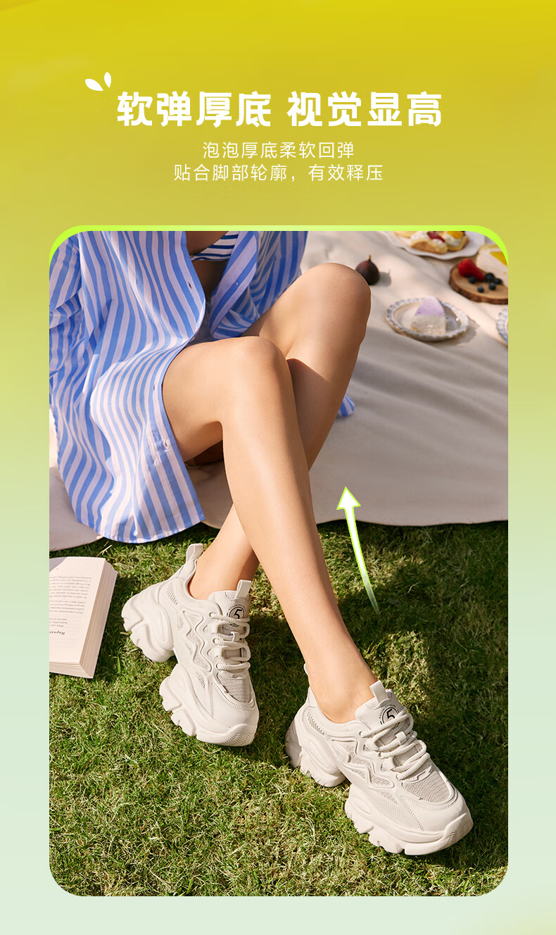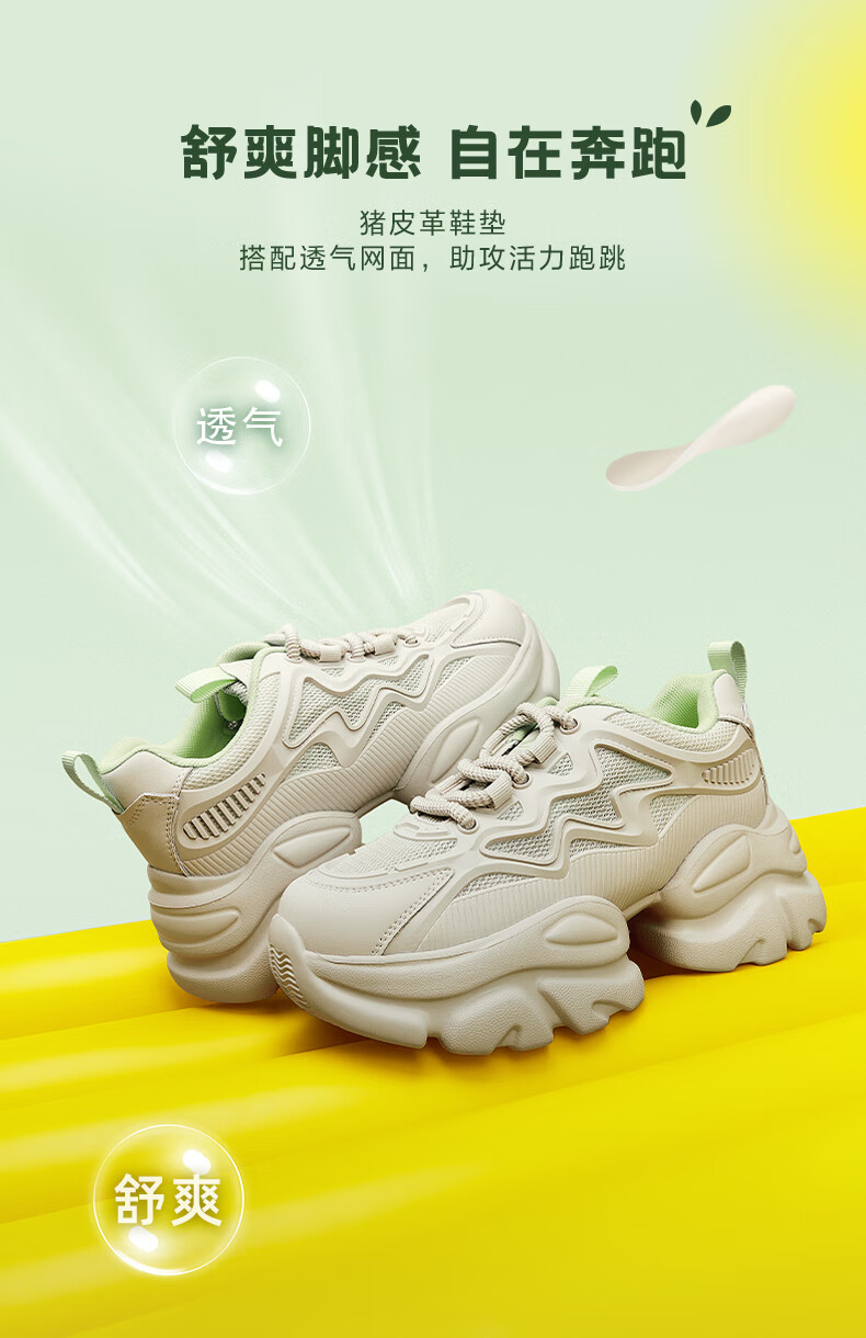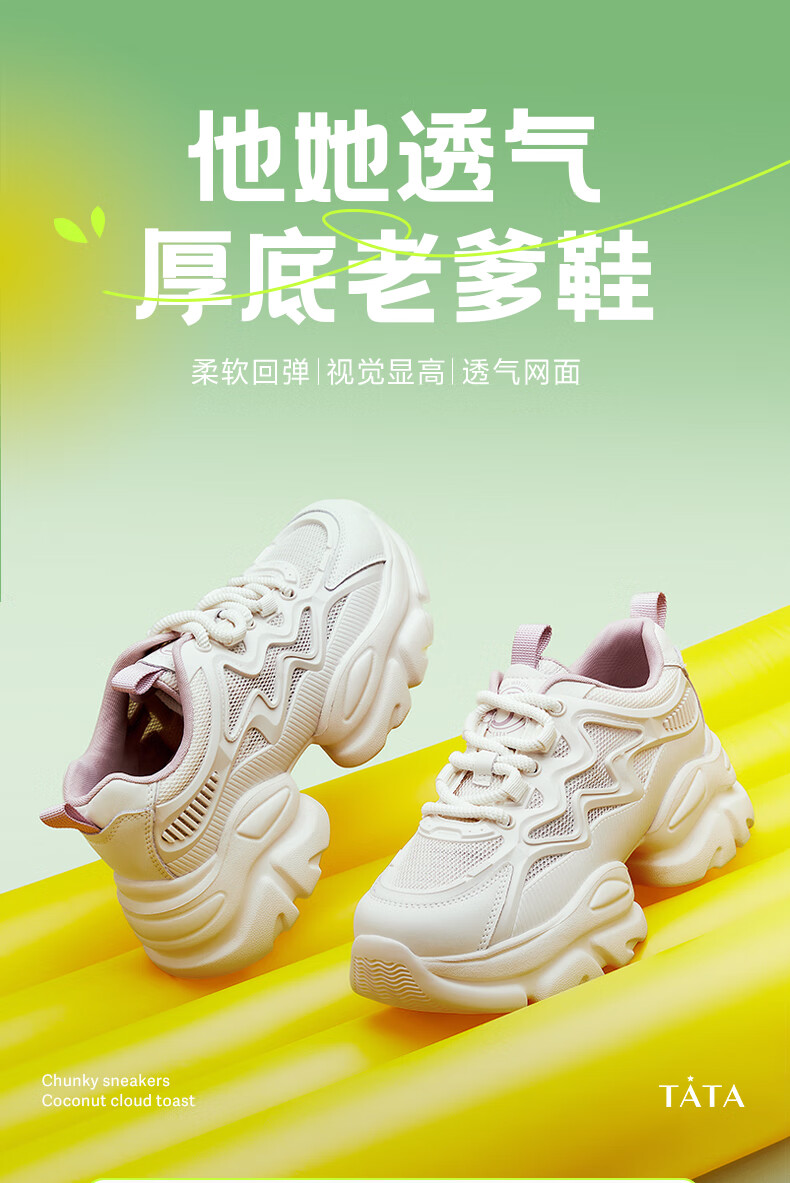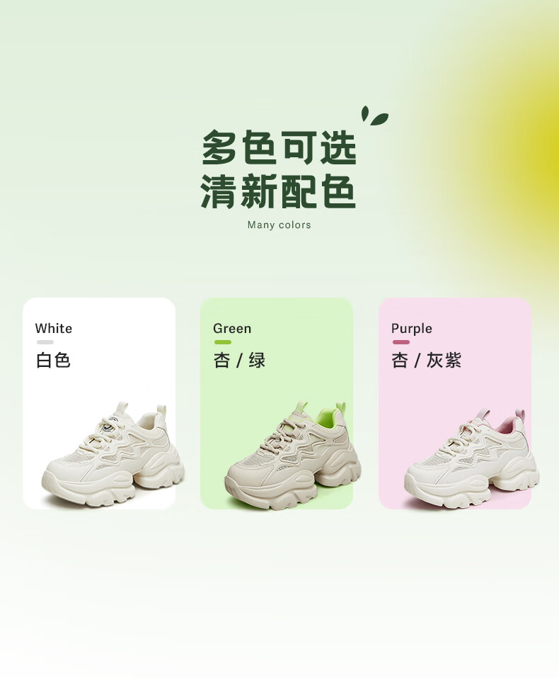 他她春秋厚底透气老爹鞋女鞋网面增高运动鞋新款WOG16BM4白/灰紫 37