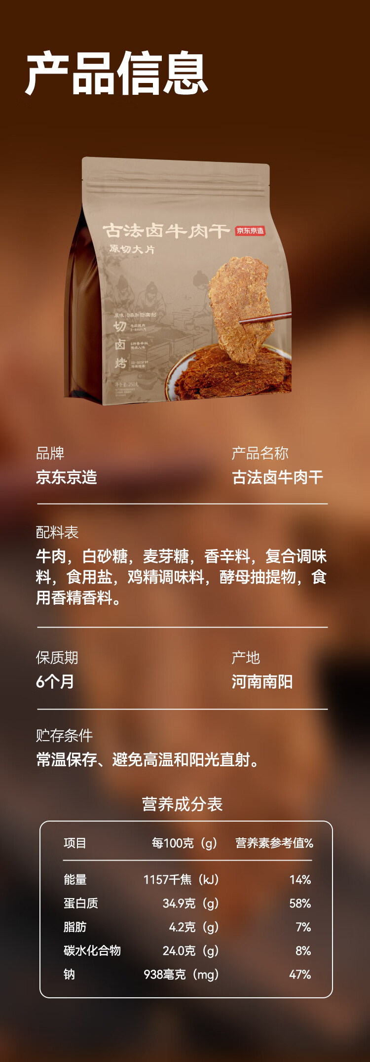 京东京造 【10包】湖岭风味古法卤牛肉干250g 手撕肉片肉脯0防腐剂零食