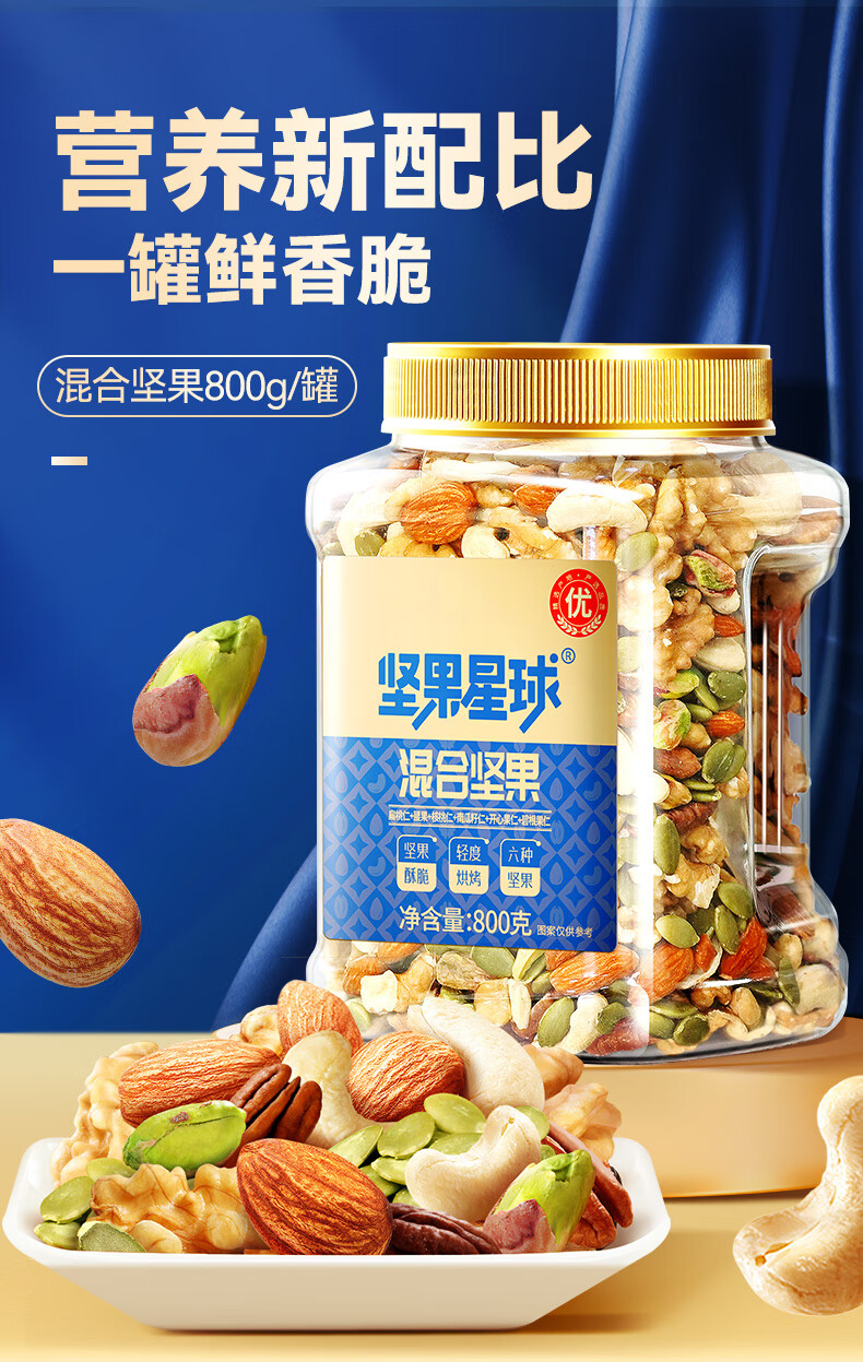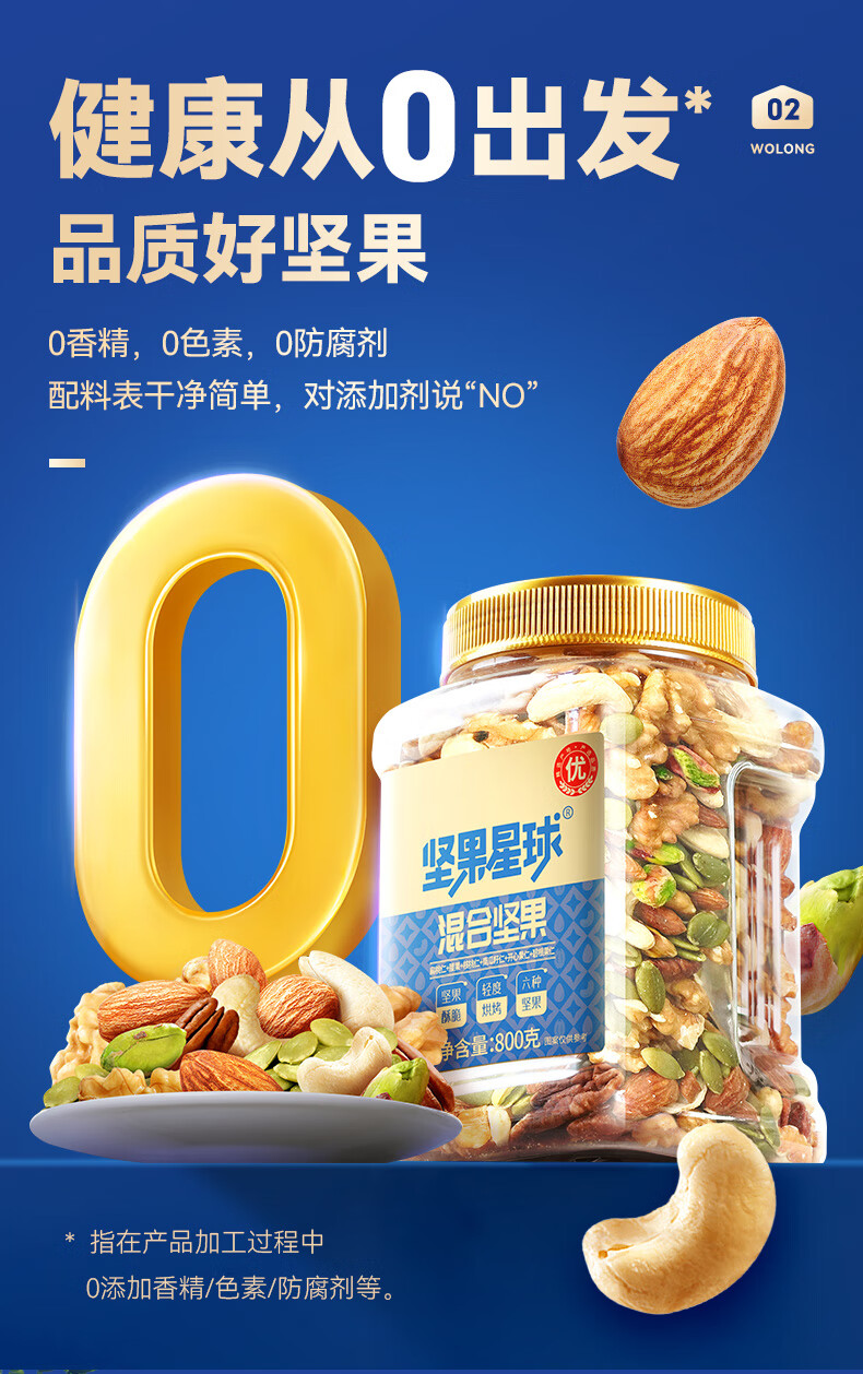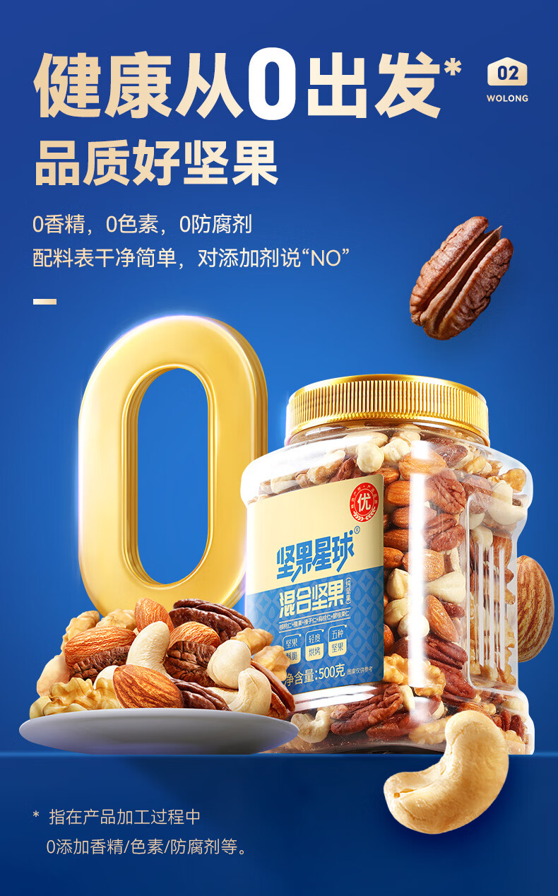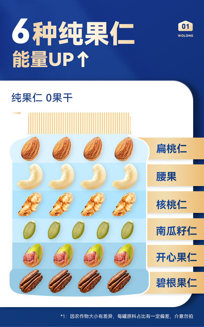 沃隆沃隆 每日坚果炒货SS混合坚果果仁果干核桃扁桃仁腰果零食大礼包 【5种纯坚果仁】500g