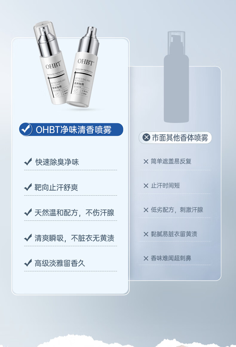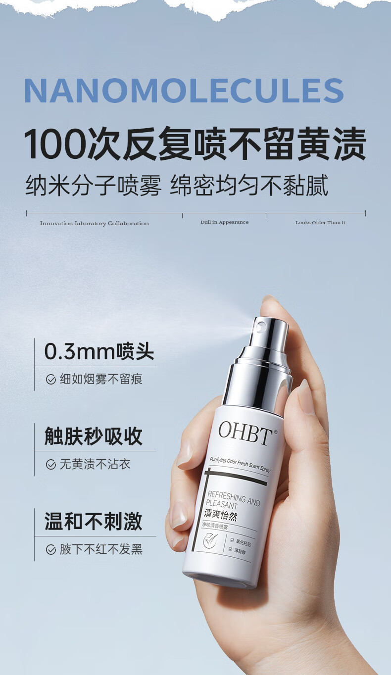 OHBT止汗露狐臭腋下除臭止汗喷雾50ml男女士专用四氯羟铝锆异味根除液