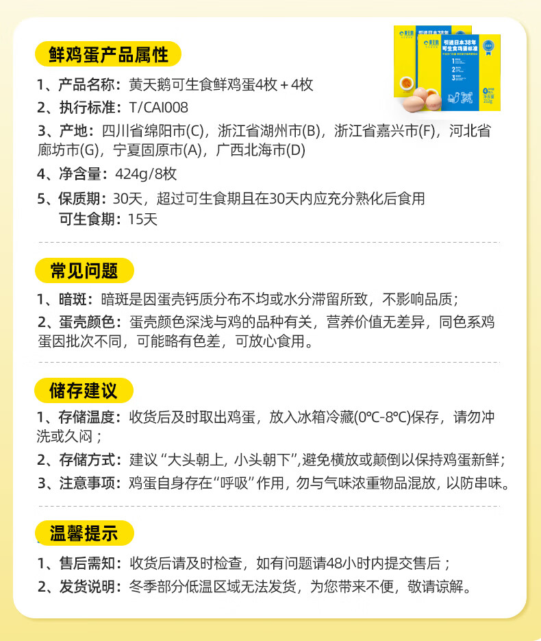 黄天鹅可生食鸡蛋 8枚单枚53g礼盒装早餐鲜鸡蛋生鲜源头直发 无抗生素