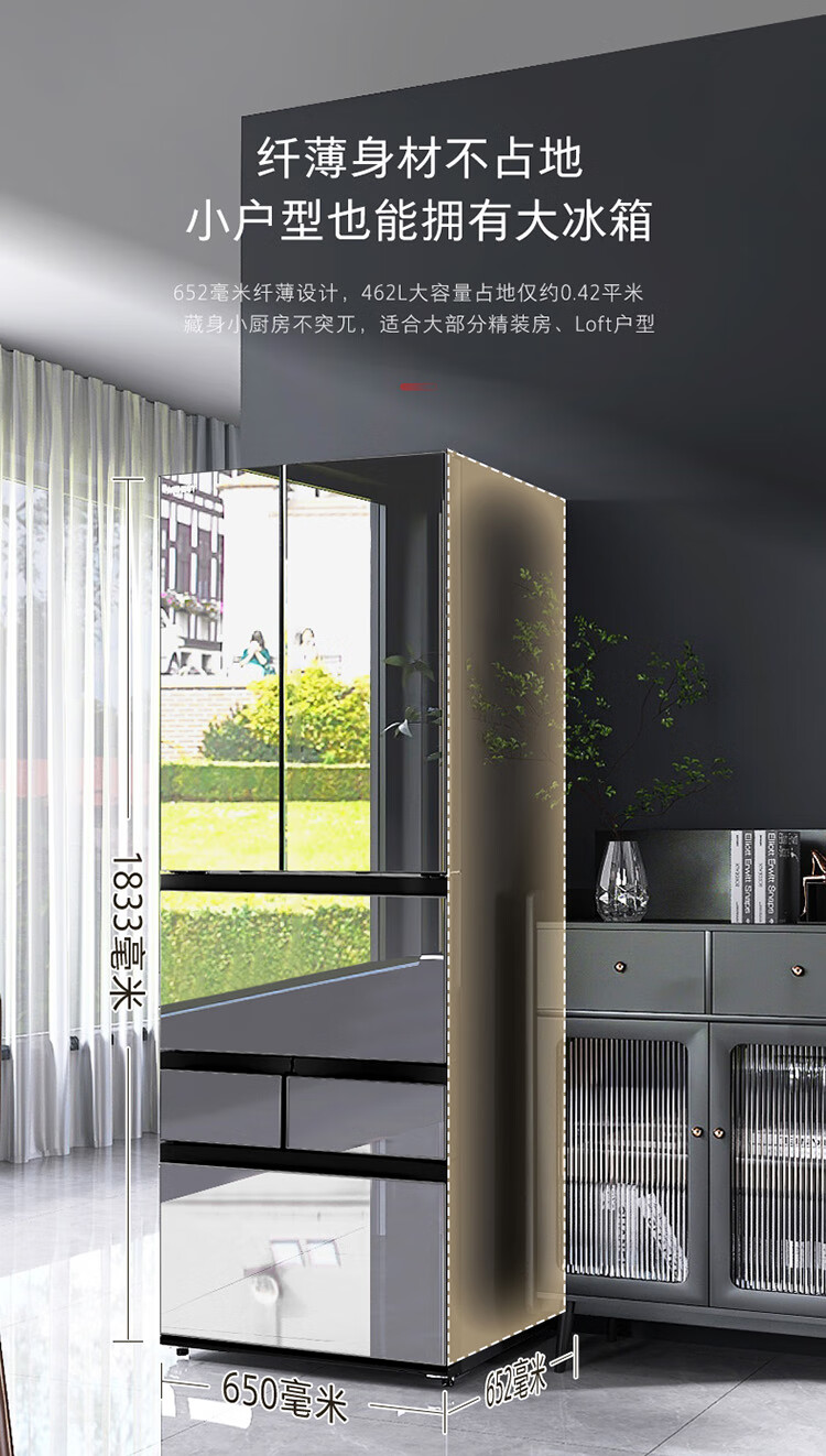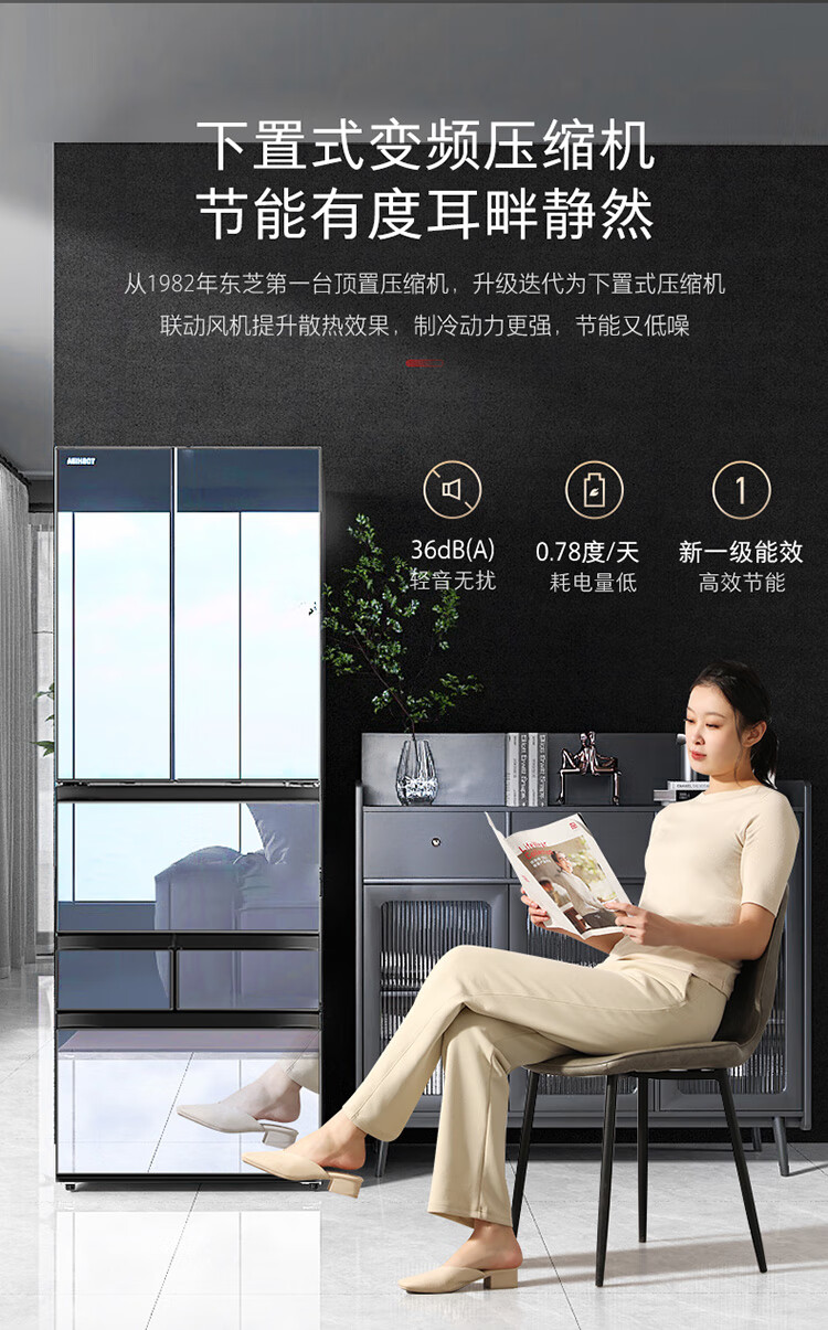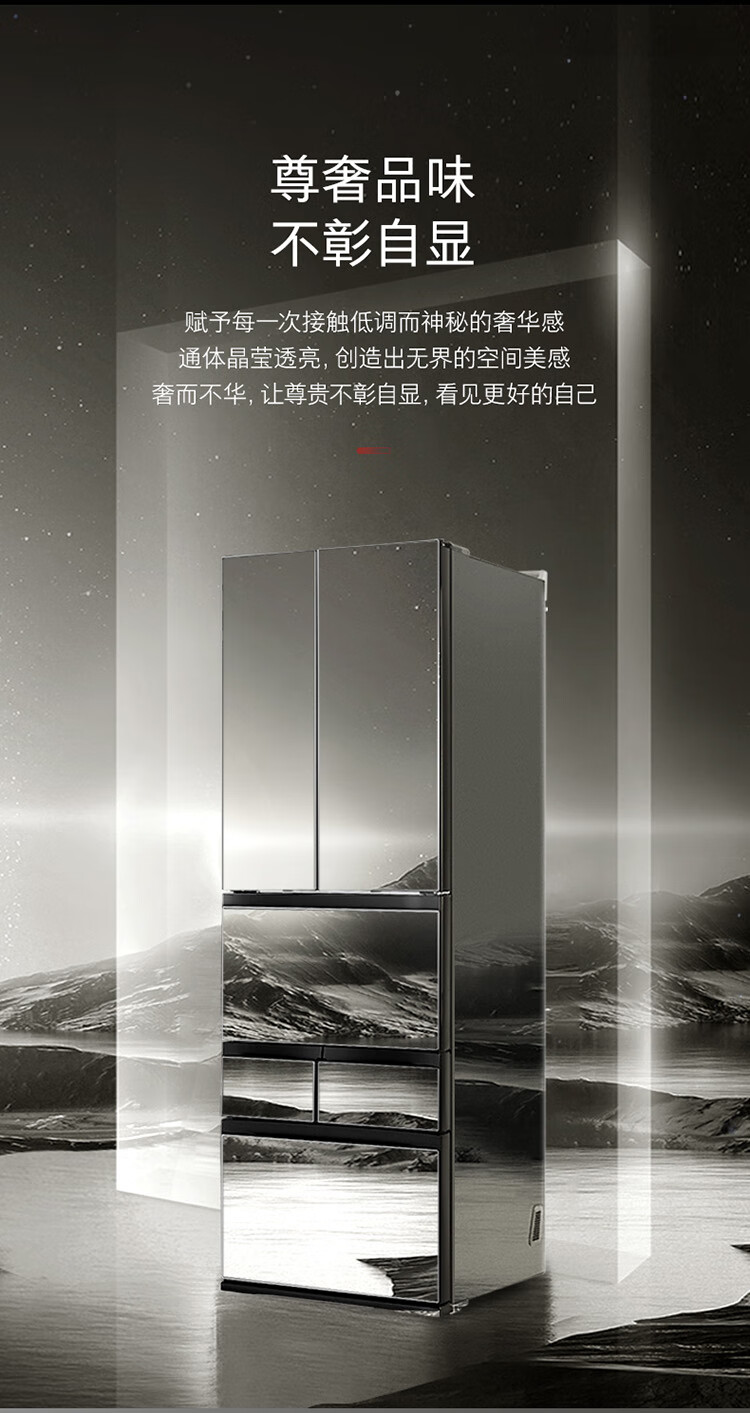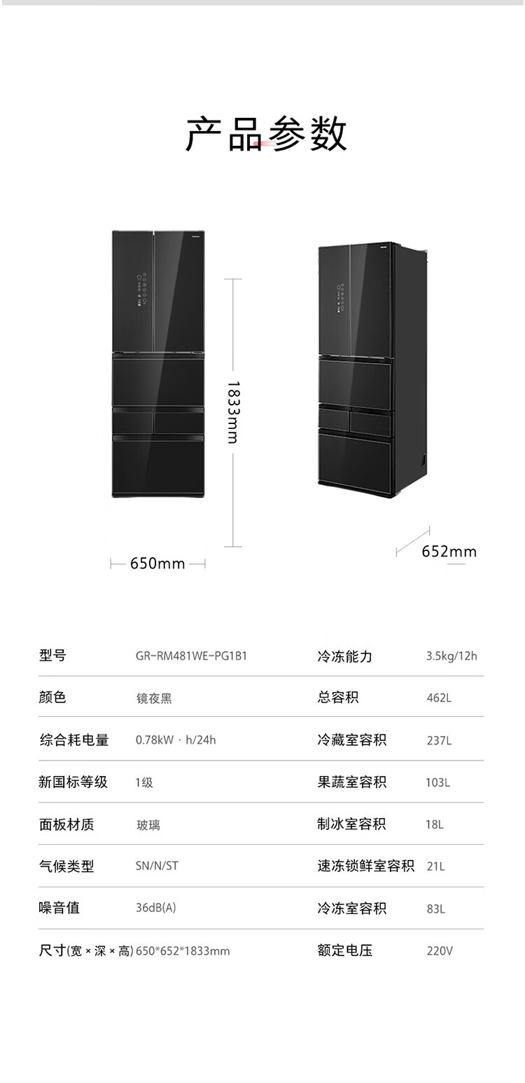 东芝(TOSHIBA)黑钻石481日式多门双系统循环镜面超薄一级能效六门家用自动制冰冰箱国家补贴GR-RM481WE-PG1B1