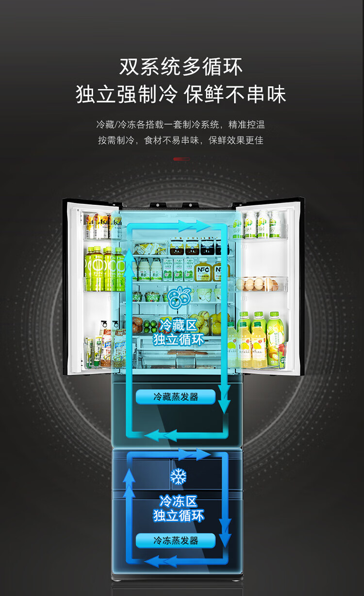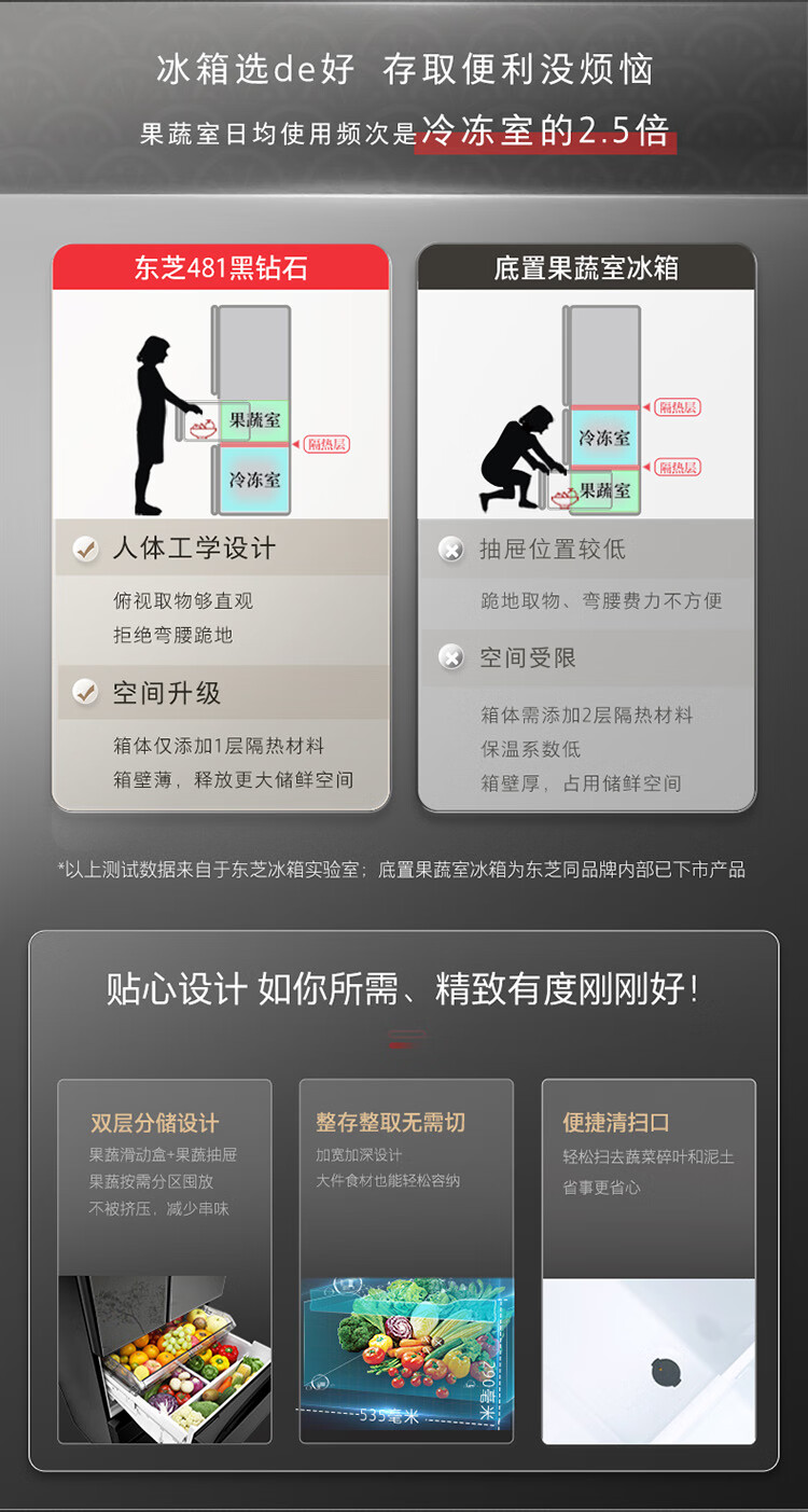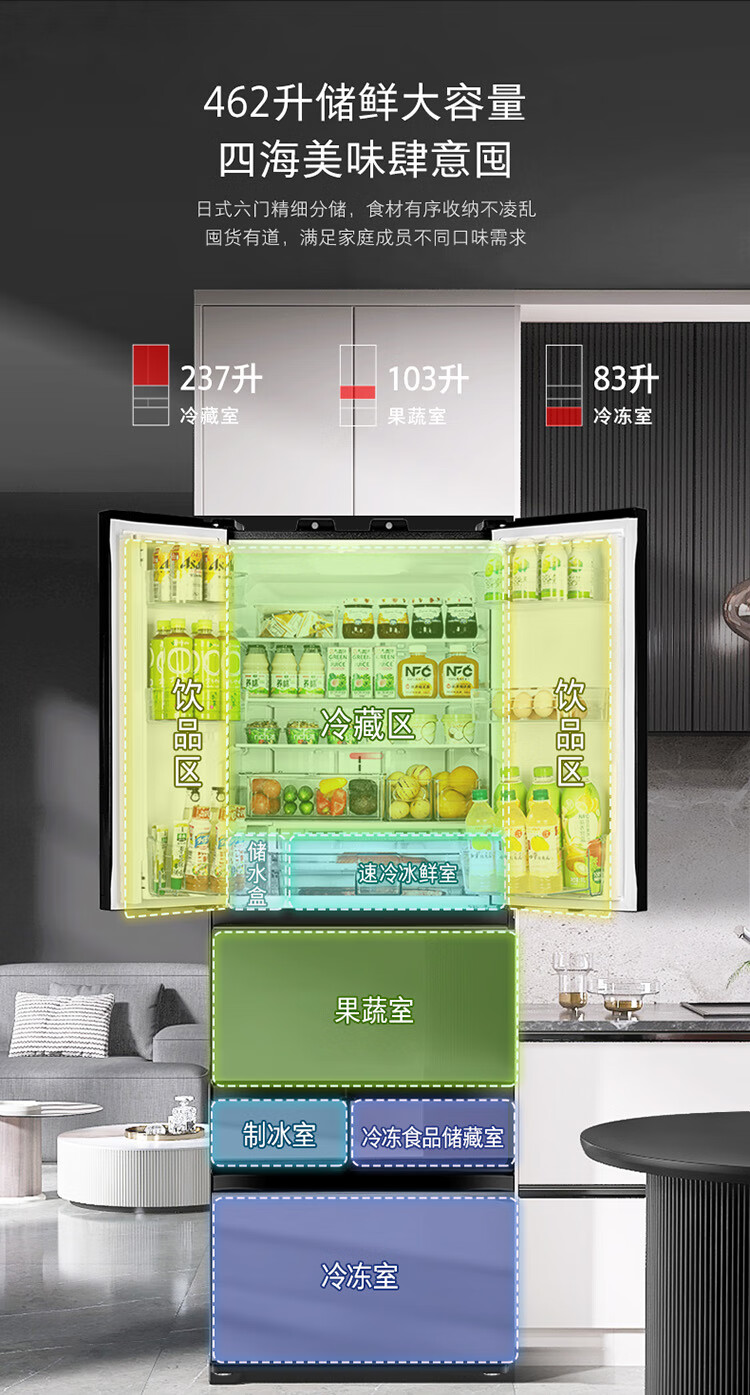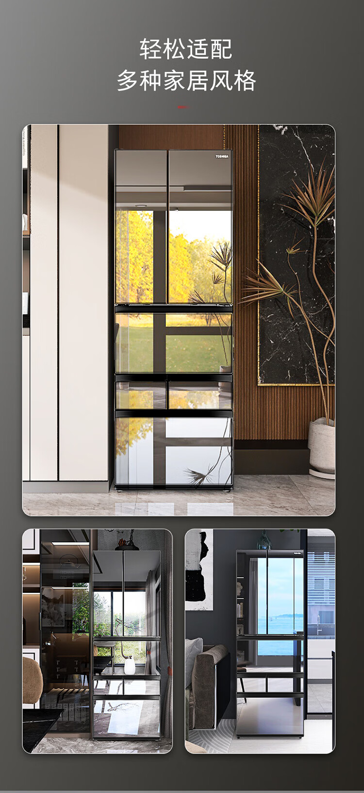 东芝(TOSHIBA)黑钻石481日式多门双系统循环镜面超薄一级能效六门家用自动制冰冰箱国家补贴GR-RM481WE-PG1B1