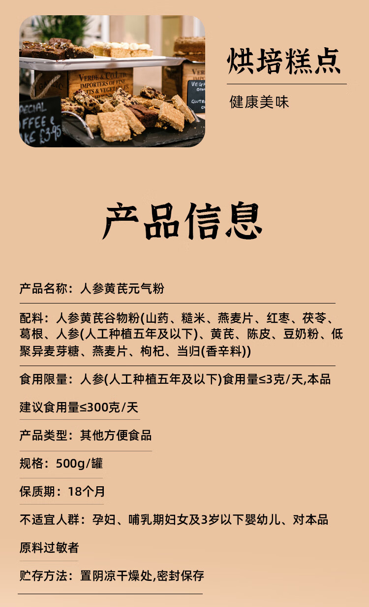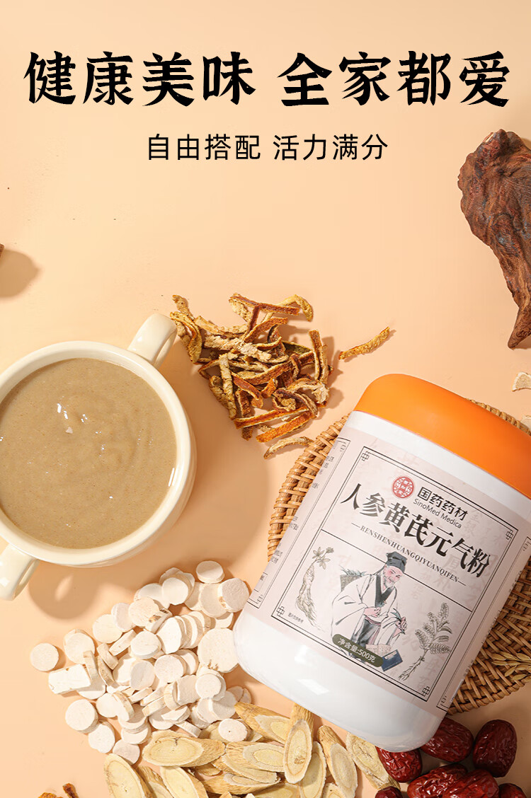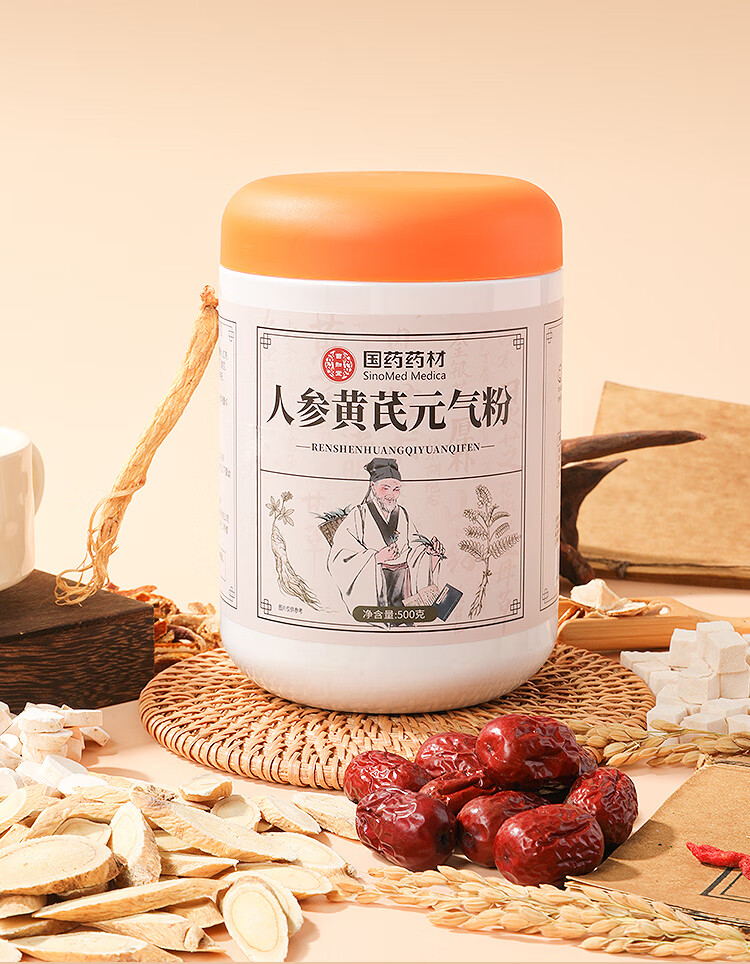 西知堂 国药人参黄芪元气粉500g早餐代餐饱腹冲泡即食山药红枣茯苓粉