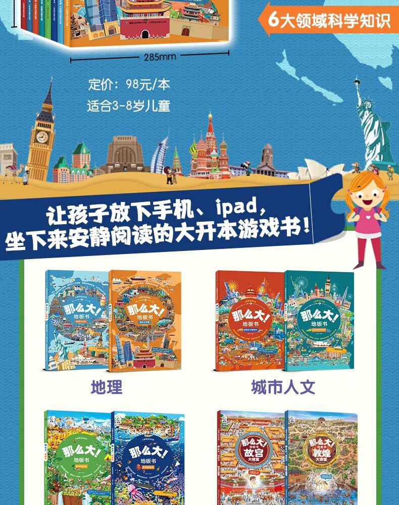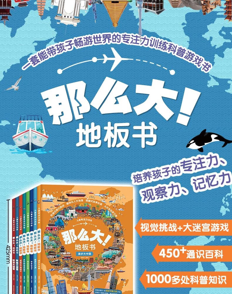 那么大地板书全套8册超大宝宝绘本 儿童这么大的地板书专注力训练中国世界地理故宫敦煌历史人文知识科普奇妙的自然海洋翻翻书孩子思维训练注意观察力找不同玩具书益智游戏书迷宫幼儿3-6岁绘本早教书籍 地板书漫