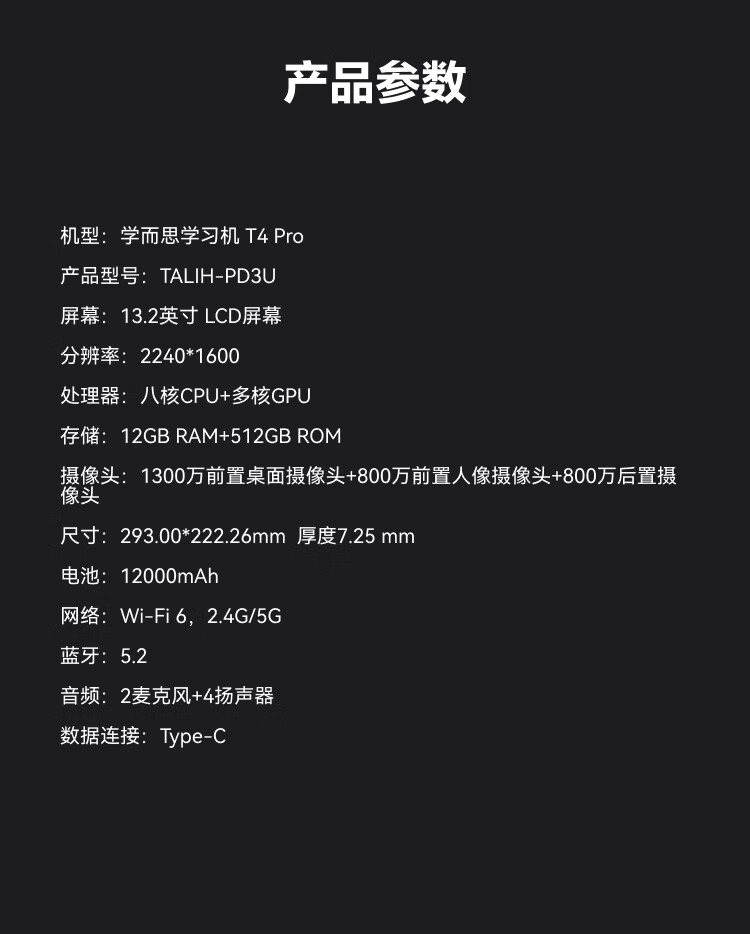 学而思学习机T4 Pro【2025新款】新课标新考法超大内存学习平板电脑启蒙小学初中高中13.2英寸 12+512GB