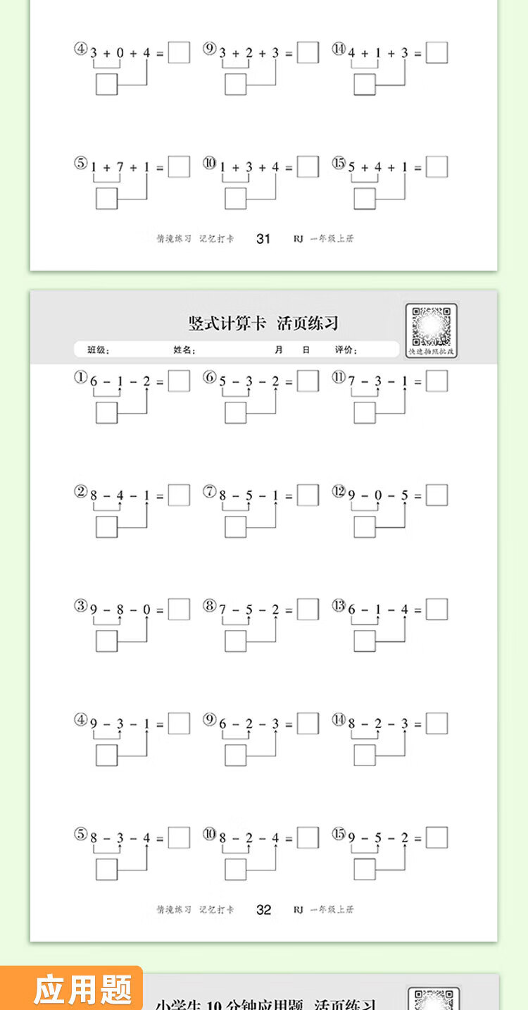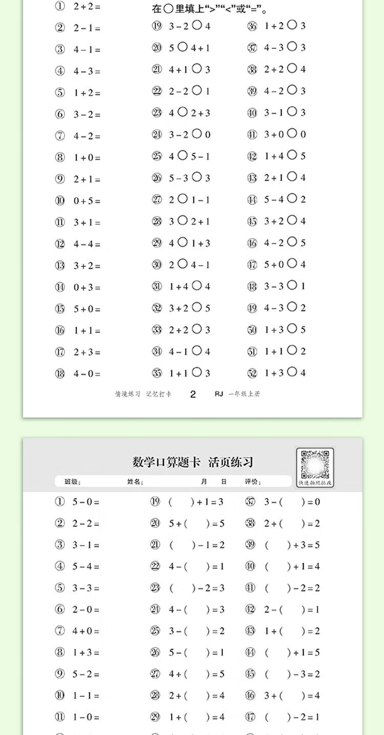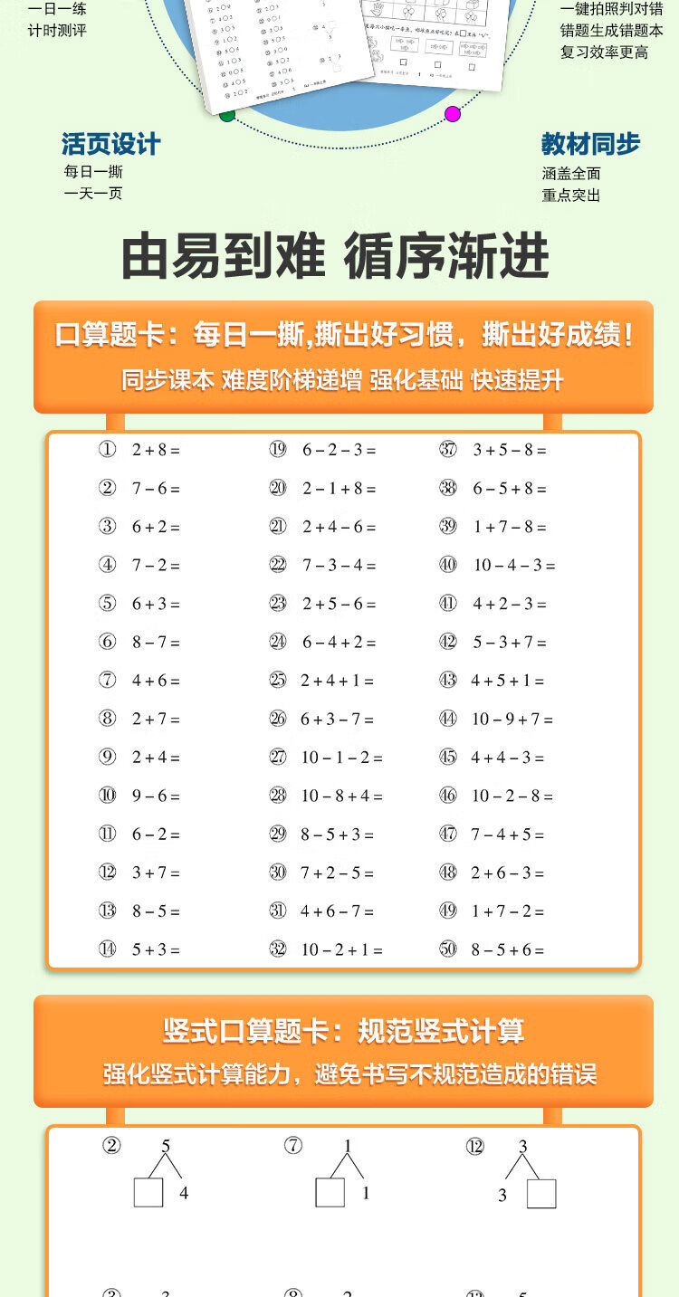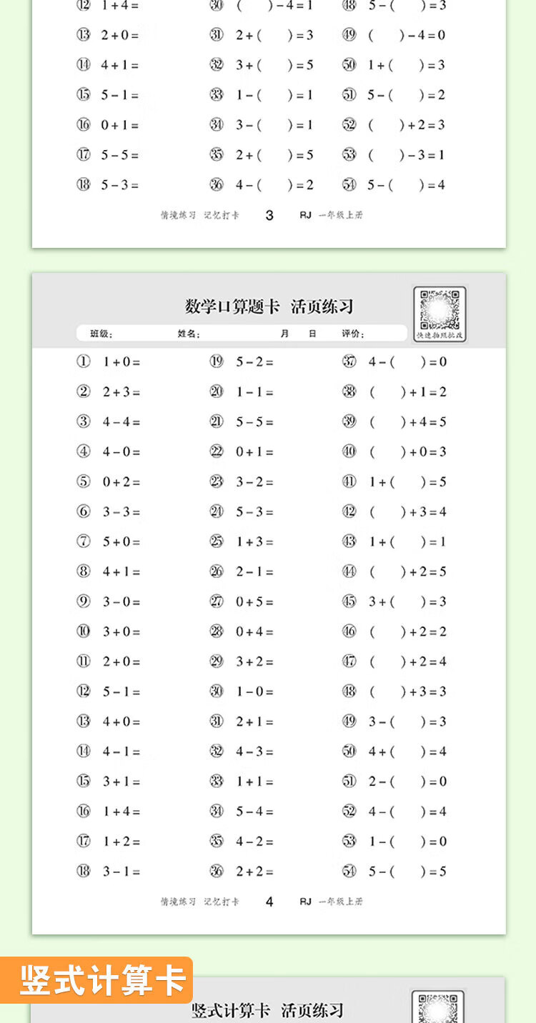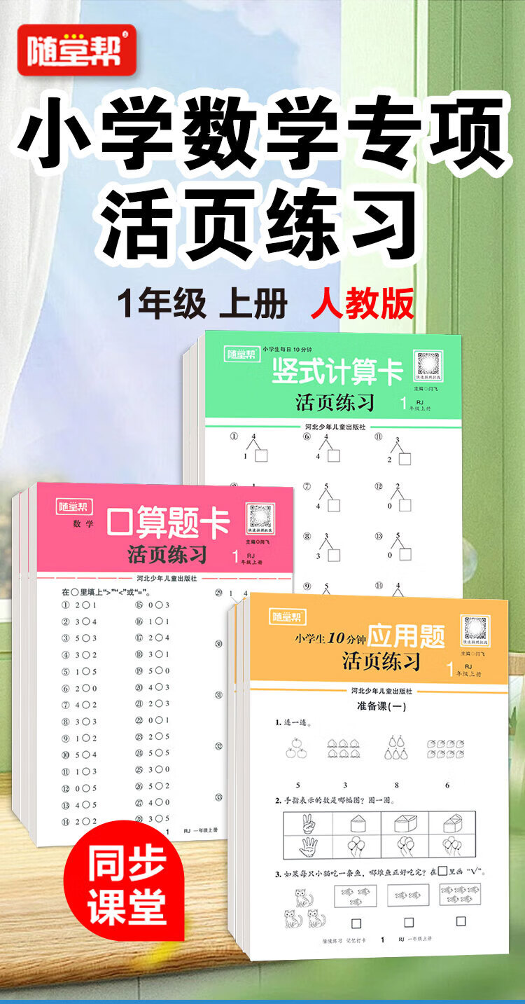 随堂帮24秋活页口算题卡竖式计算卡应用题题卡天天练组套加强版人教版北师大版冀教版江苏版1-6年级 【人教版】活页口卡 一年级上册