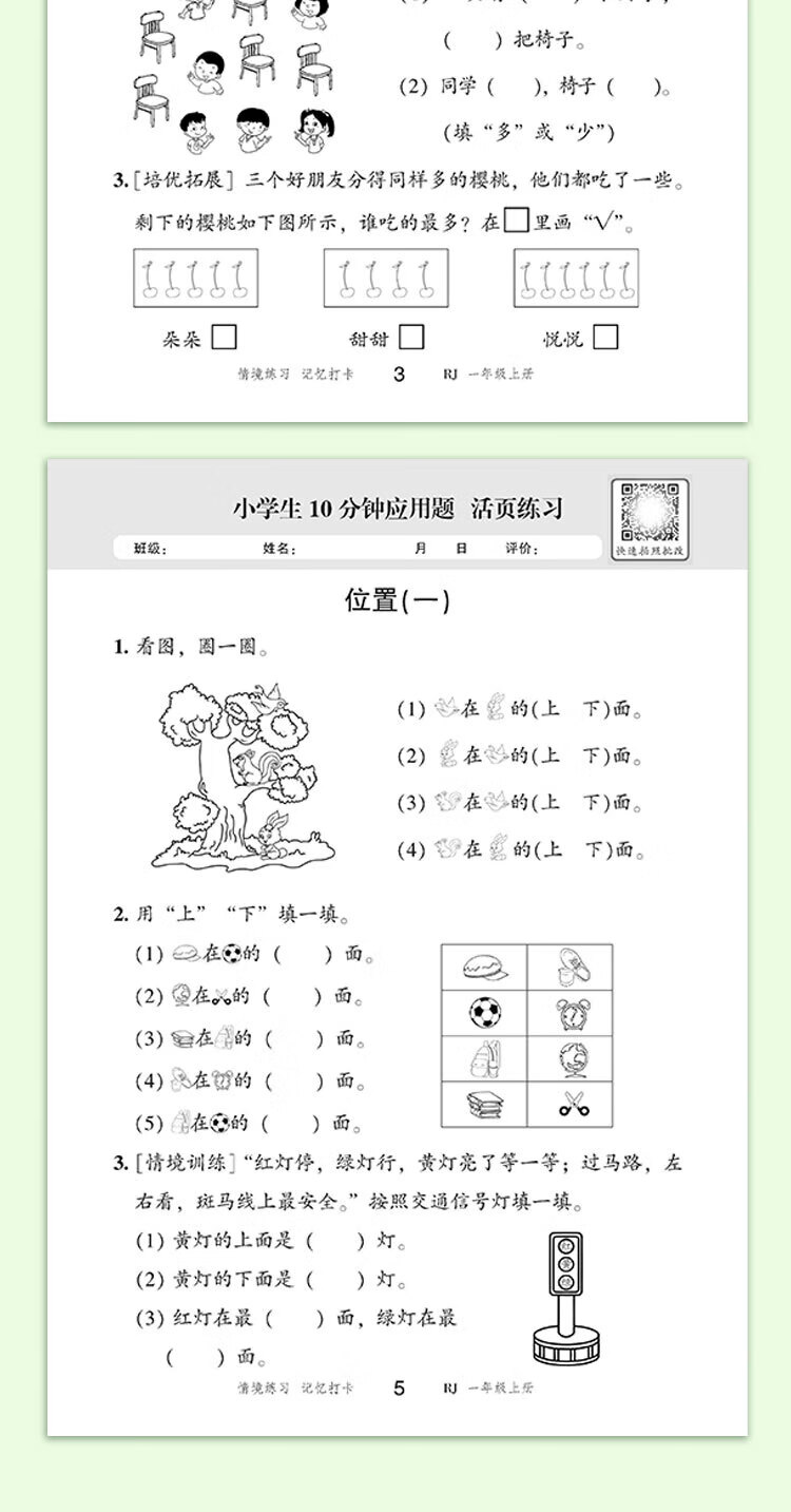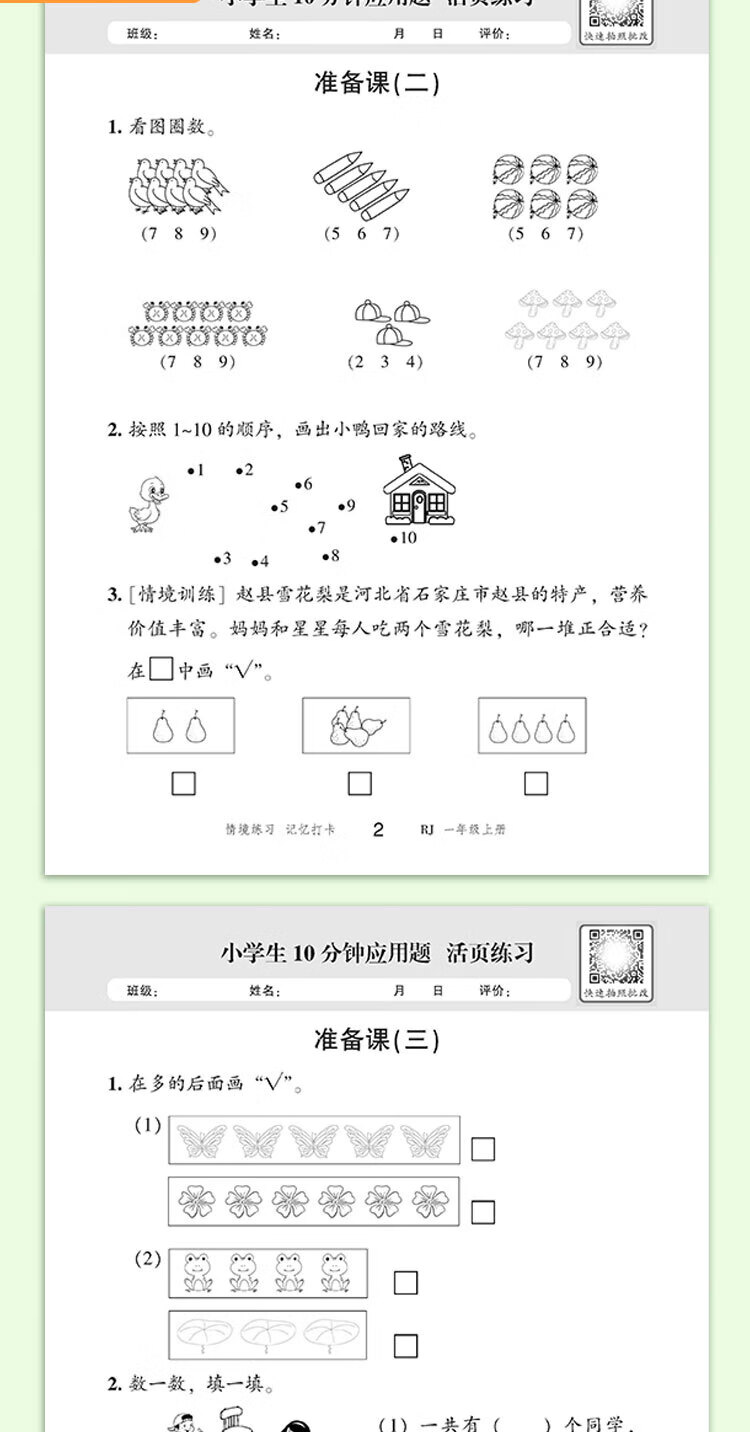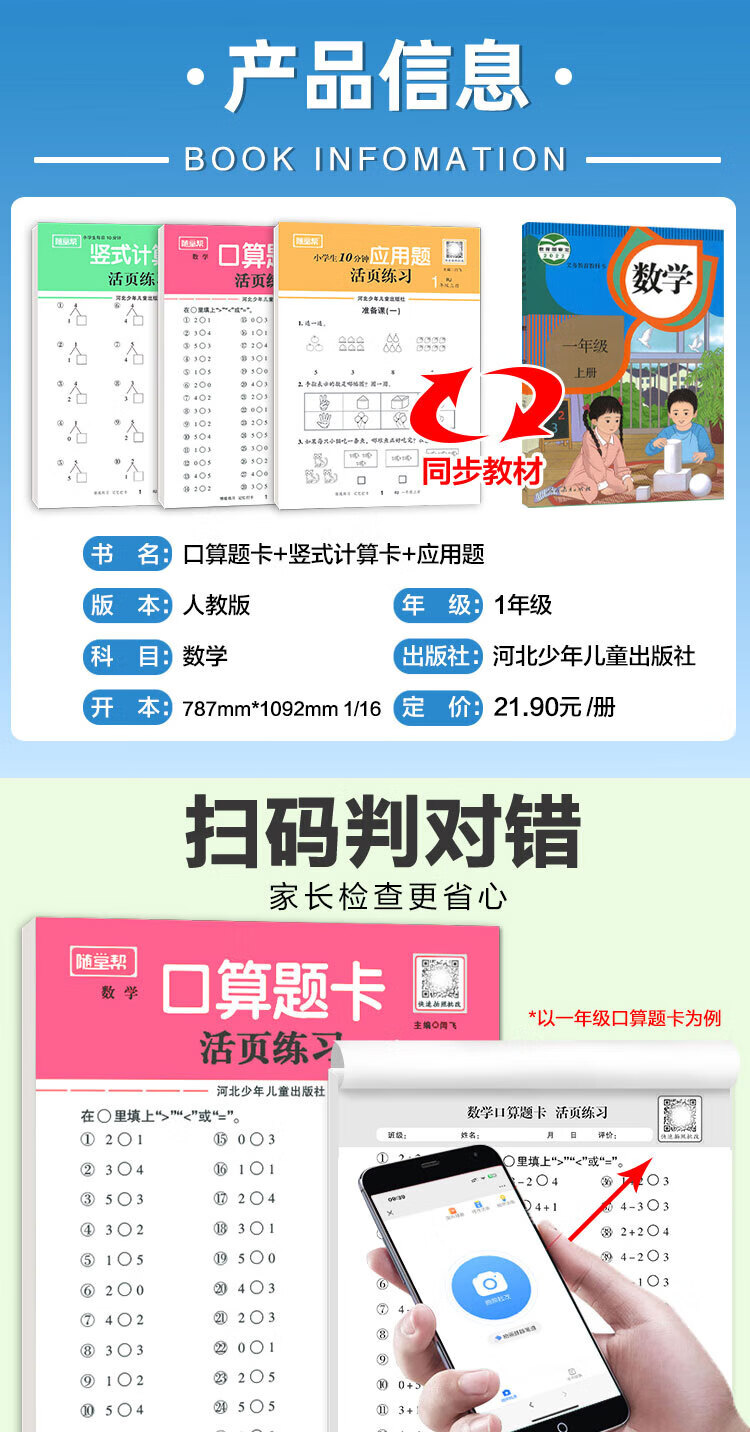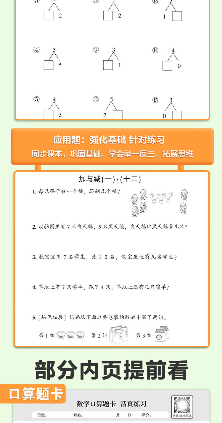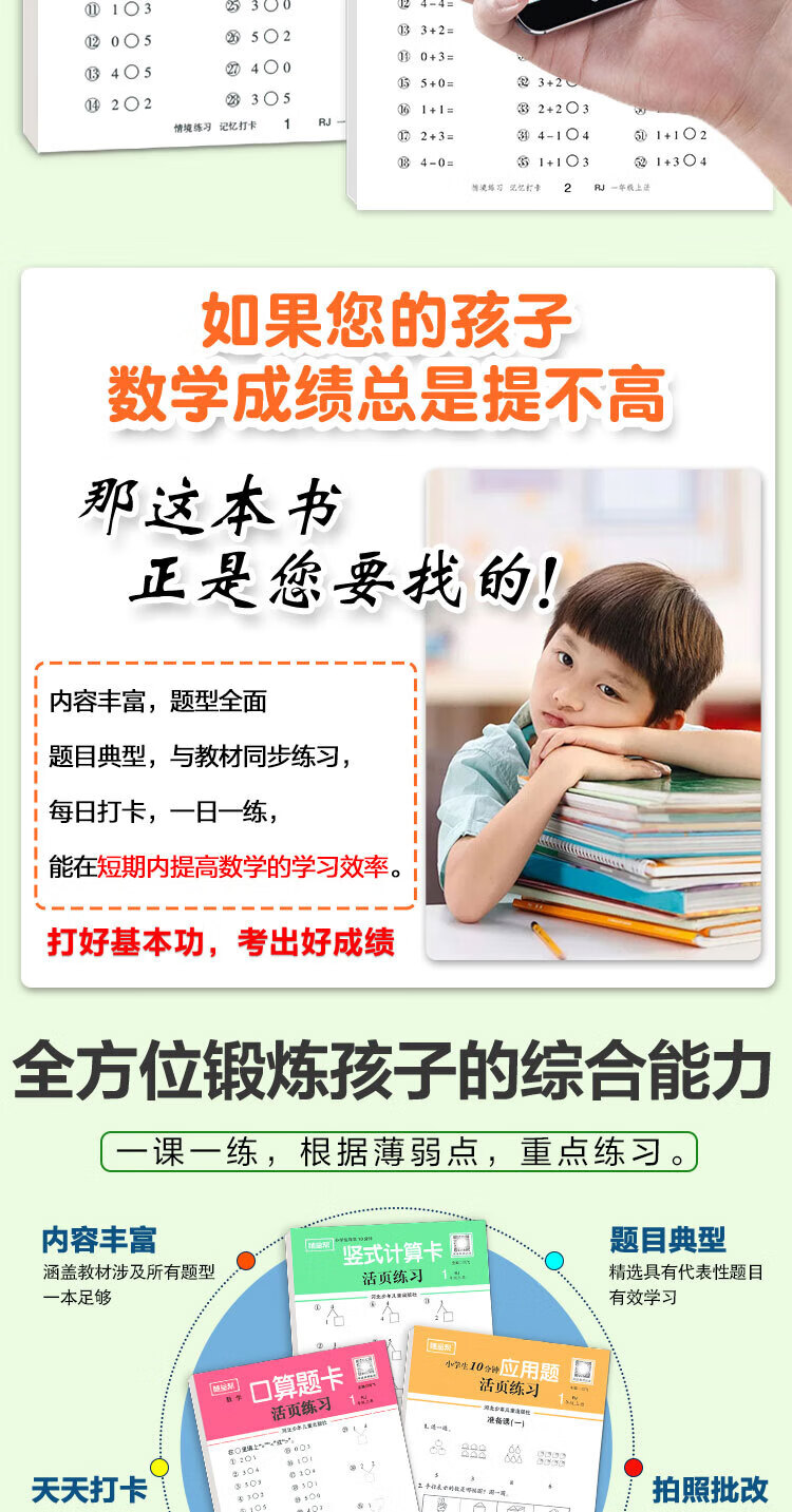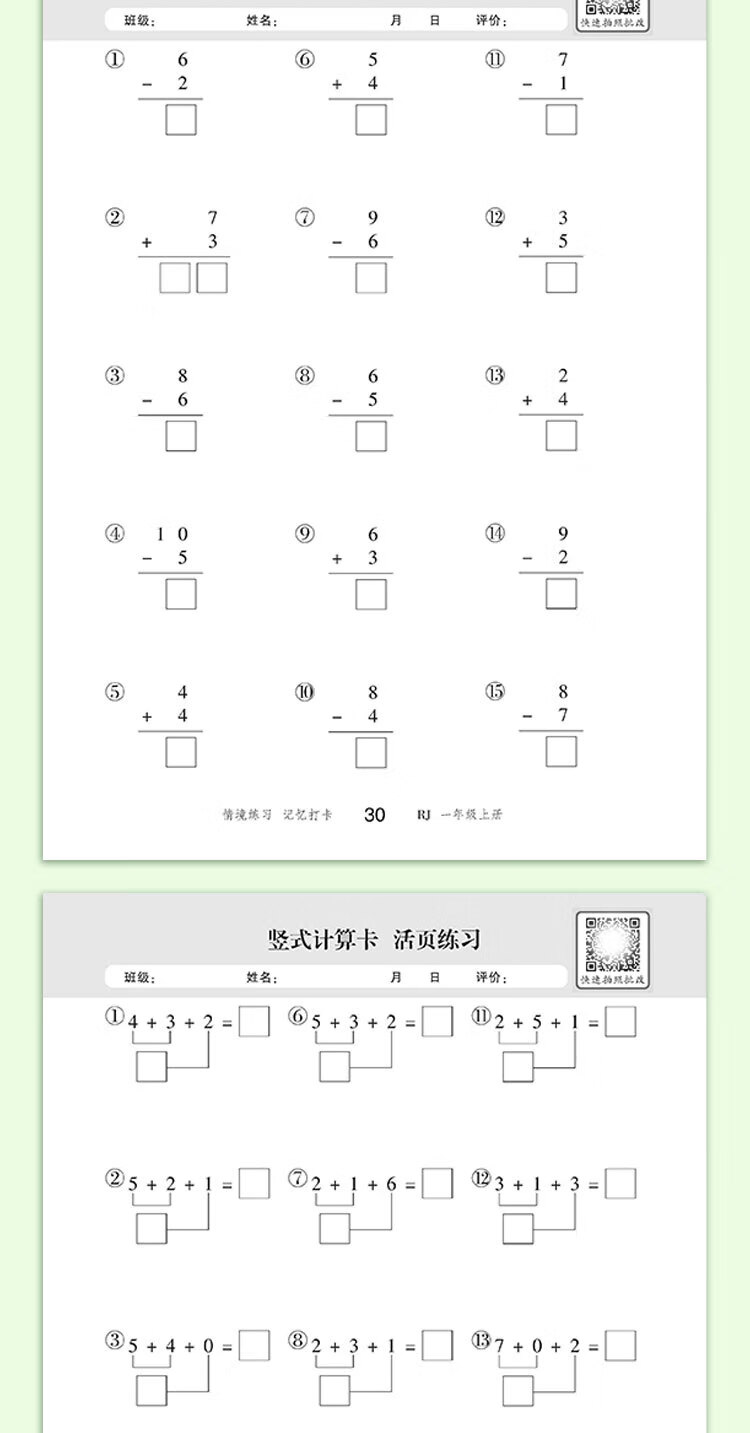 随堂帮24秋活页口算题卡竖式计算卡应用题题卡天天练组套加强版人教版北师大版冀教版江苏版1-6年级 【人教版】活页口卡 一年级上册