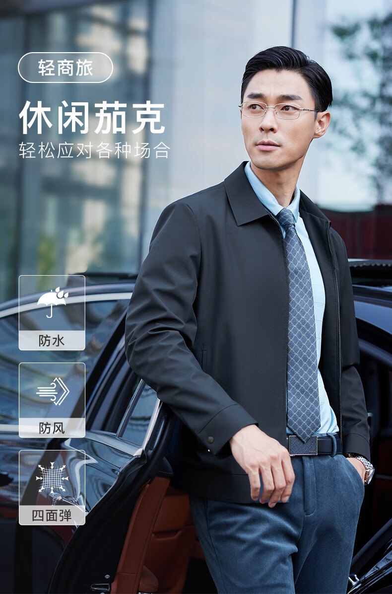 劲霸男装(K-Boxing)春秋防水翻领商务行政夹克|NKDG3005 深兰 180/XL