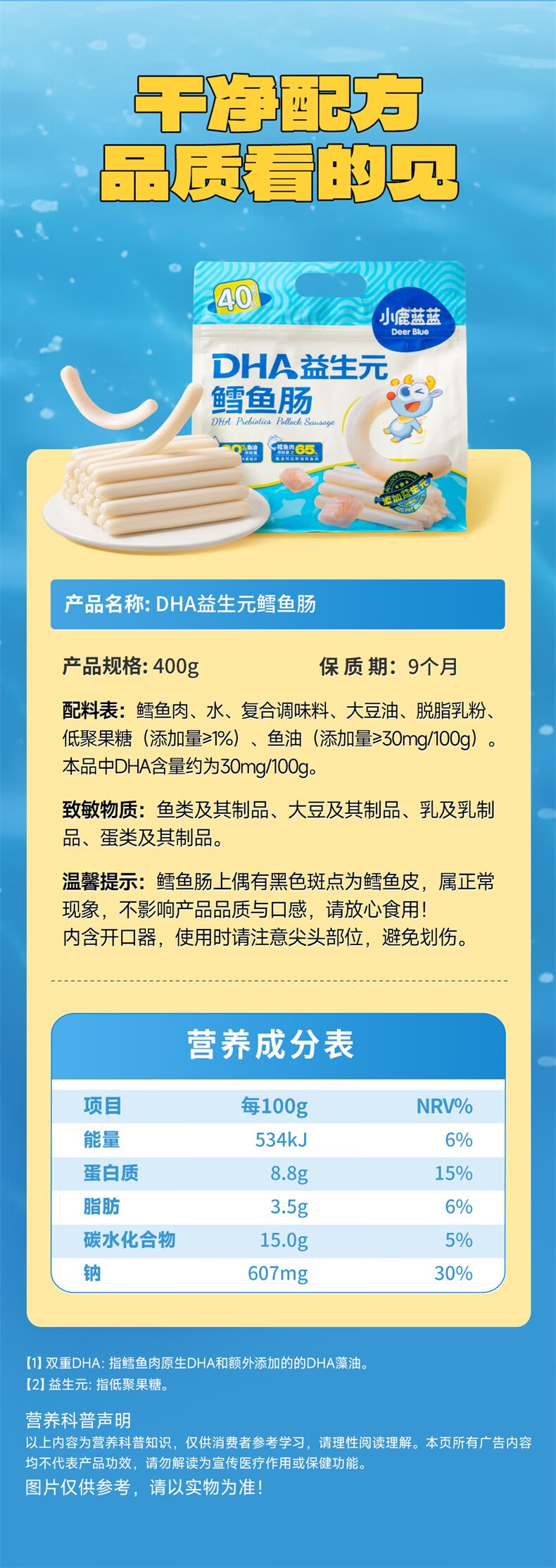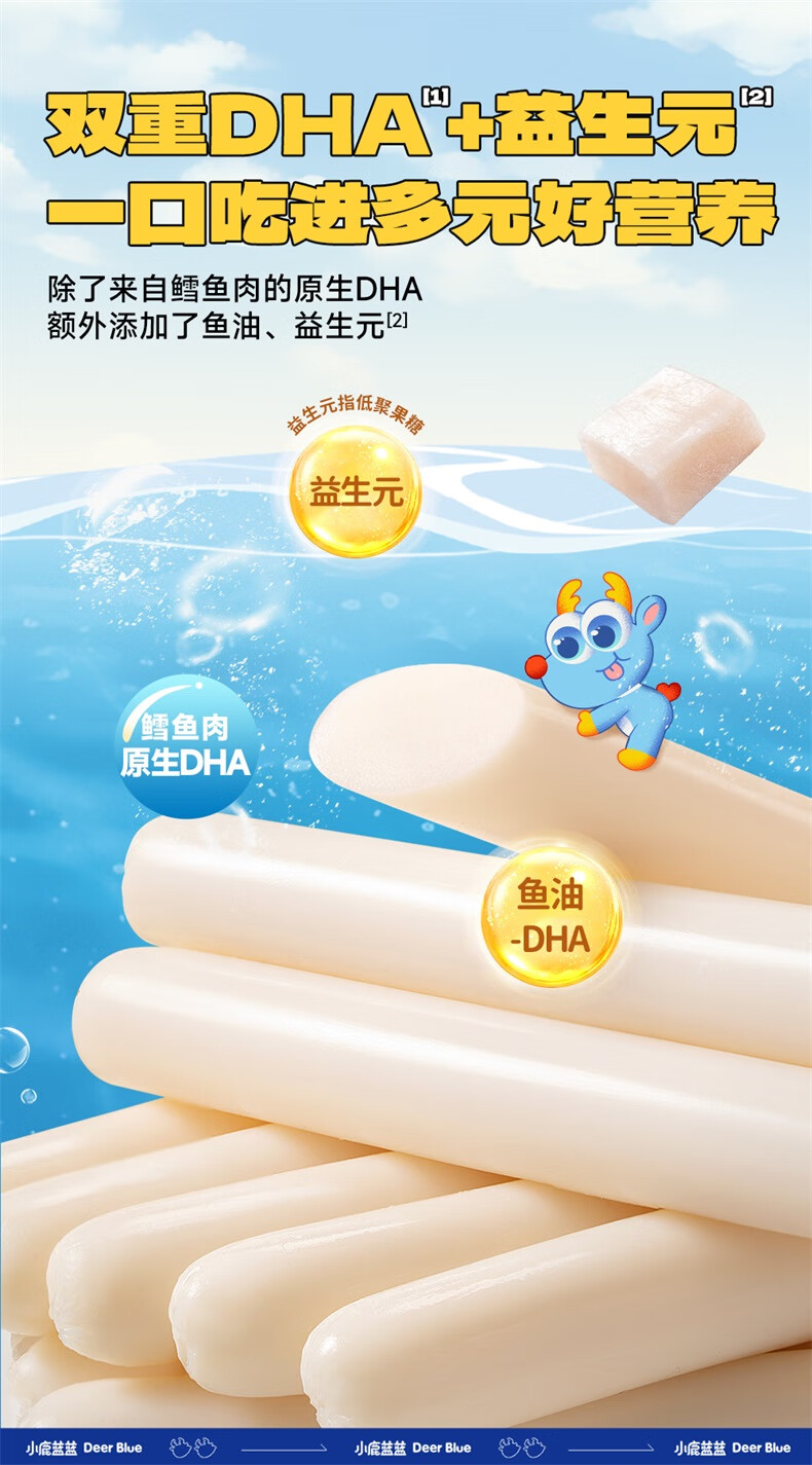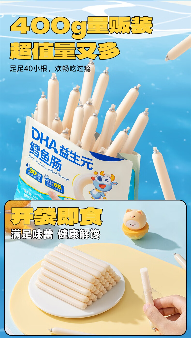 小鹿蓝蓝 海洋鳕鱼肠分享装 儿童宝宝零食鱼肠鳕鱼肉含量65% 400g