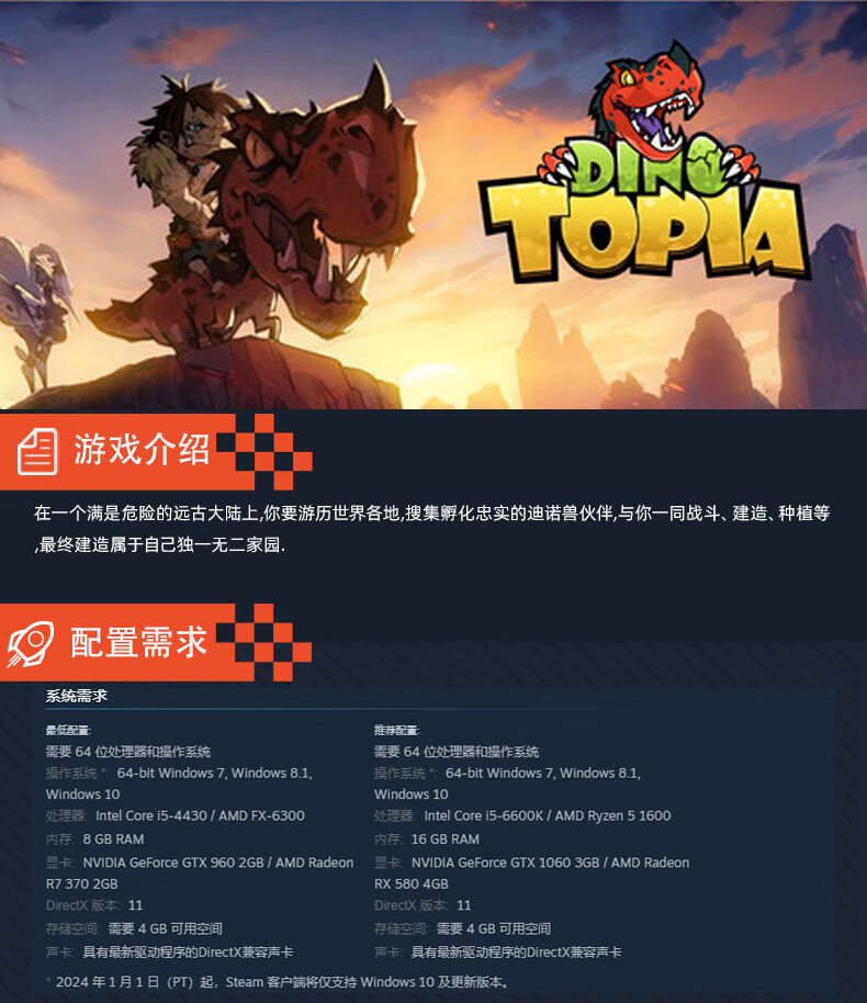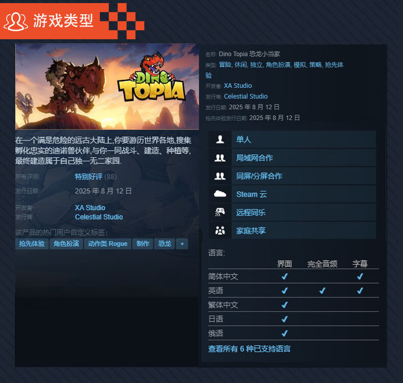 steam游戏 恐龙小当家 Dino Topia 国区激活码CDKey PC正版游戏 角色扮演类 标准版