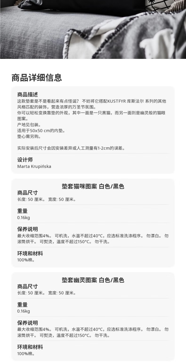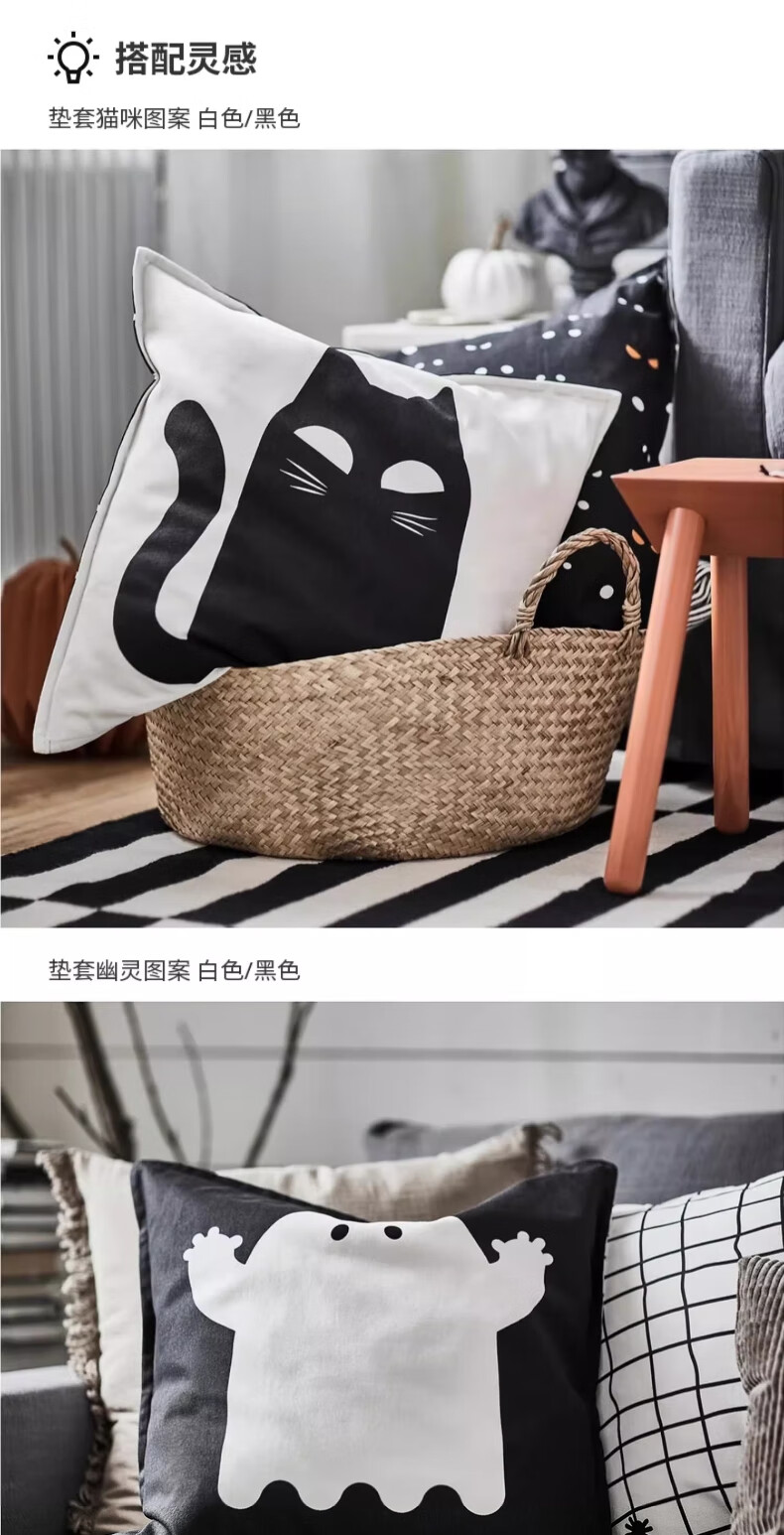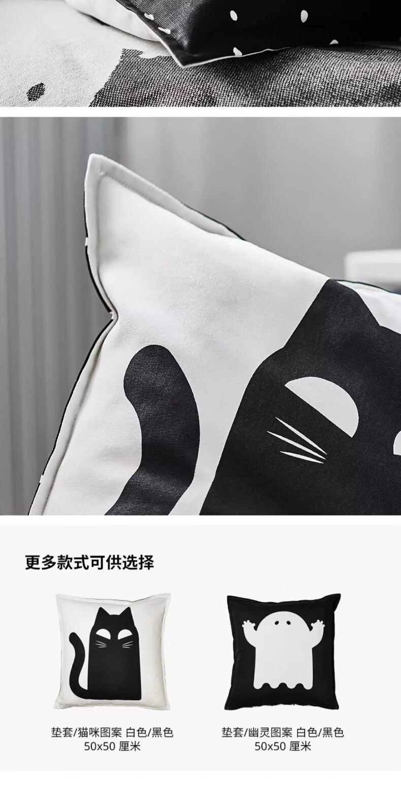 宜家(IKEA)KUSTFYR库斯法尔2025纯棉垫套抱枕靠垫家用 幽灵图案垫套 50*50cm