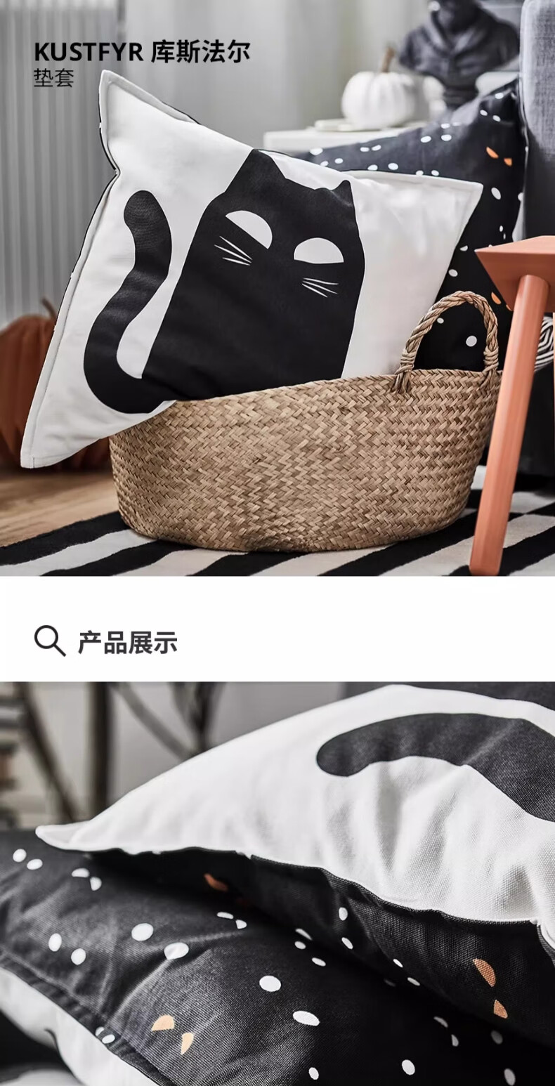 宜家(IKEA)KUSTFYR库斯法尔2025纯棉垫套抱枕靠垫家用 猫咪图案垫套 50*50cm