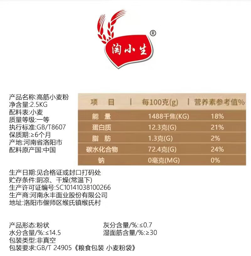 面粉高筋小麦粉饺子皮手抓饼馒头包子面粉家用面粉多用 高筋小麦粉5斤*1袋
