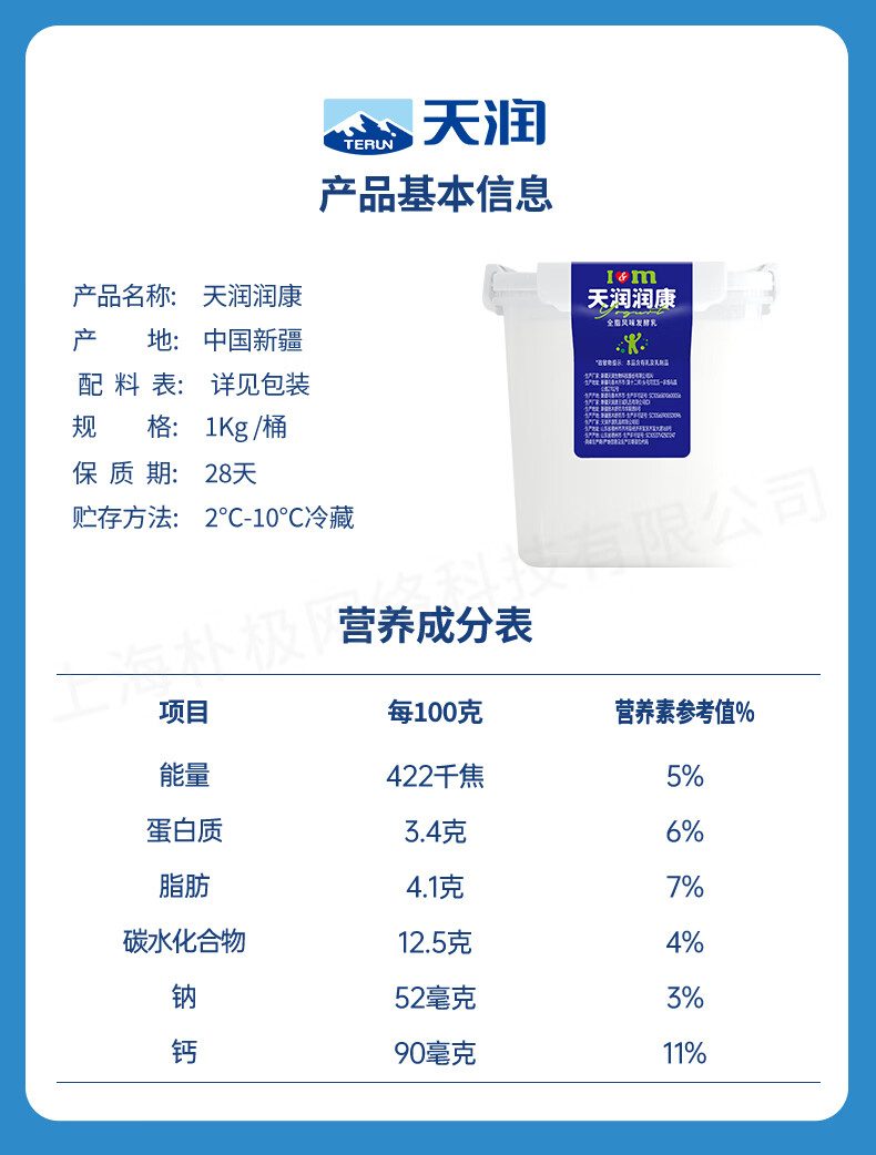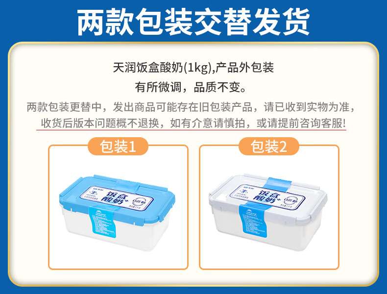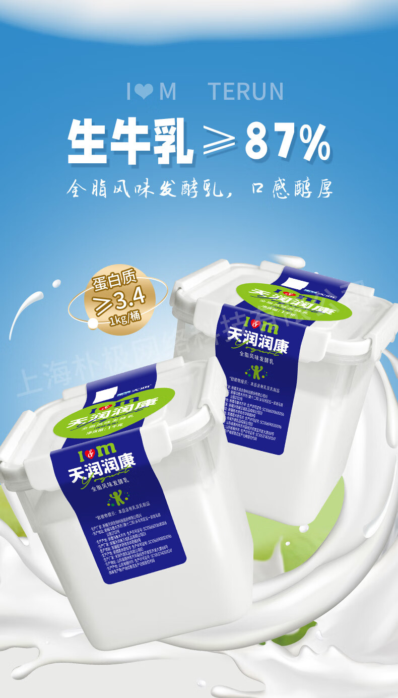 天润(terun)酸奶 新疆桶装酸牛乳 可微波循环方桶 全脂风味发酵乳 原味老酸奶 润康原味方桶1KG*2