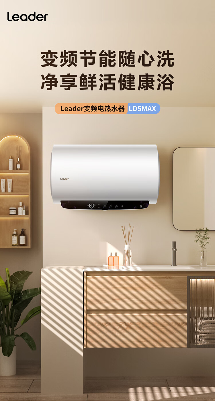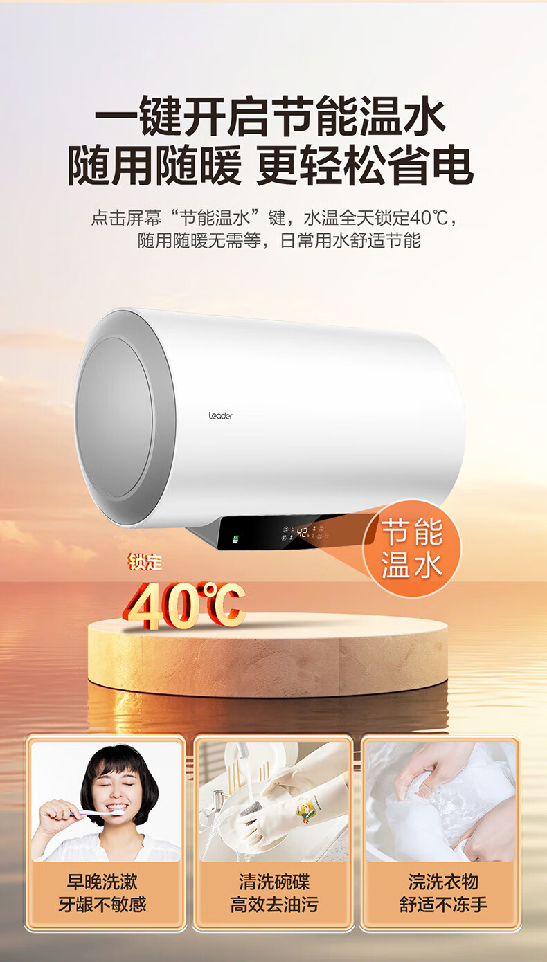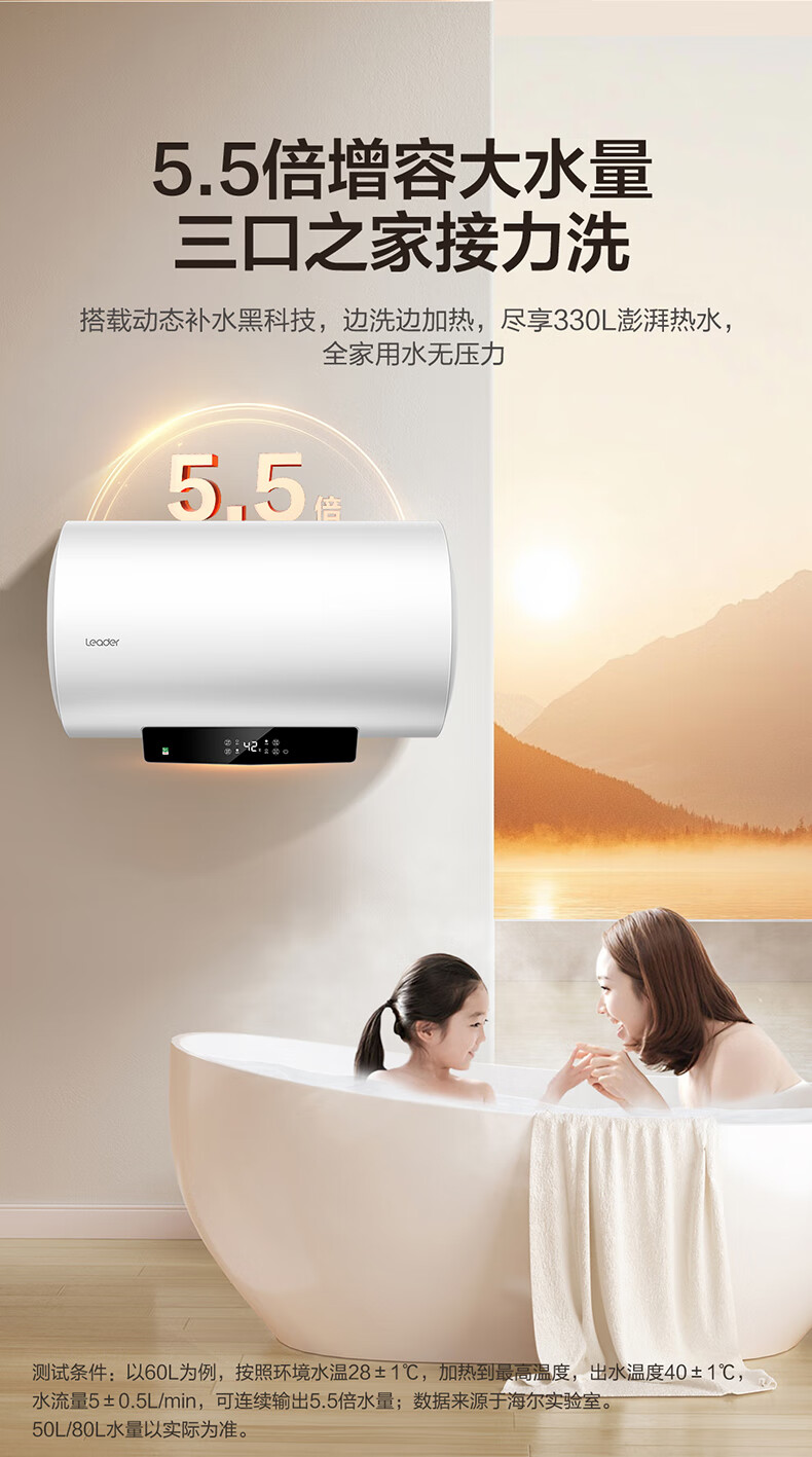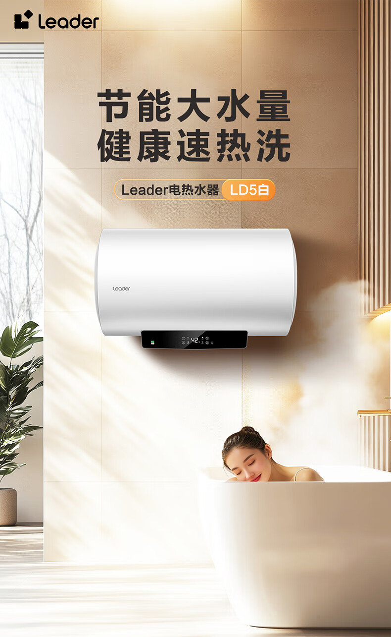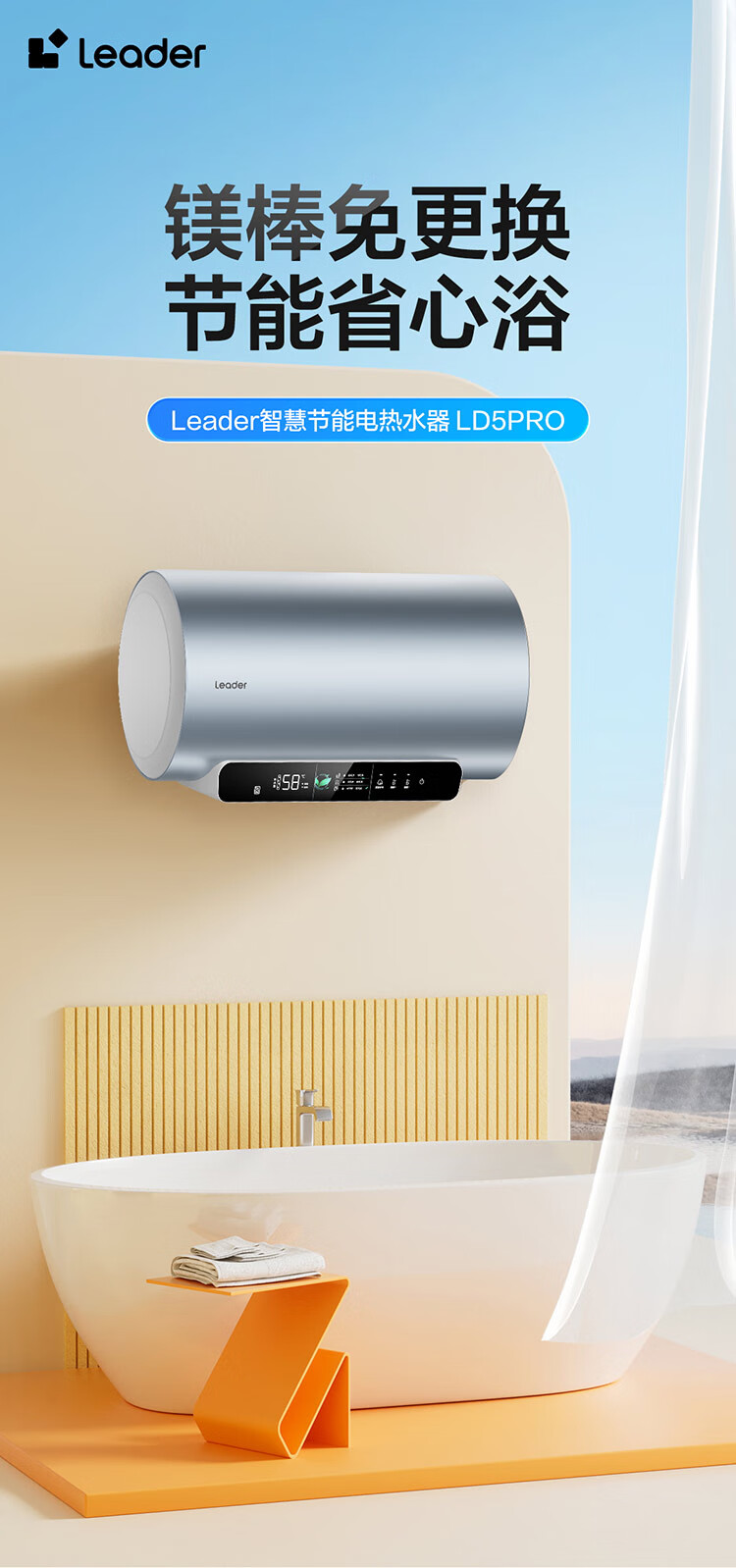 海尔(Haier)智家出品Leader统帅热水器【咨询客服享补贴】 电热水器60升LD5 一级能效出租房家用小尺寸 50L 2200W LD5 租房优选小尺寸