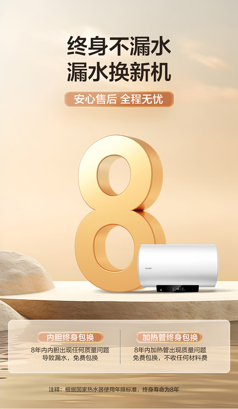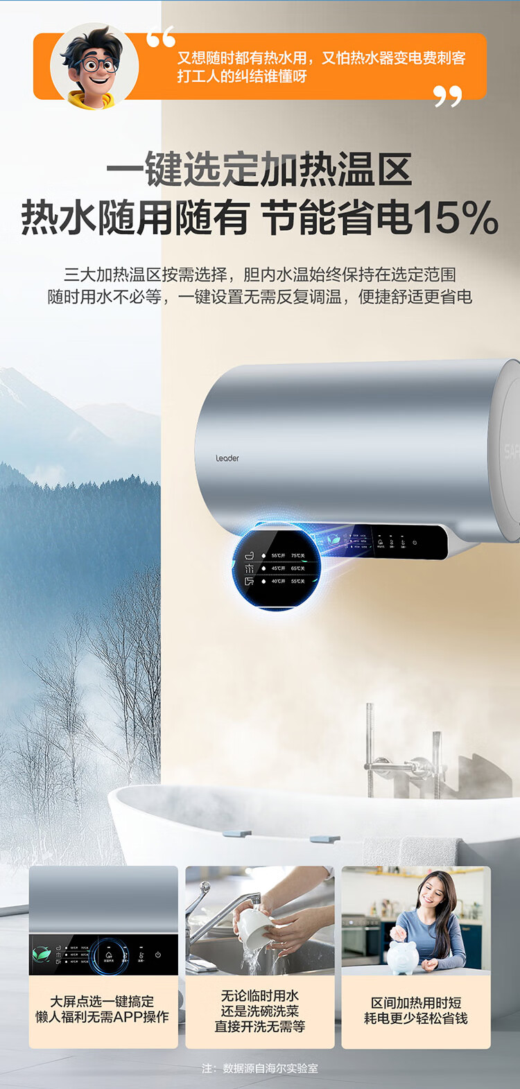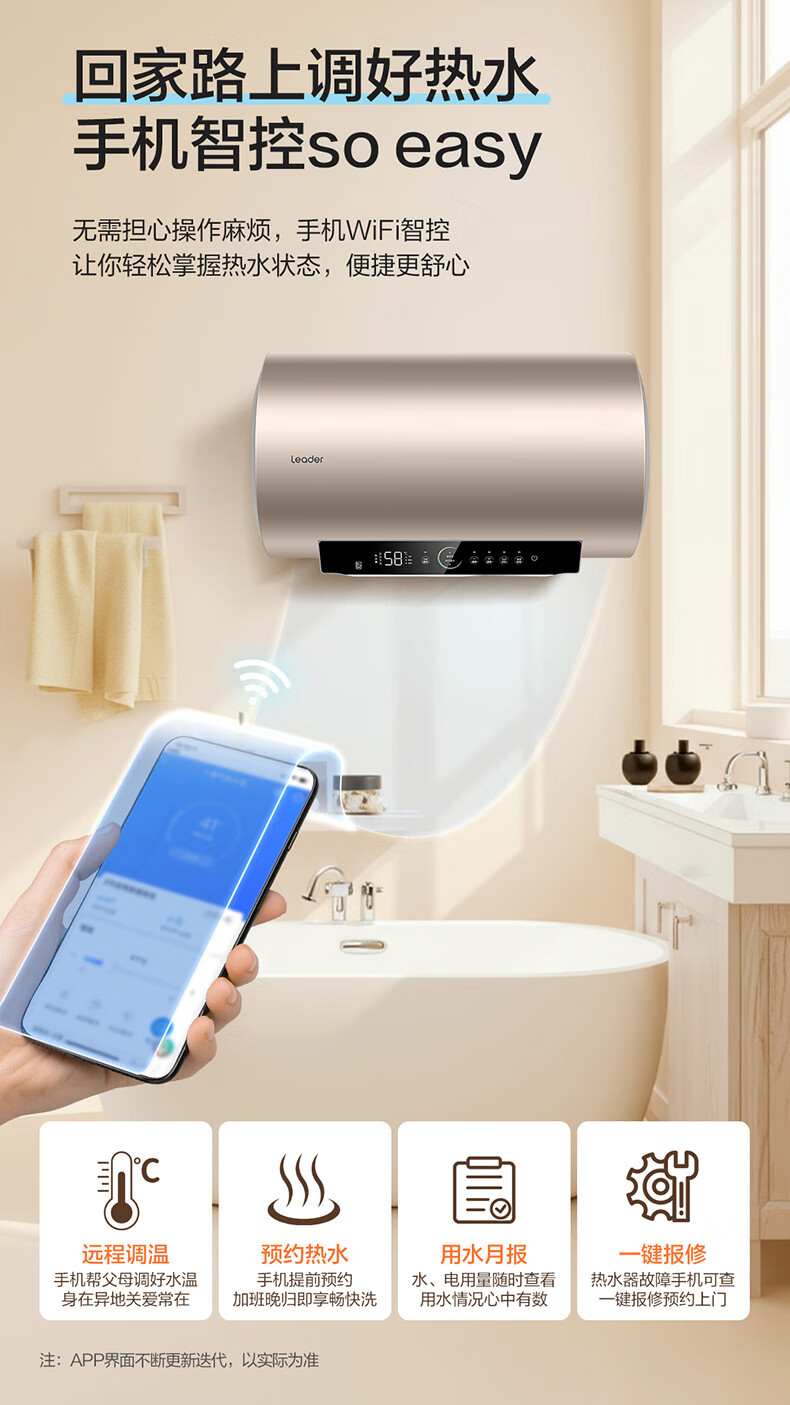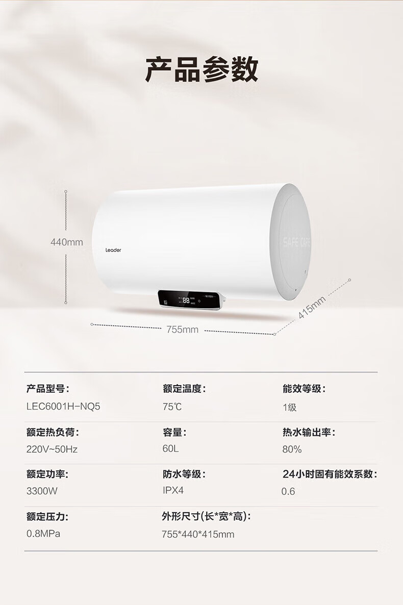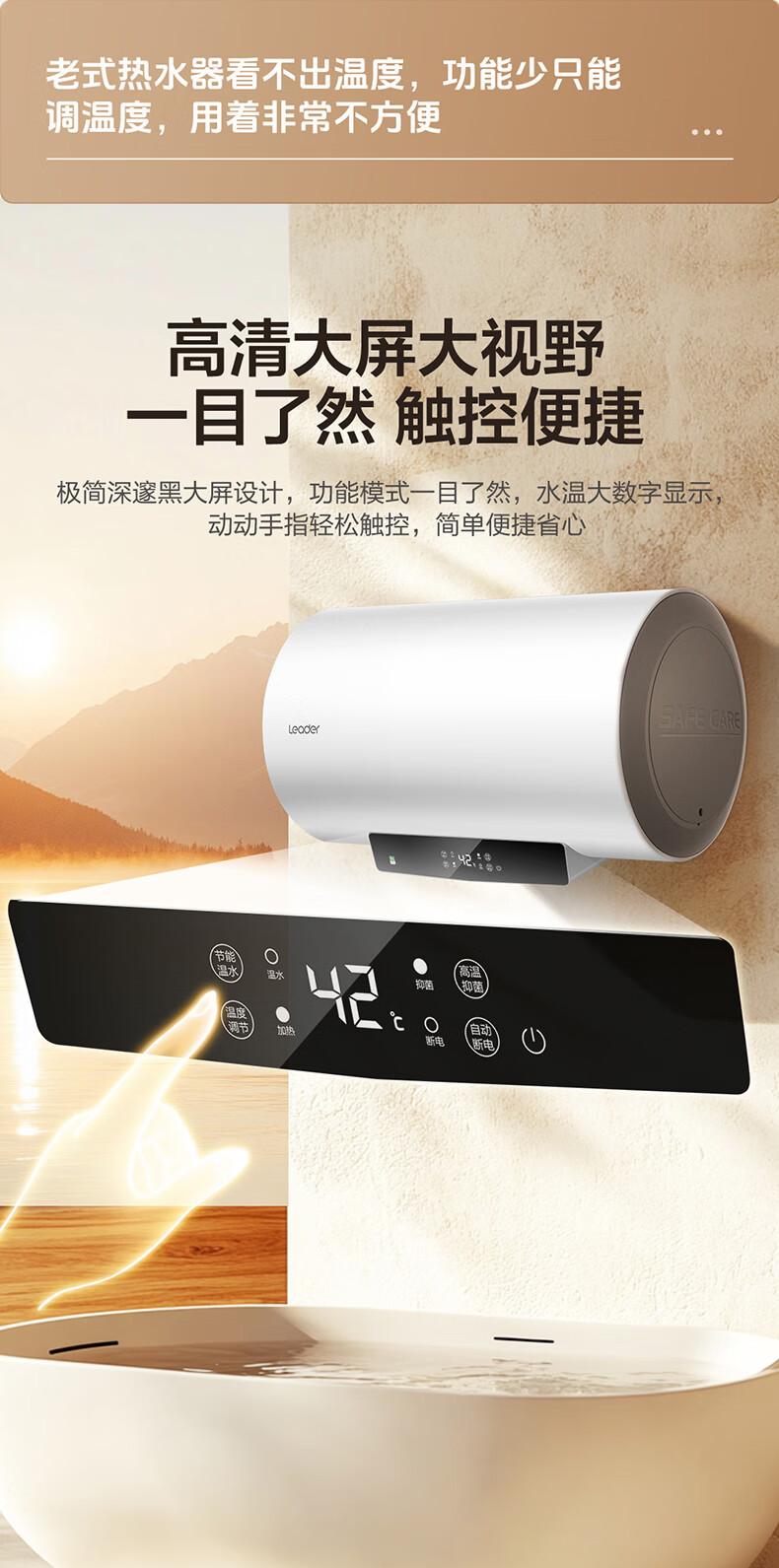 海尔(Haier)智家出品Leader统帅热水器【咨询客服享补贴】 电热水器60升LD5 一级能效出租房家用小尺寸 50L 2200W LD5 租房优选小尺寸