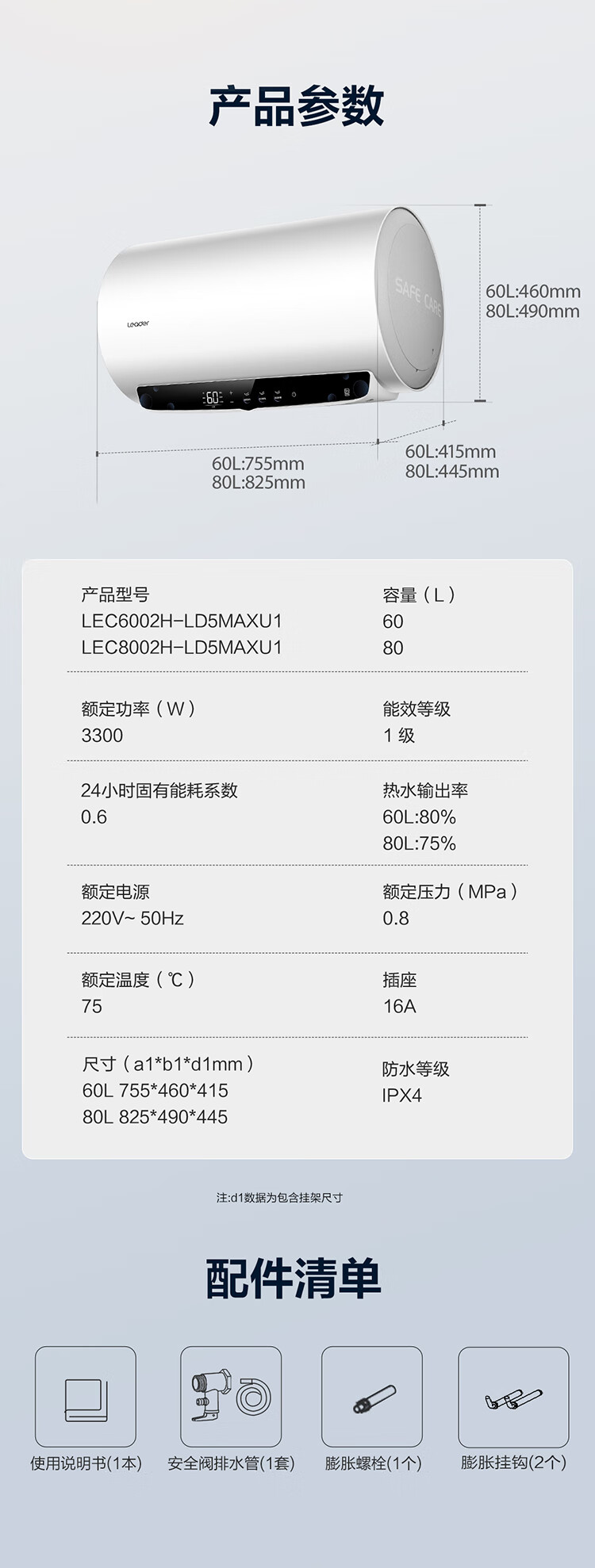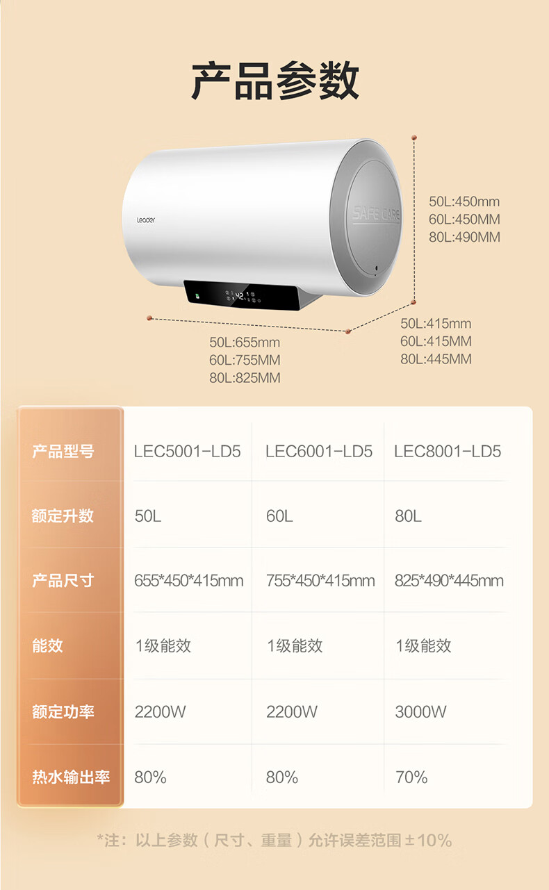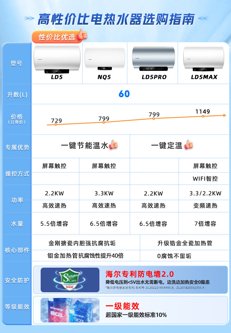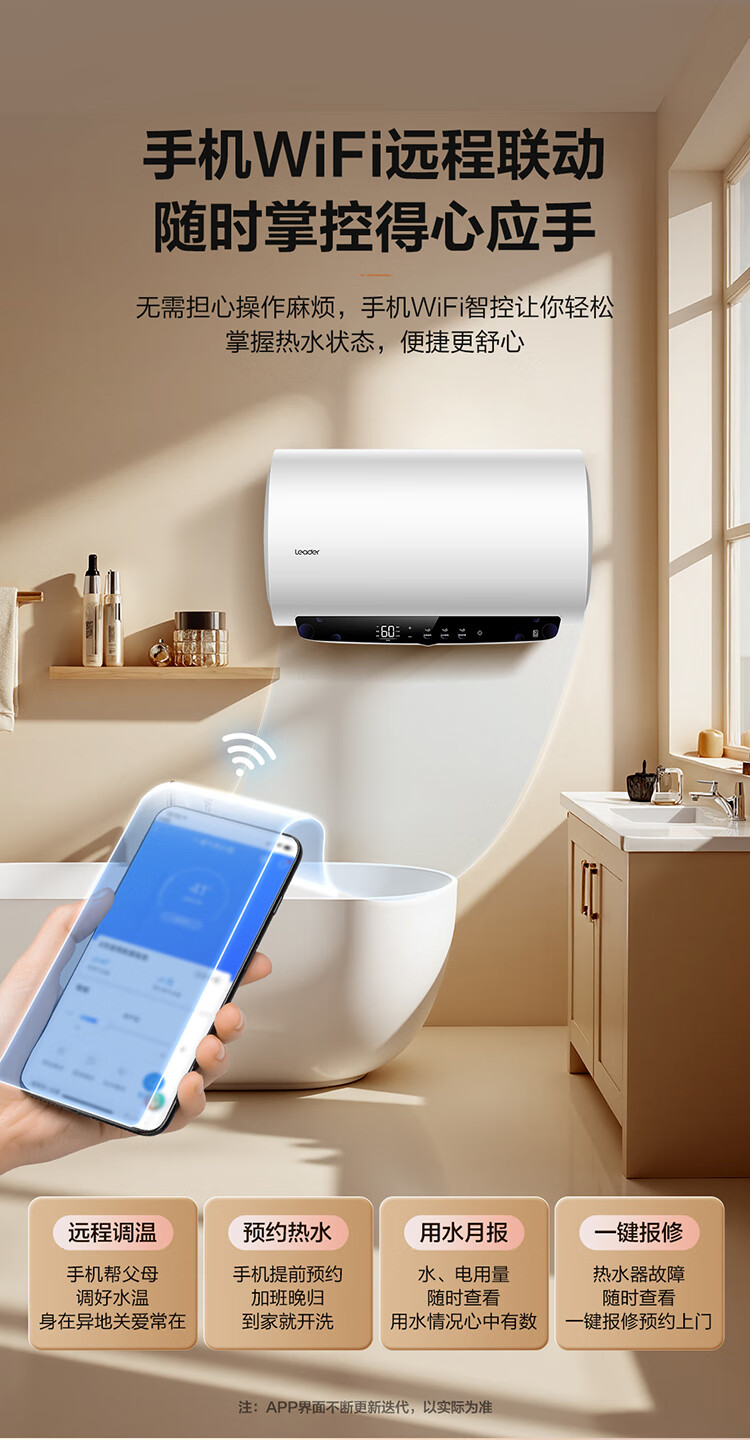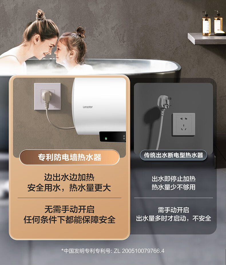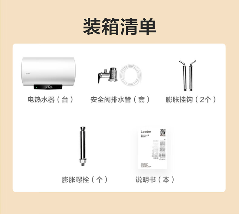 海尔(Haier)智家出品Leader统帅热水器【咨询客服享补贴】 电热水器60升LD5 一级能效出租房家用小尺寸 50L 2200W LD5 租房优选小尺寸