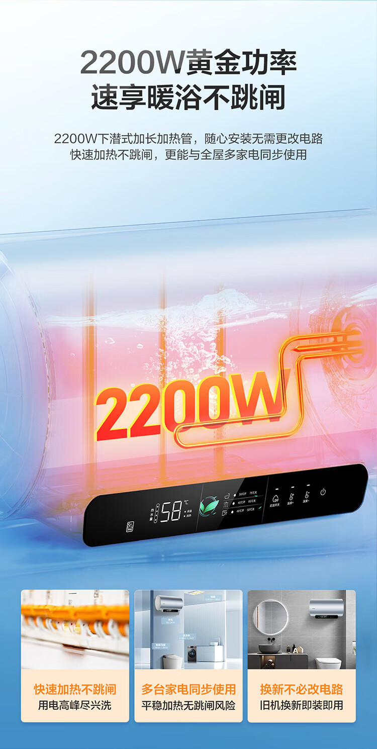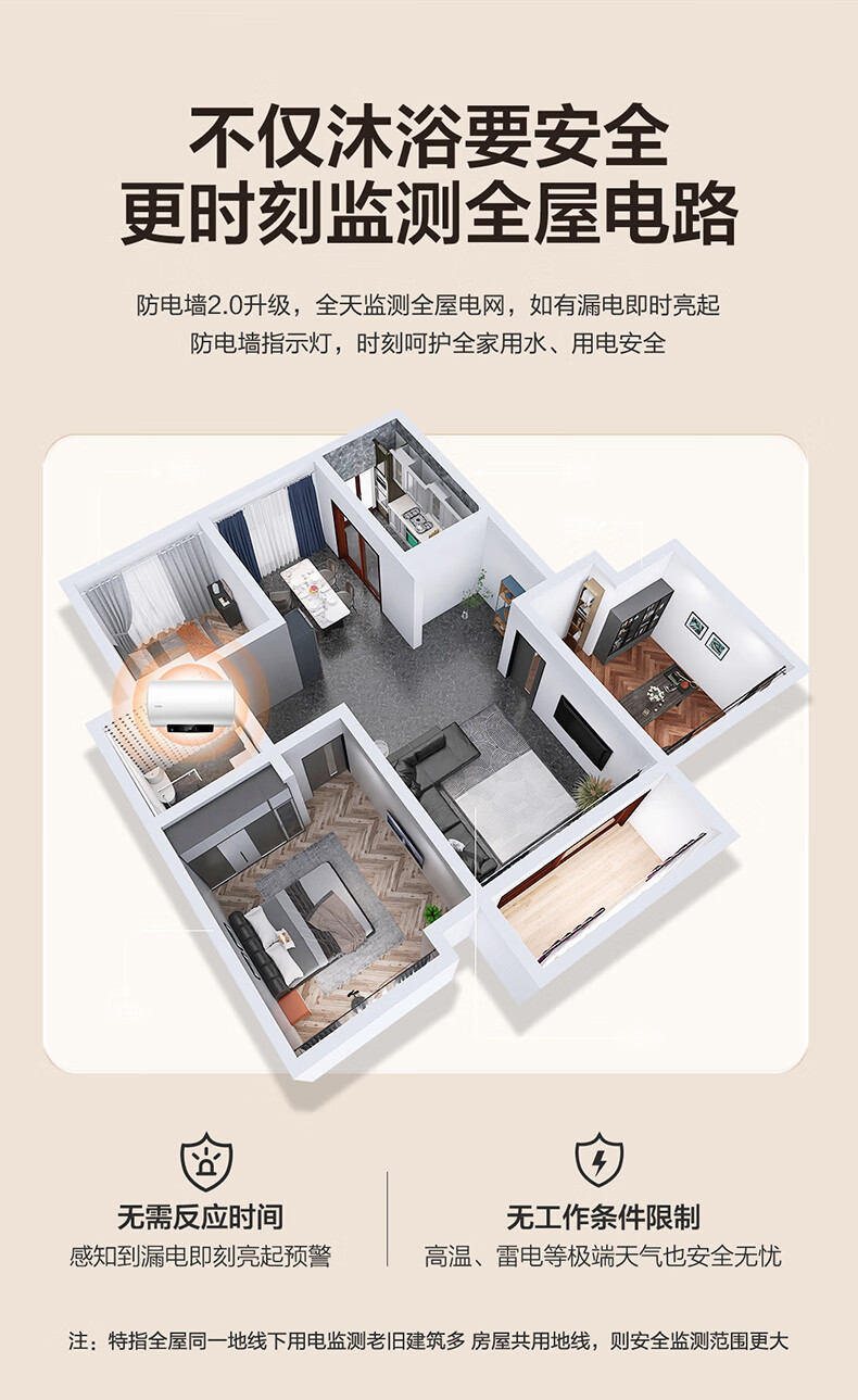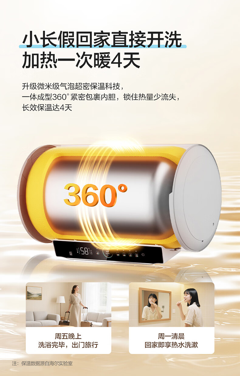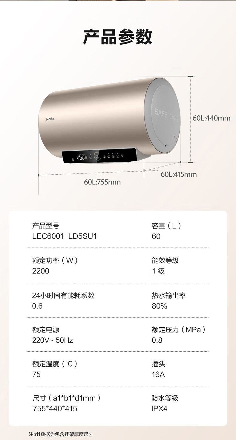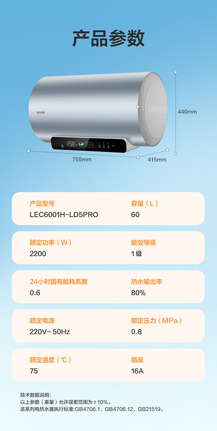 海尔(Haier)智家出品Leader统帅热水器【咨询客服享补贴】 电热水器60升LD5 一级能效出租房家用小尺寸 50L 2200W LD5 租房优选小尺寸