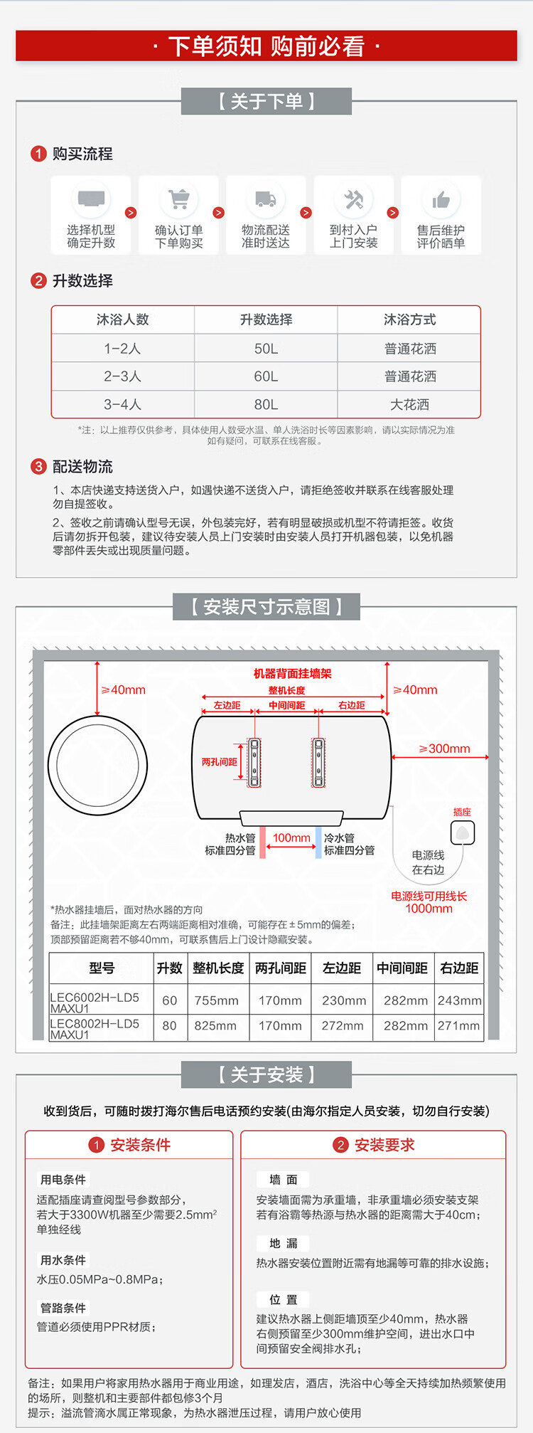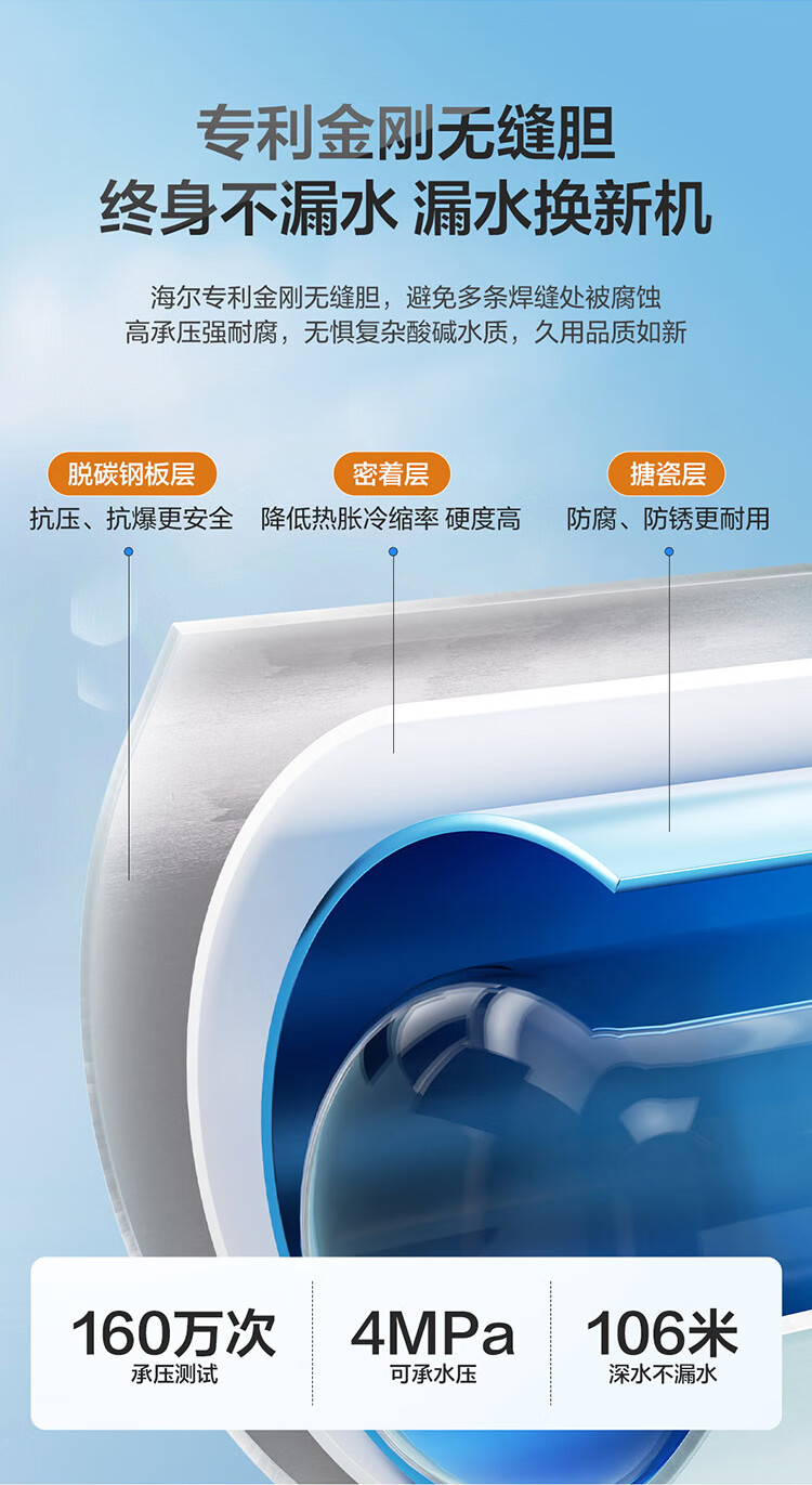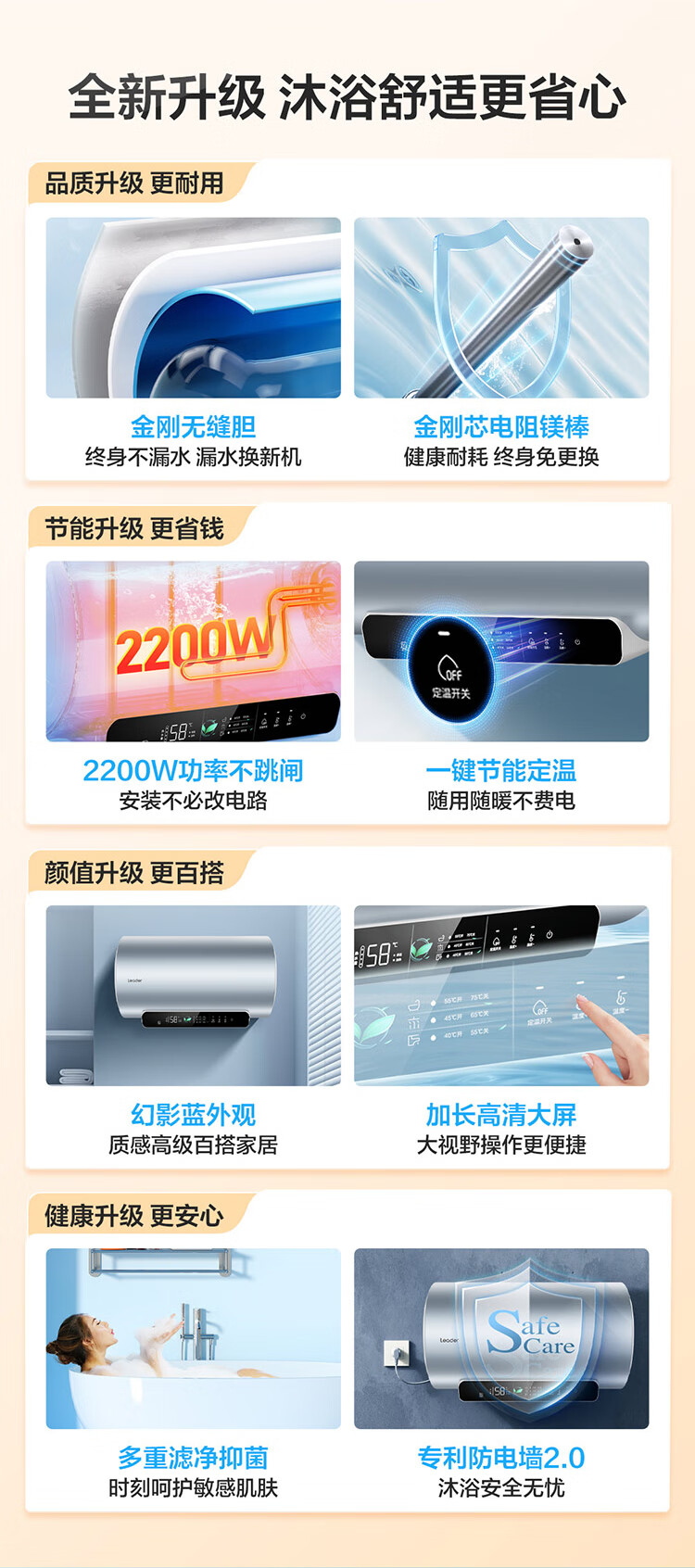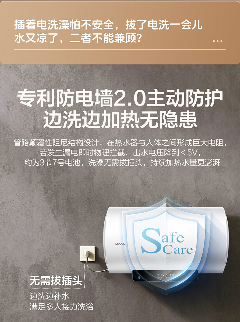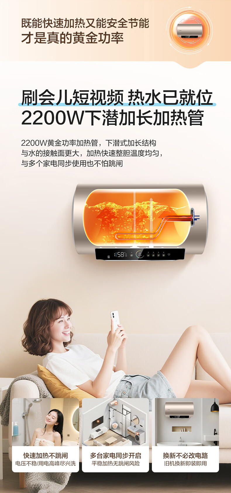 海尔(Haier)智家出品Leader统帅热水器【咨询客服享补贴】 电热水器60升LD5 一级能效出租房家用小尺寸 50L 2200W LD5 租房优选小尺寸