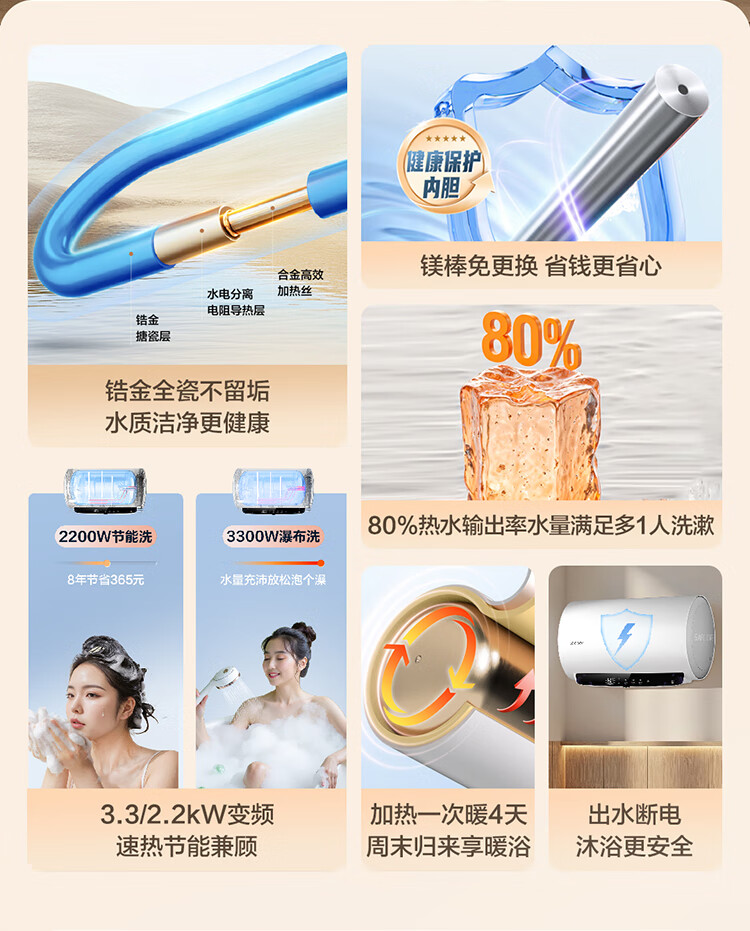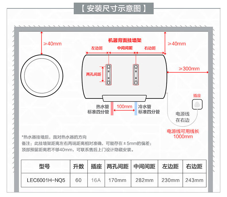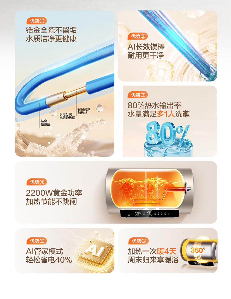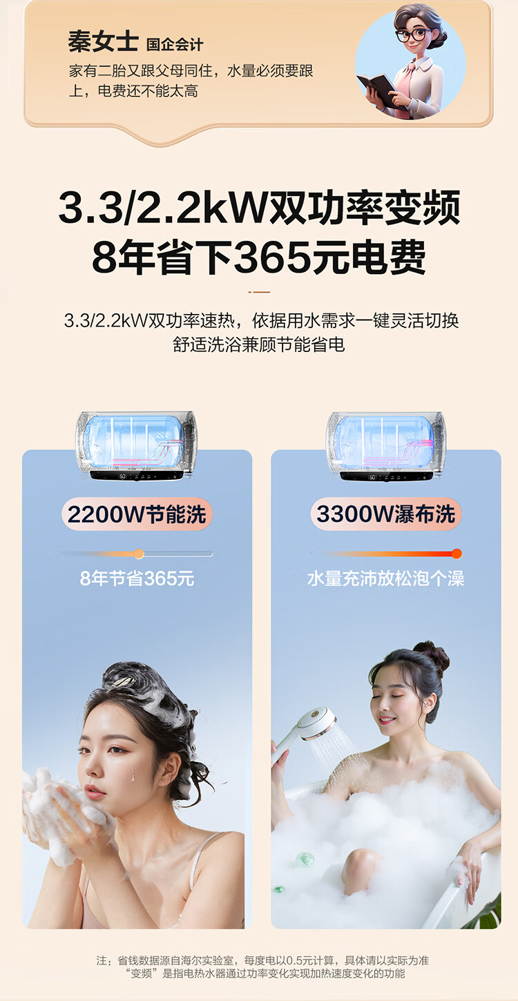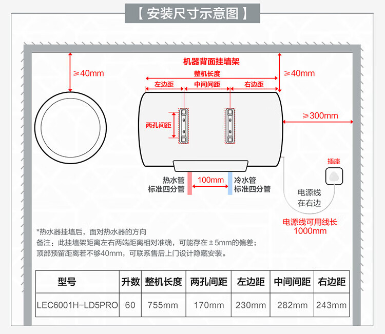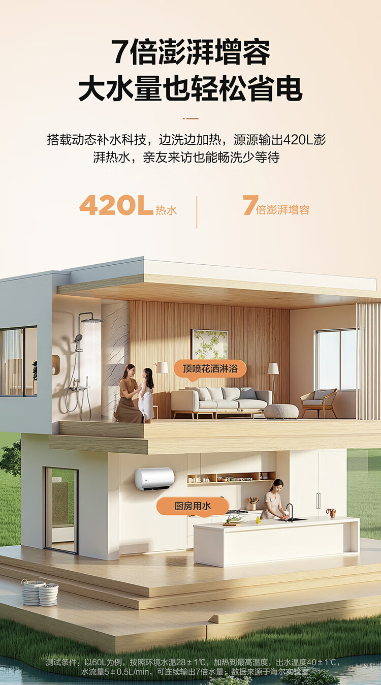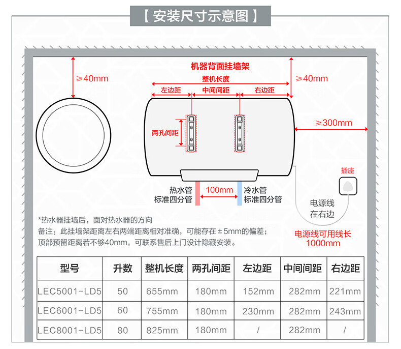 海尔(Haier)智家出品Leader统帅热水器【咨询客服享补贴】 电热水器60升LD5 一级能效出租房家用小尺寸 50L 2200W LD5 租房优选小尺寸