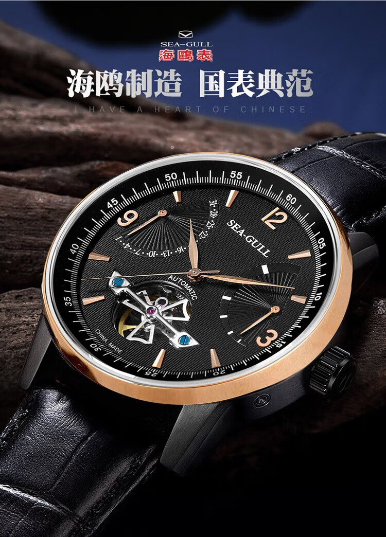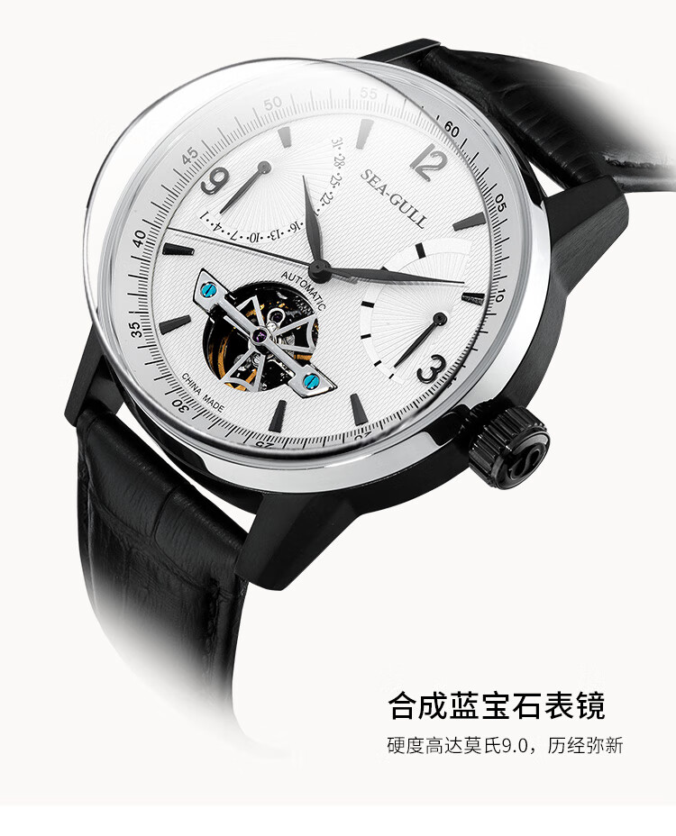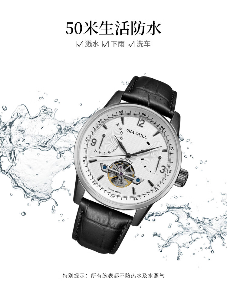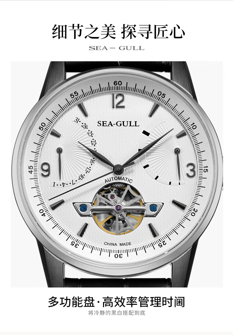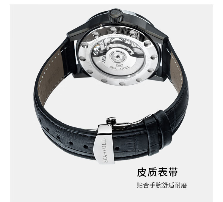 海鸥(SEAGULL)手表男士自动机械表 日历势能镂空飞轮男士手表 生日礼物男表 黑