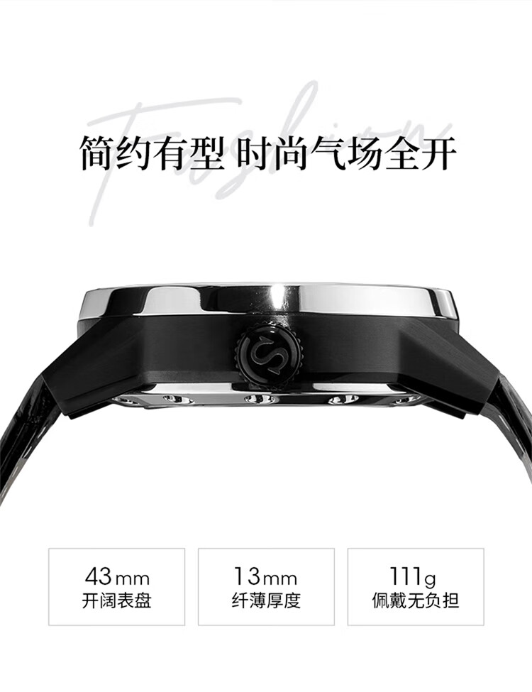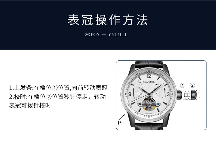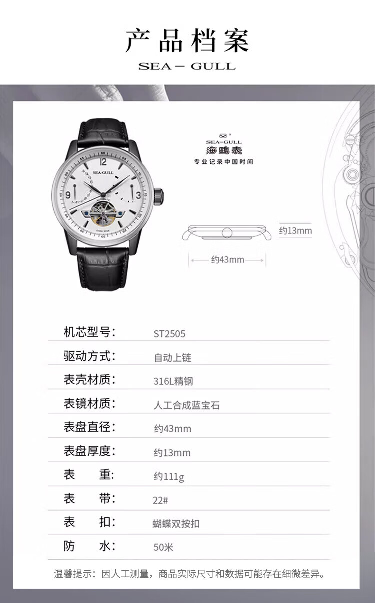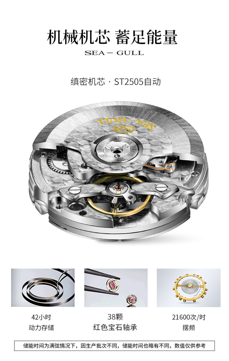 海鸥(SEAGULL)手表男士自动机械表 日历势能镂空飞轮男士手表 生日礼物男表 黑