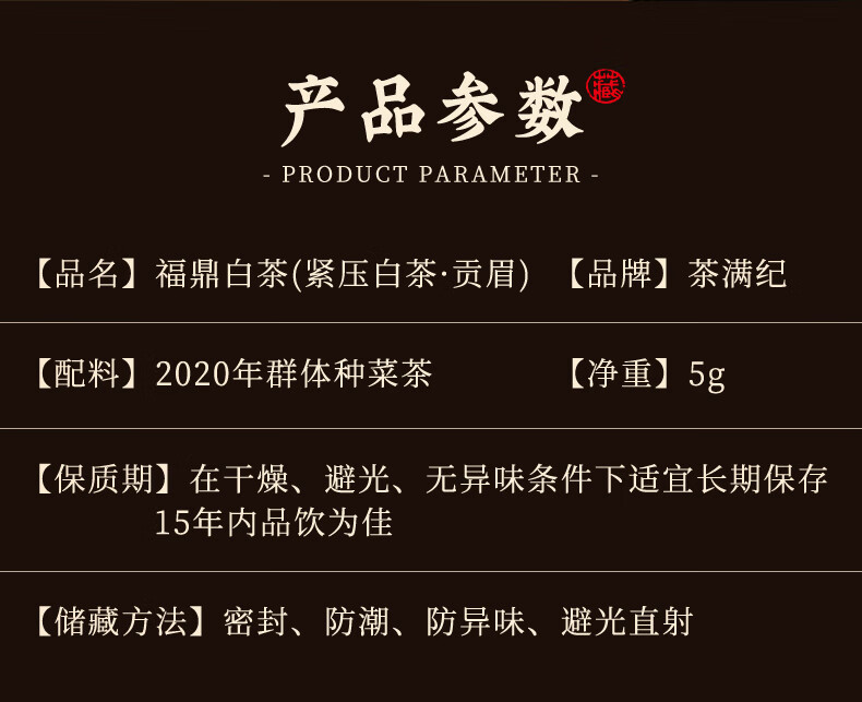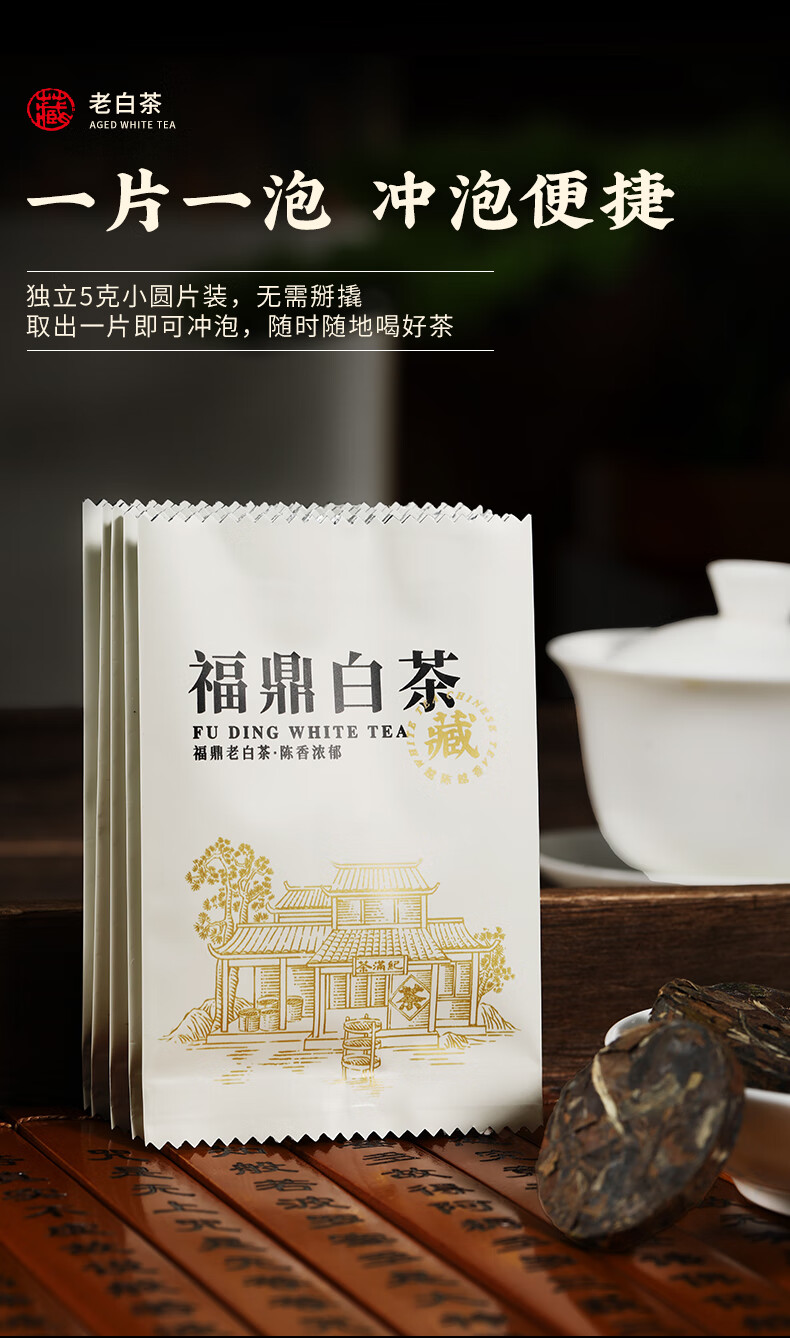 茶满纪茶叶福鼎白茶贡眉独立小方片老白茶品鉴装5g口粮茶叶中秋节送礼