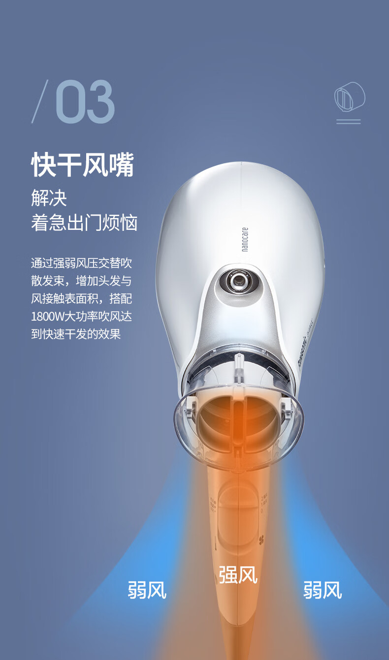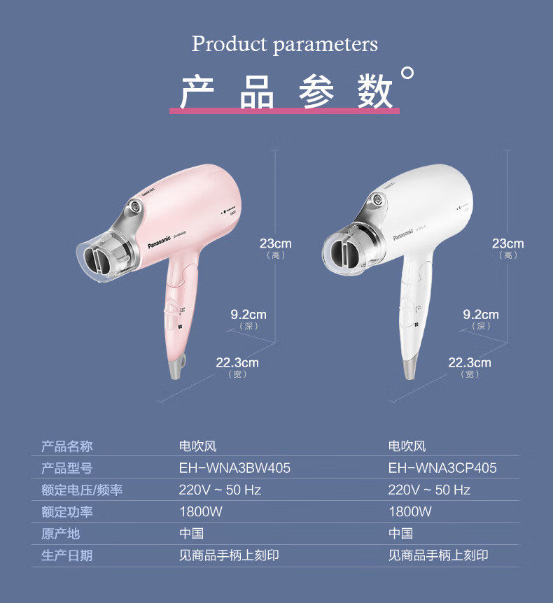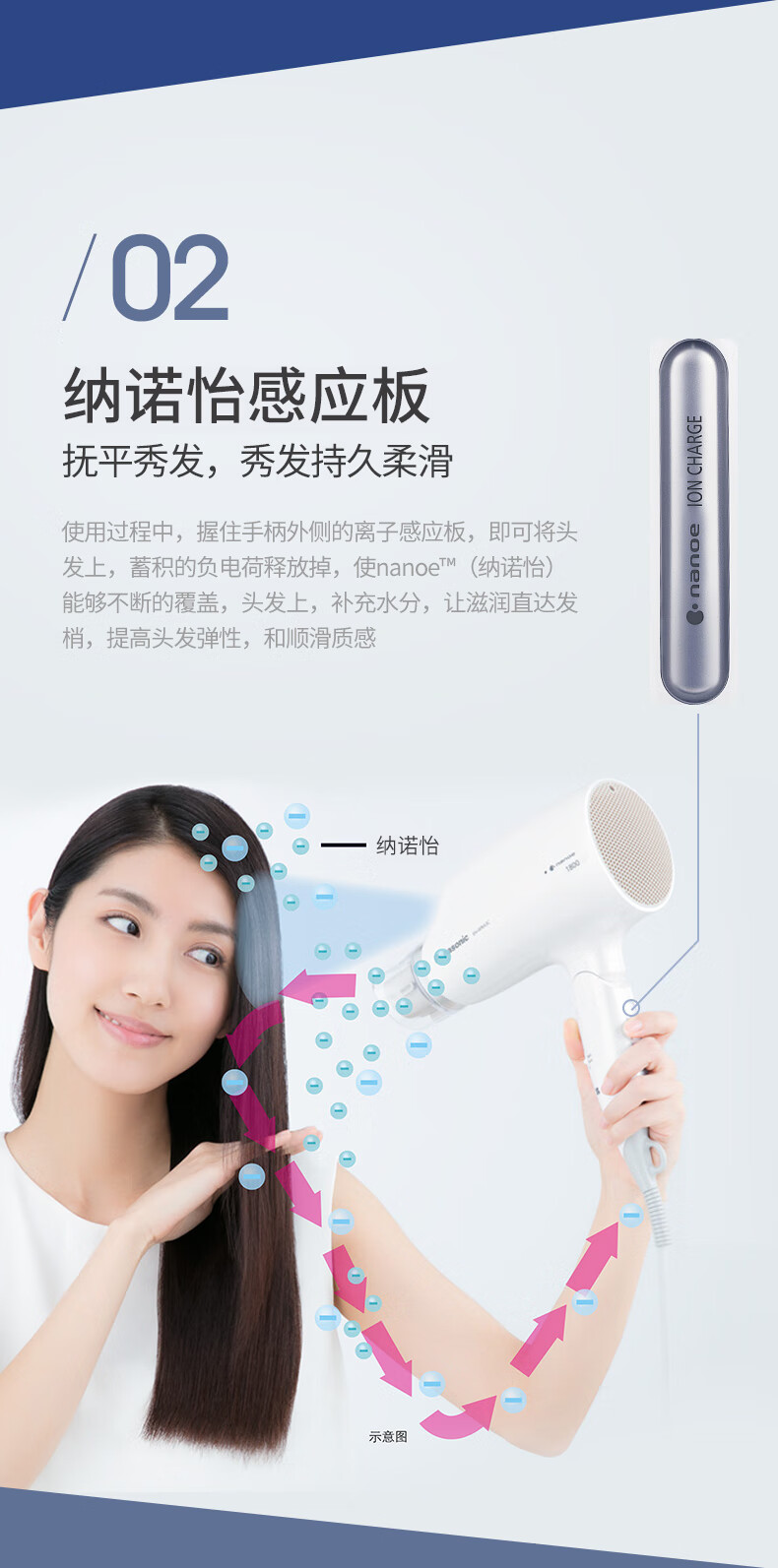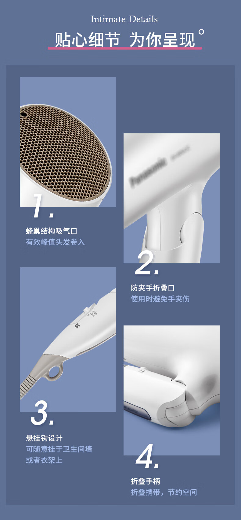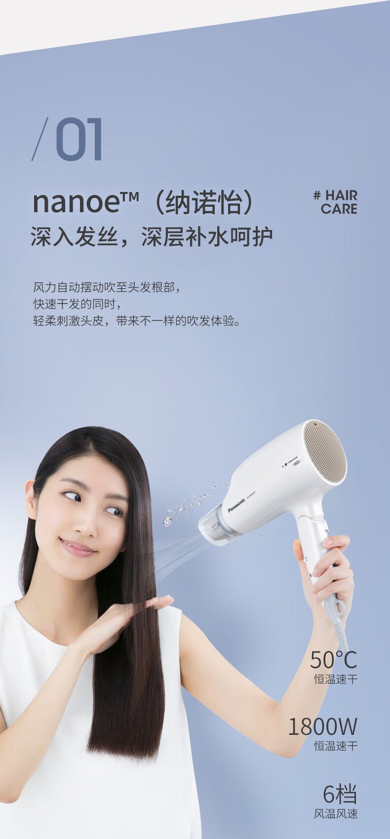 松下(Panasonic)【国家补贴】家用电吹风机可折叠高速吹风筒便携款纳诺怡负离子护发大功率速干学生宿舍送女生礼物 雪顶白【纳诺怡水润呵护】礼盒装WNA3C