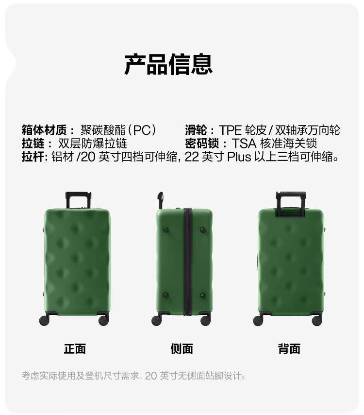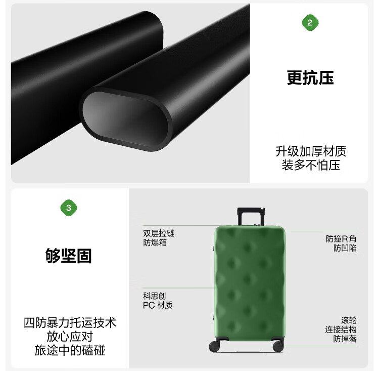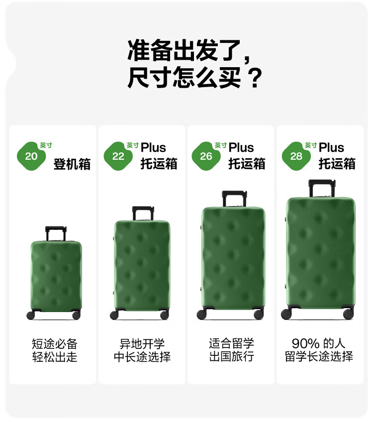 不莱玫行李箱拉杆箱旅行箱子大容量女学生男出国托运密码箱26英寸 绿色