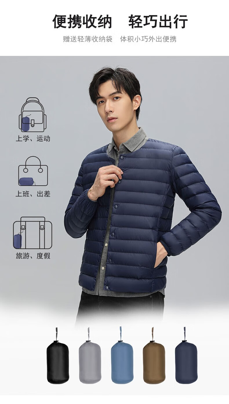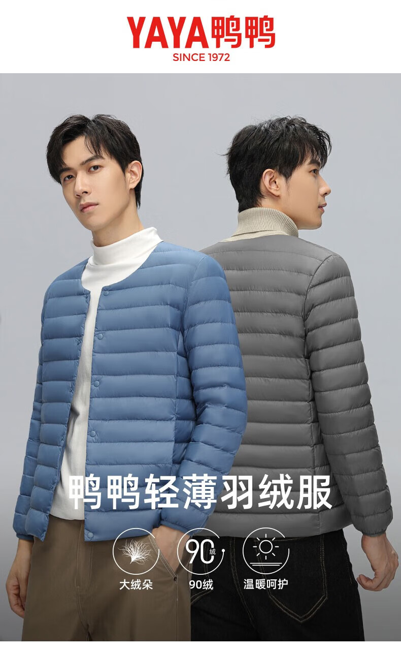 鸭鸭(YAYA)轻薄羽绒服男士2025冬季新款时尚修身百搭保暖压胶内穿外套内胆 黑色 M
