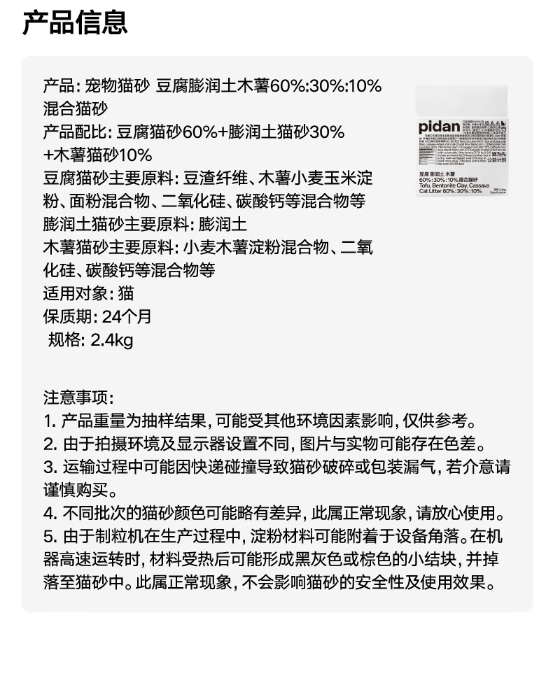 pidan经典混合猫砂 豆腐膨润土混合 2.4kg款4包装