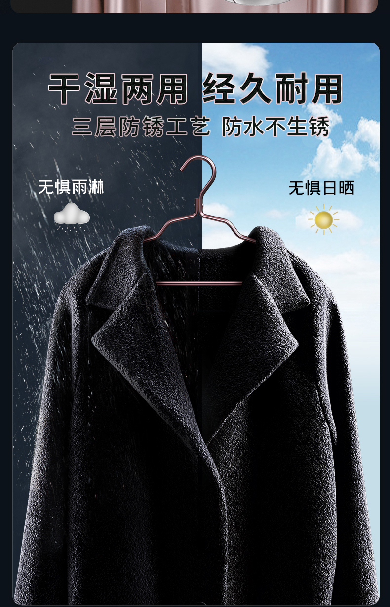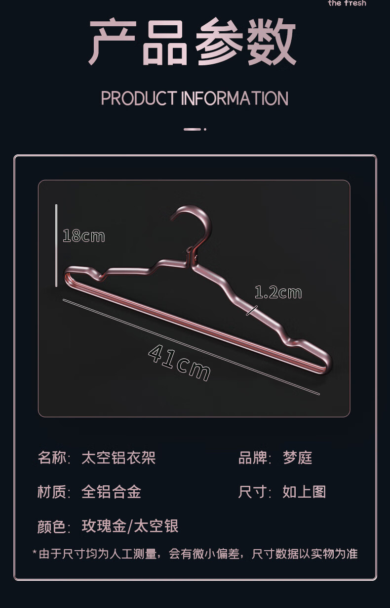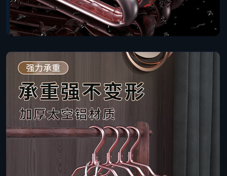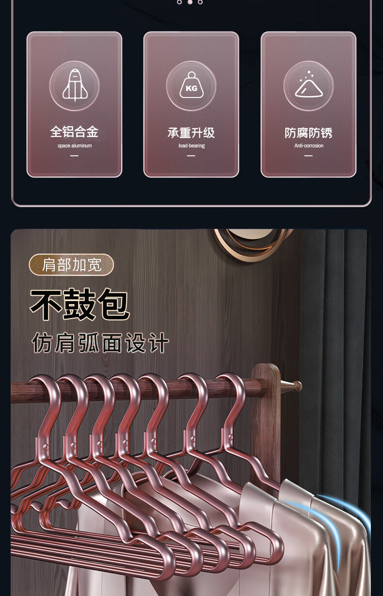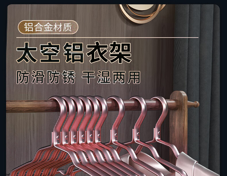 梦庭 太空铝合金衣架家用晾挂衣架子衣挂晒衣架 玫瑰金10只装