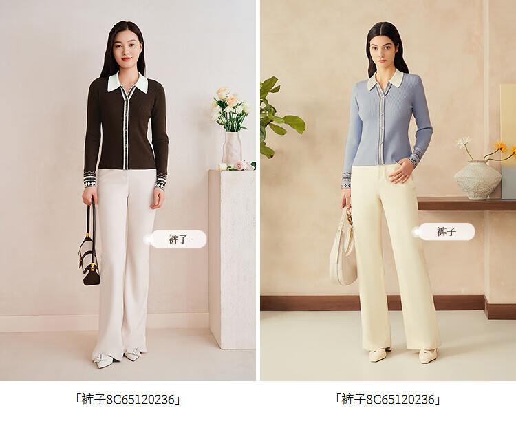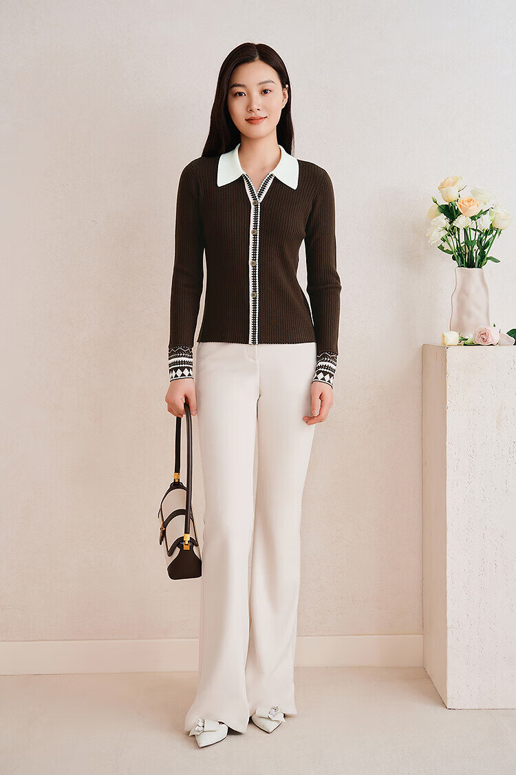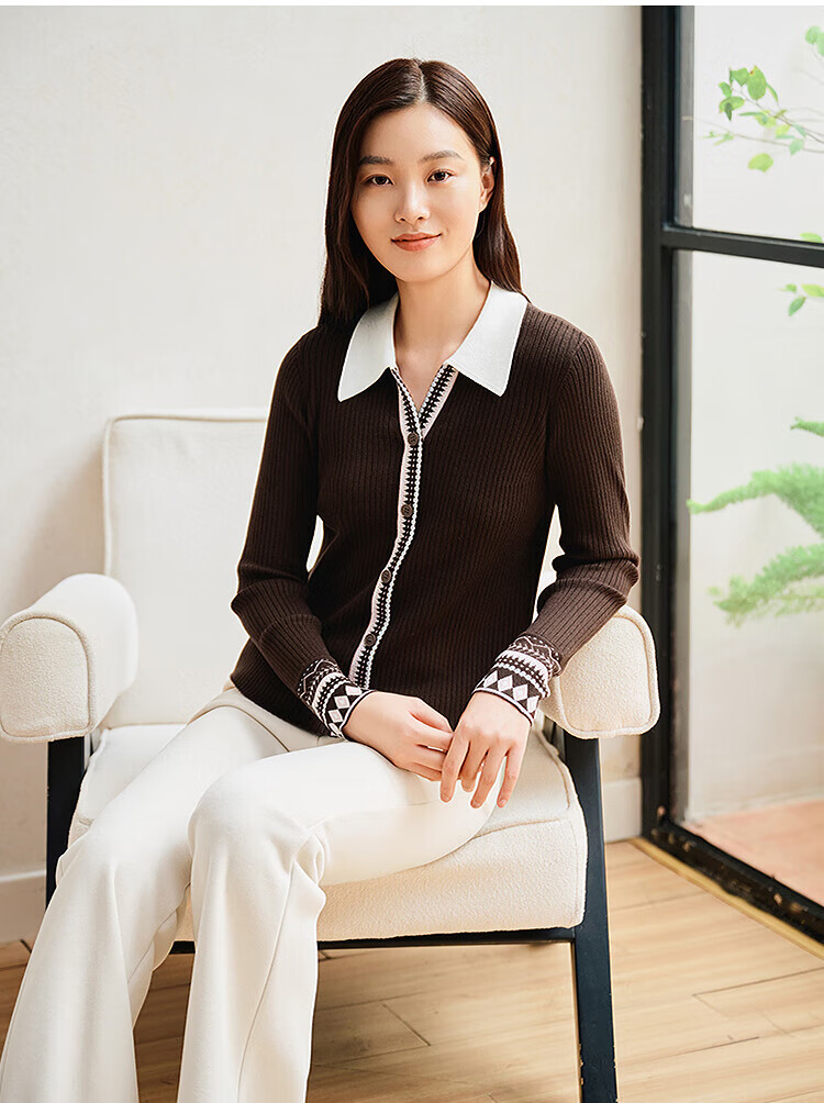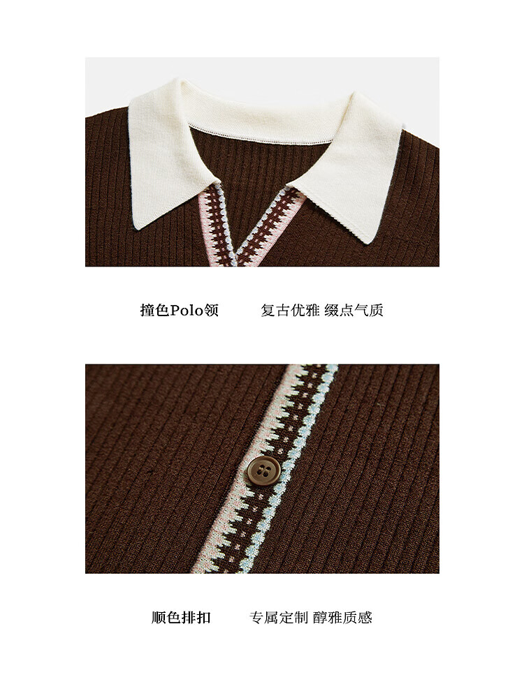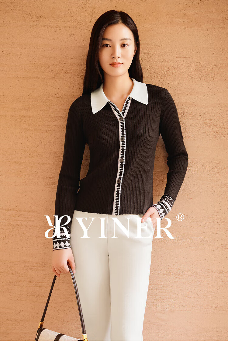 YINER音儿专选2025年春季【费尔岛纹】撞色POLO领真丝羊毛针织衫 浅蓝 XL 42