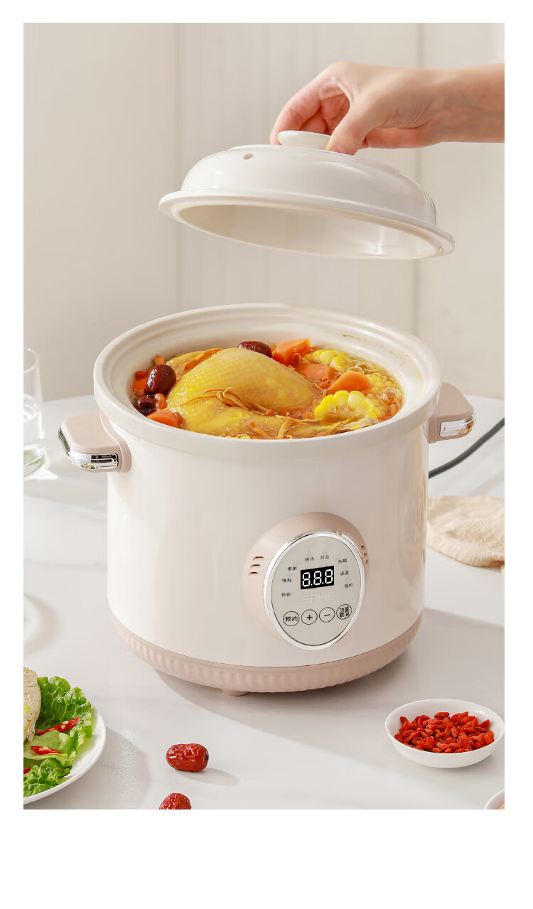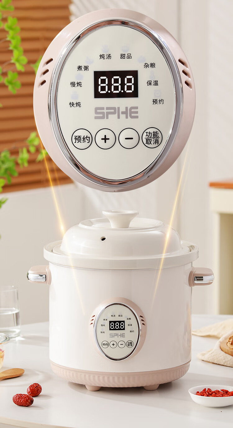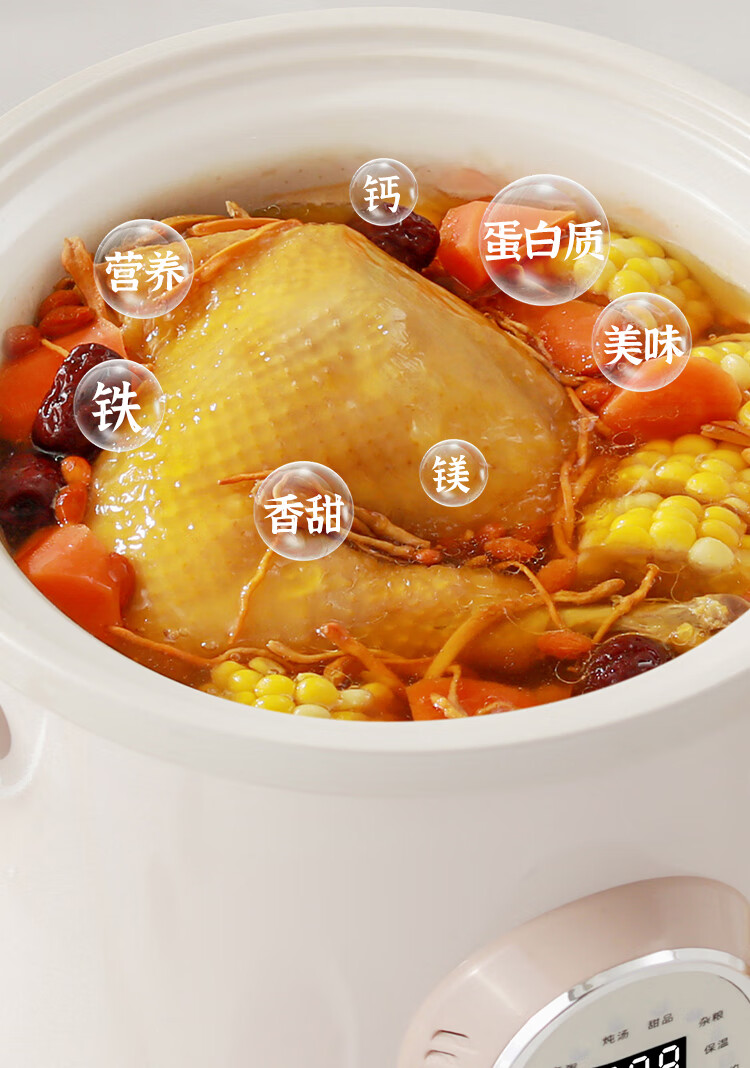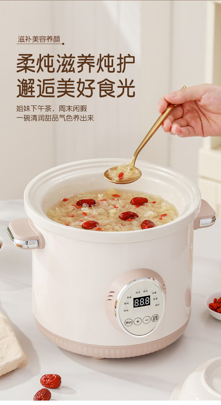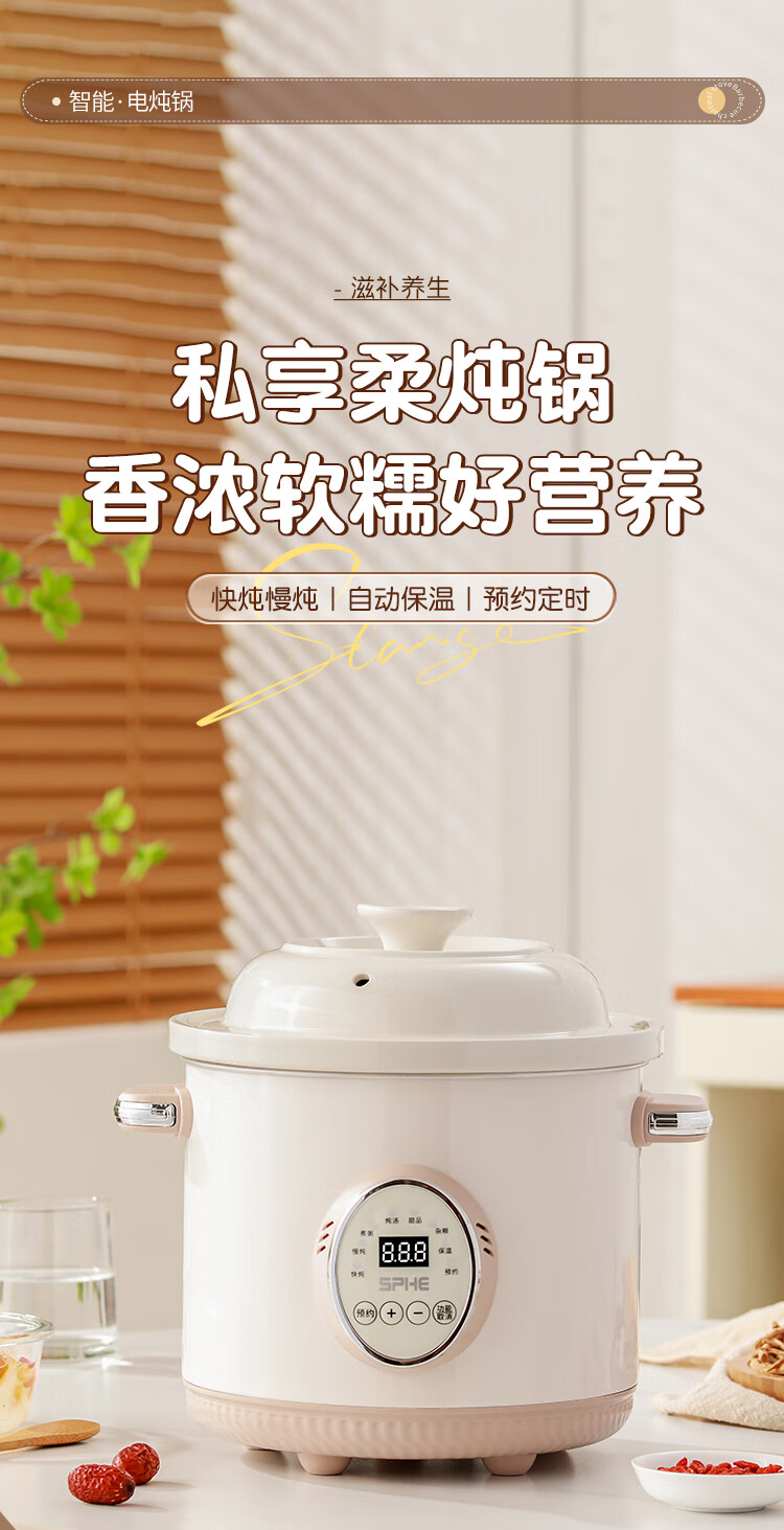 SPHE正品苏泊电炖锅家用陶瓷煲汤炖汤粥煮粥砂锅全自动辅食燕窝炖盅 6L 镀金白瓷预约款【自动保温】