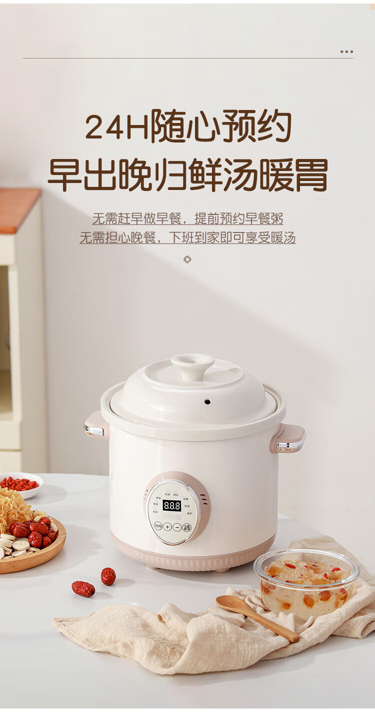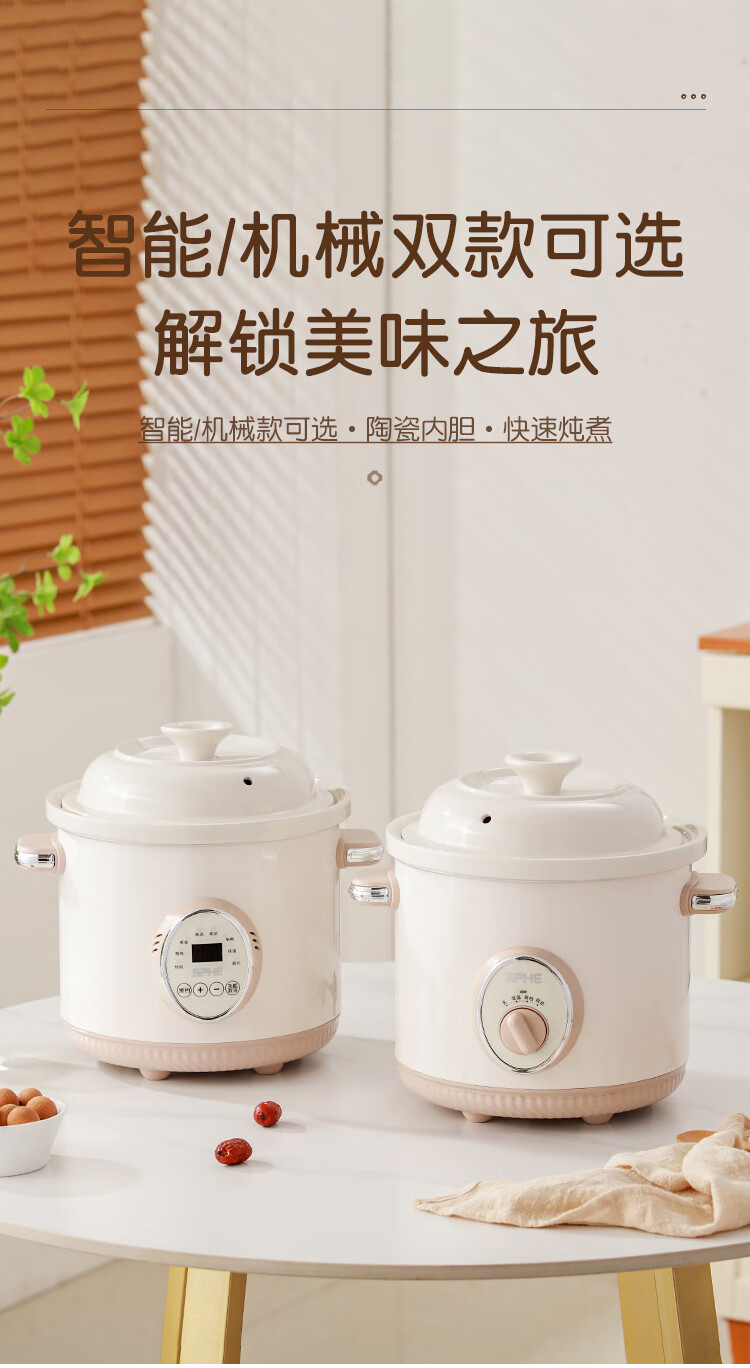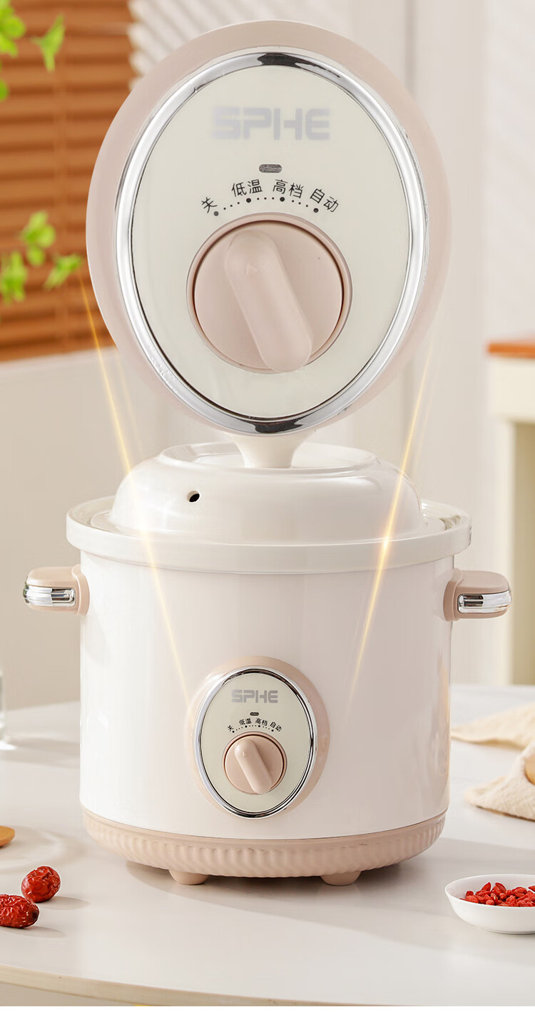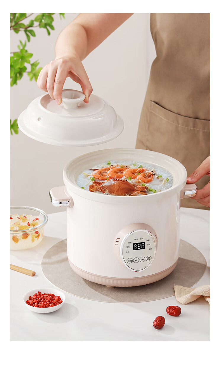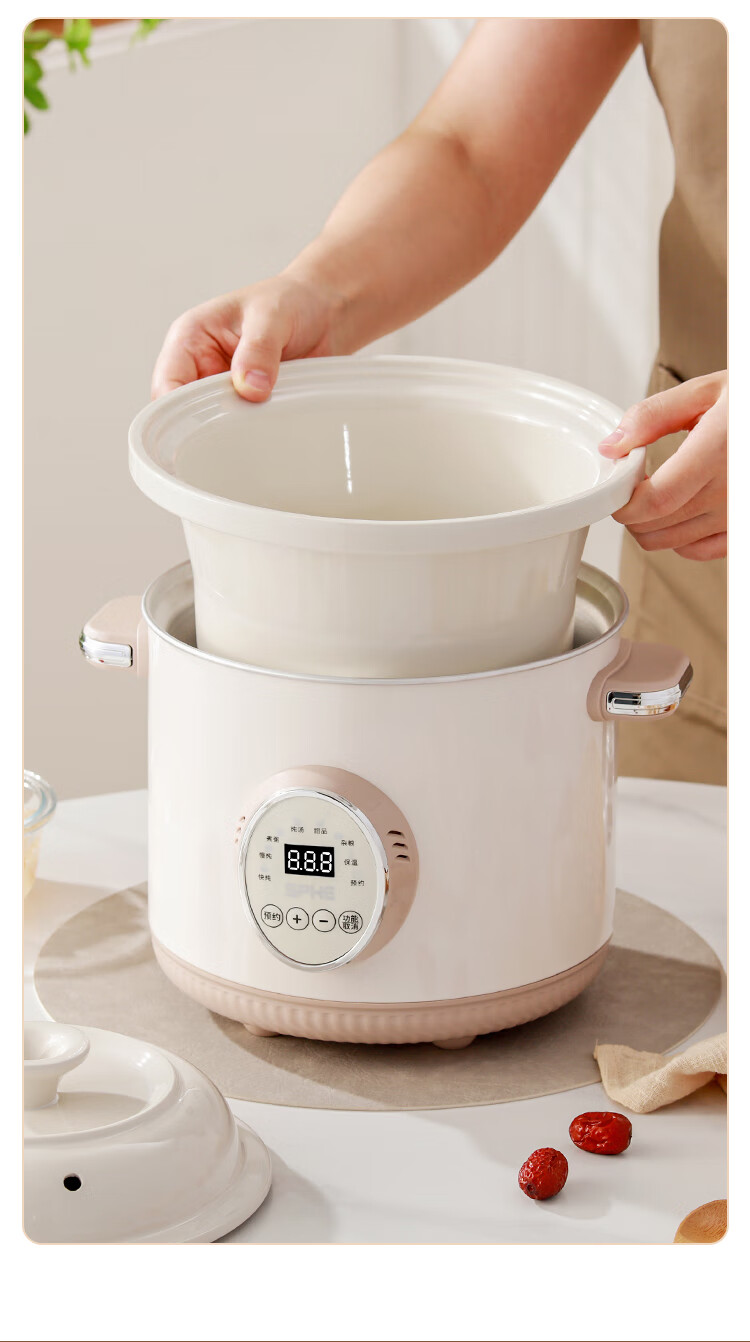 SPHE正品苏泊电炖锅家用陶瓷煲汤炖汤粥煮粥砂锅全自动辅食燕窝炖盅 6L 镀金白瓷预约款【自动保温】