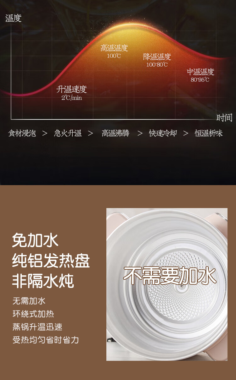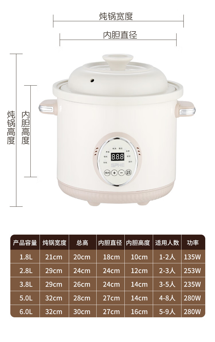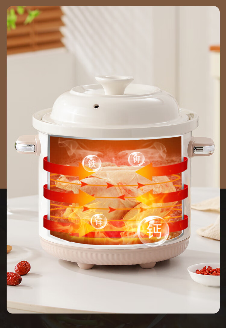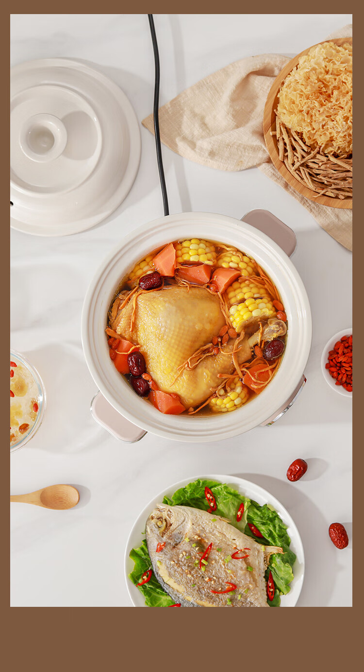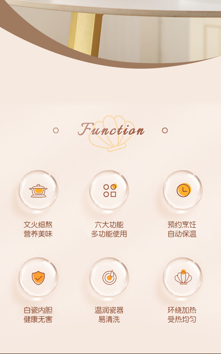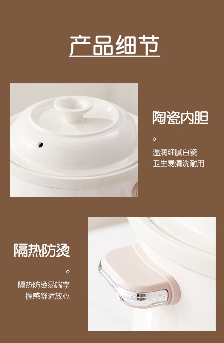 SPHE正品苏泊电炖锅家用陶瓷煲汤炖汤粥煮粥砂锅全自动辅食燕窝炖盅 6L 镀金白瓷预约款【自动保温】