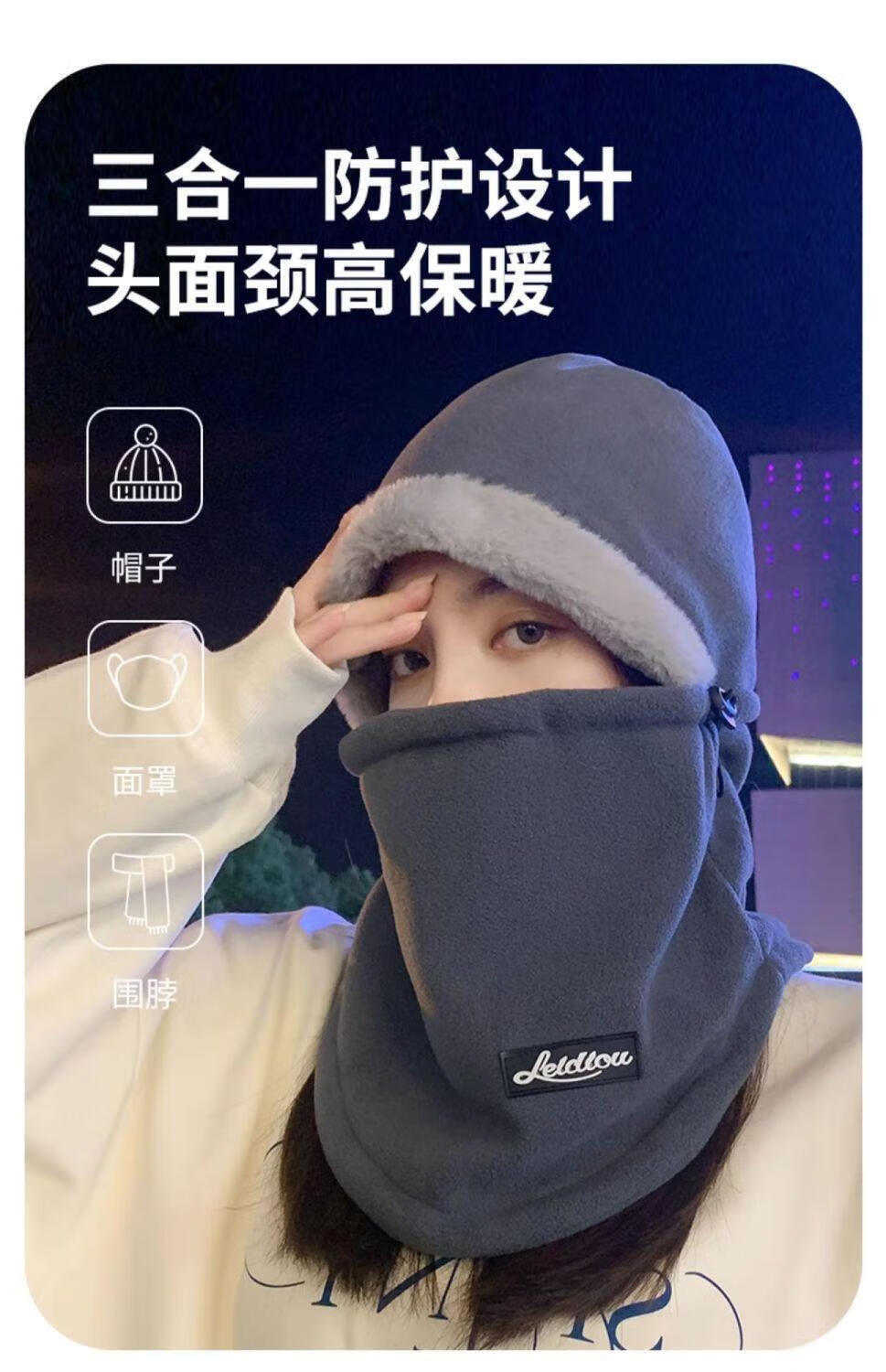 |保暖头套帽子围巾一体帽男冬季加厚滑雪骑电动车面罩防风套头帽 深灰色 均码