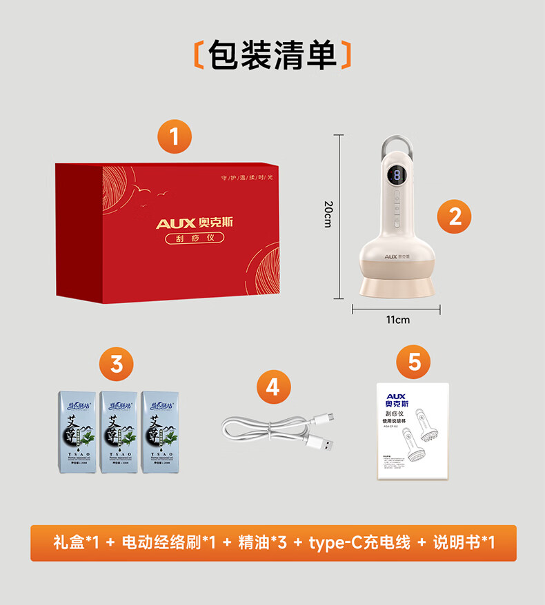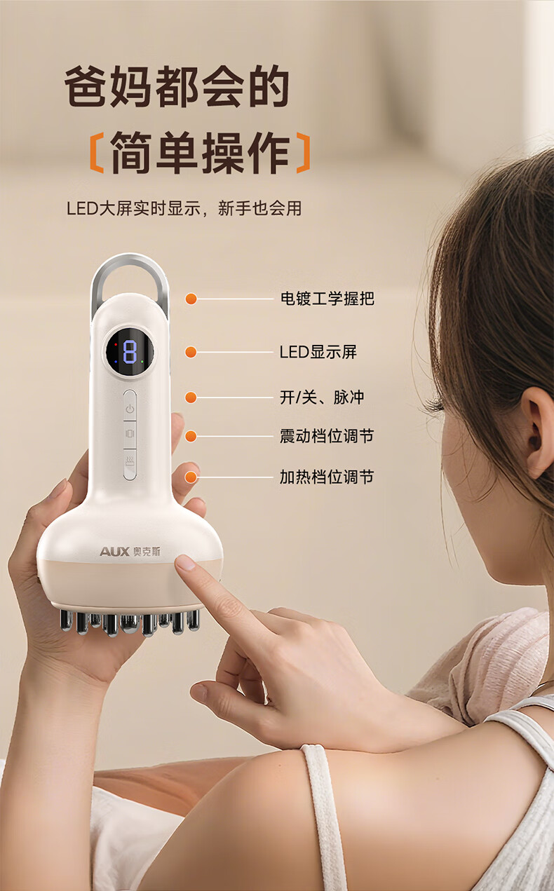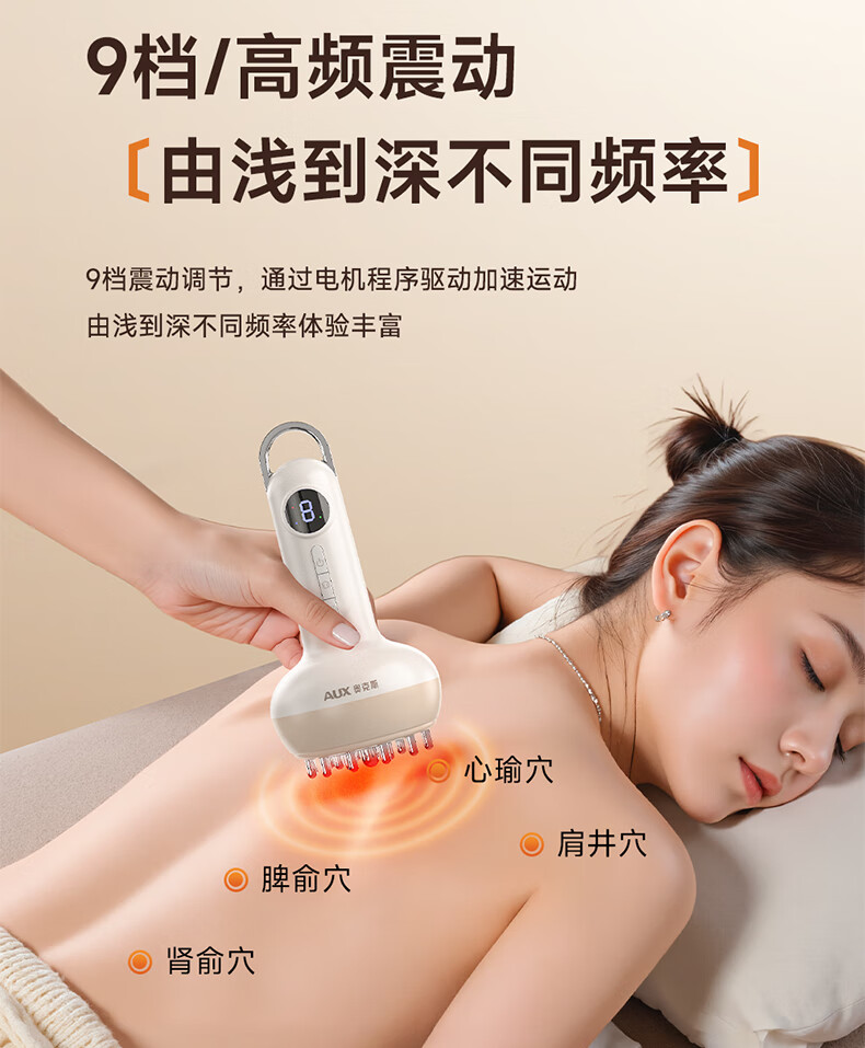 奥克斯电动经络刷按摩全身通用肩颈疏通筋刷腿刮痧仪器揉腹背瘦肚子神器送礼推荐实用礼品 顶配彩盒送礼推荐款