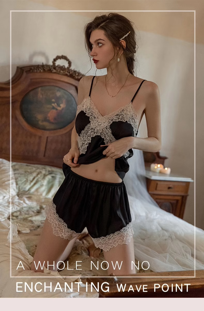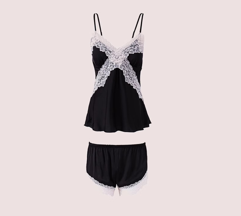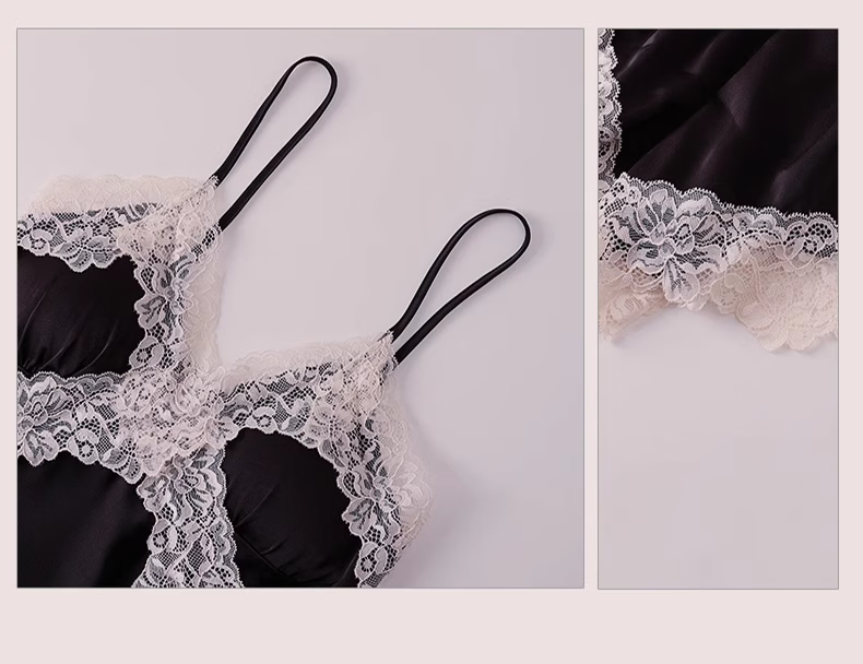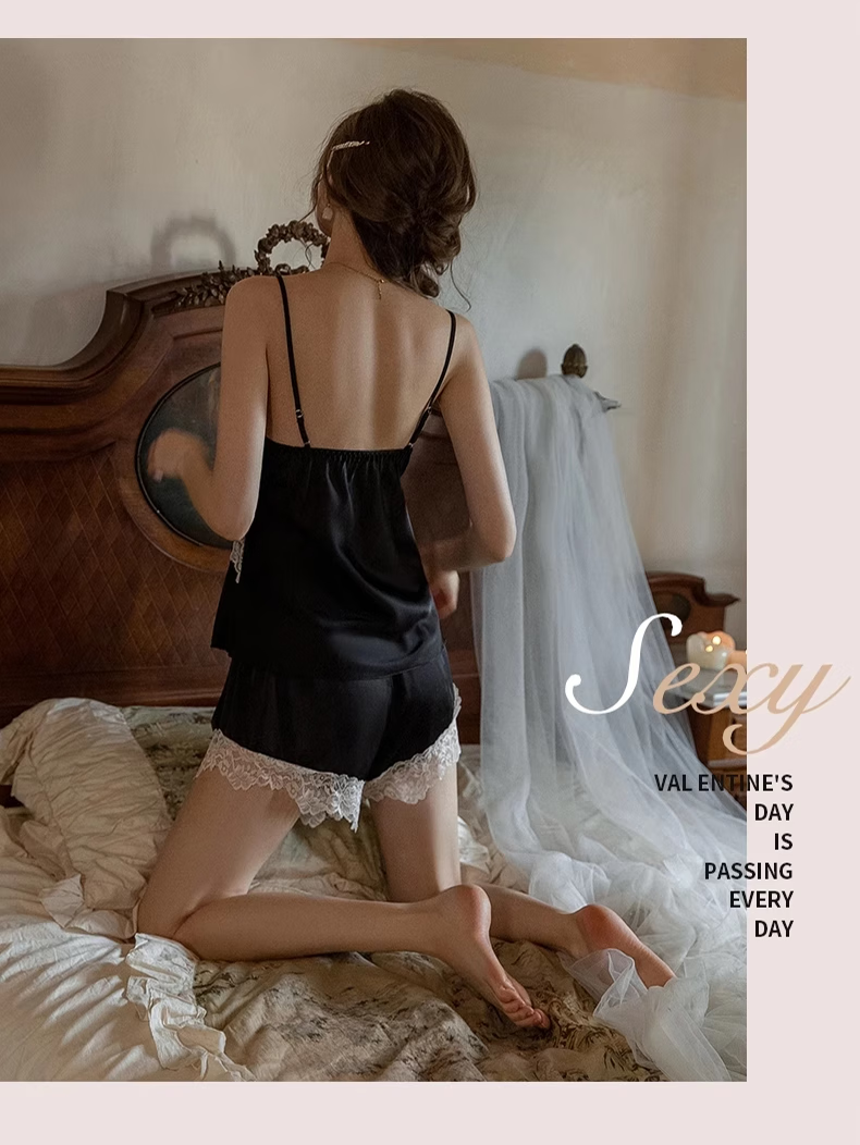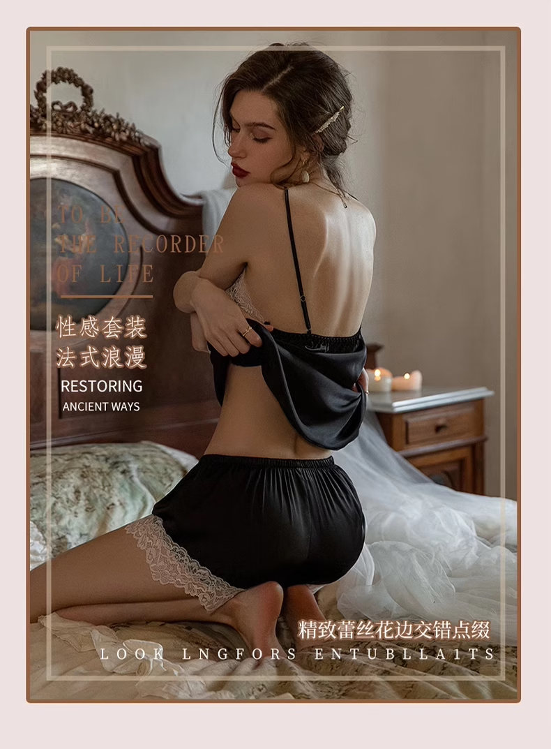 性感睡衣房事高潮诱惑肚兜大码倾诉内衣禁欲系蕾丝qqny两件套 黑色[吊带上衣+短款]胸垫可拆 M90-115斤