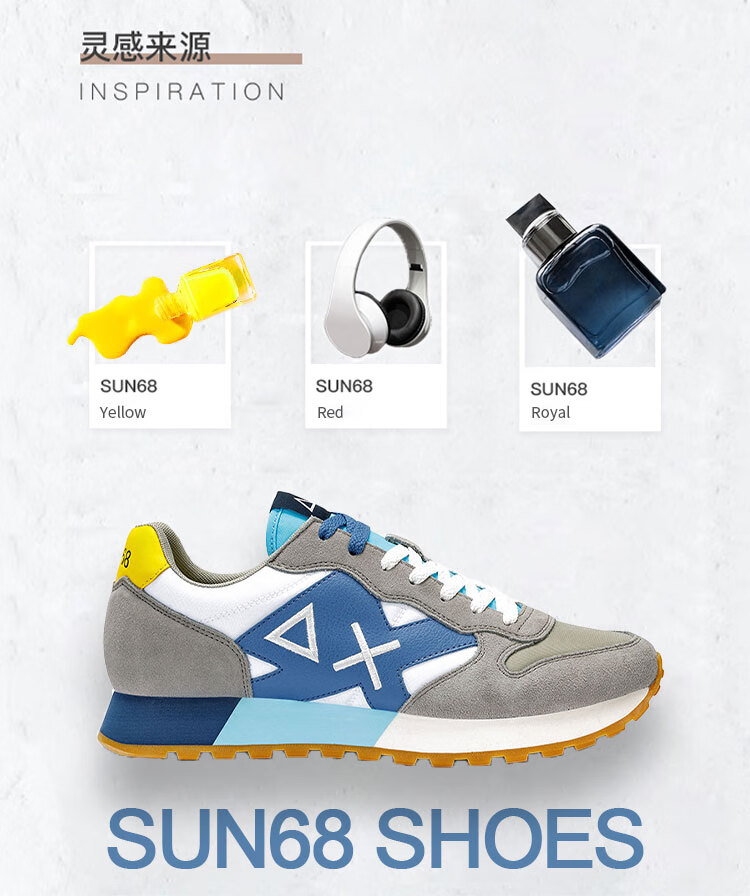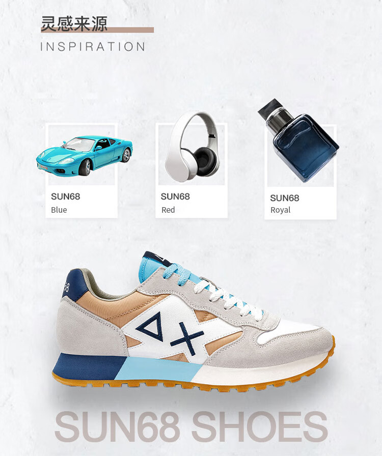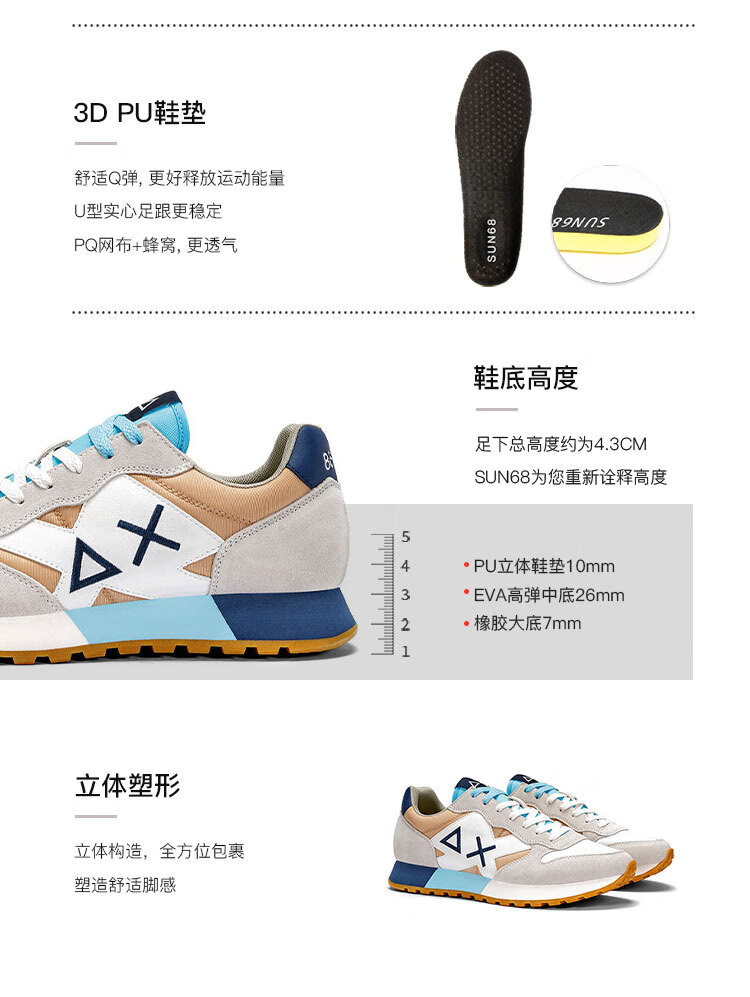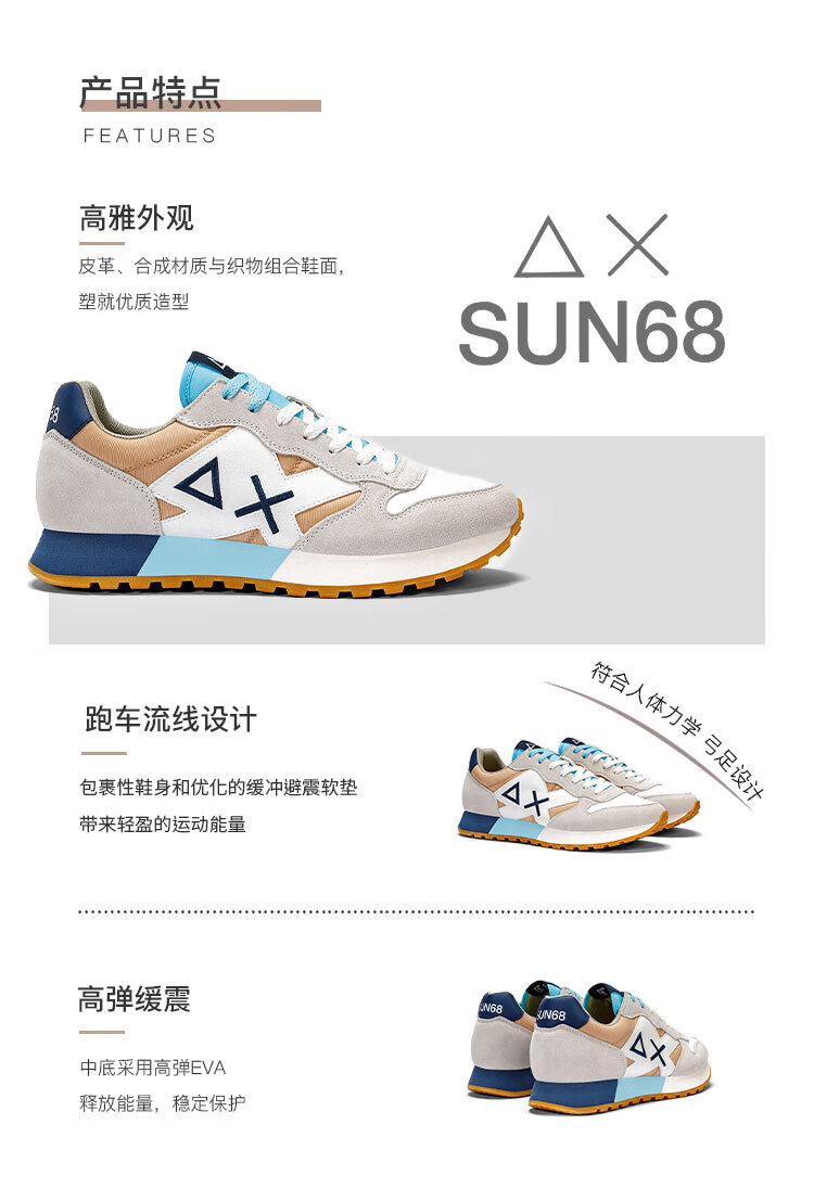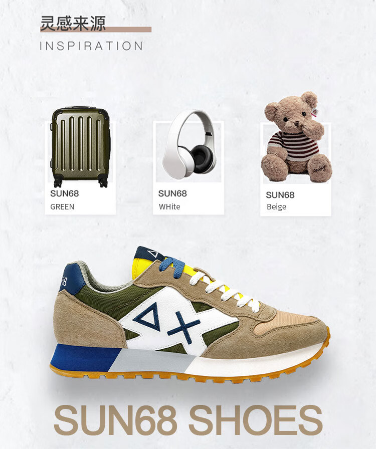Sun68意大利小众时尚休闲男鞋经典缓震透气百搭运动鞋春夏新品低帮 Z34112-1619米色/军绿色 43
