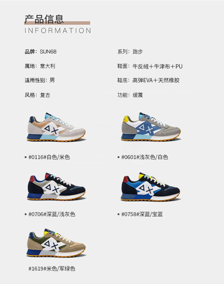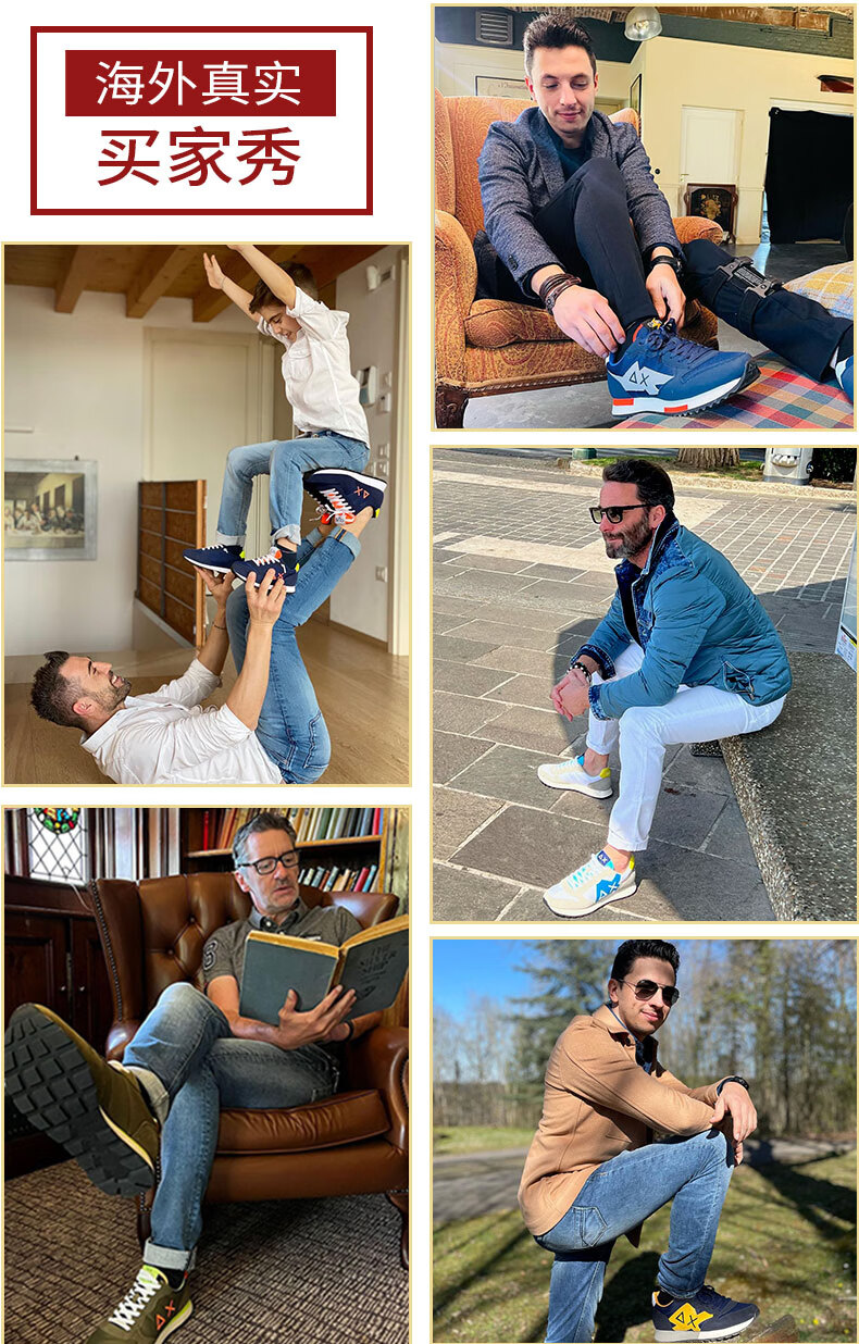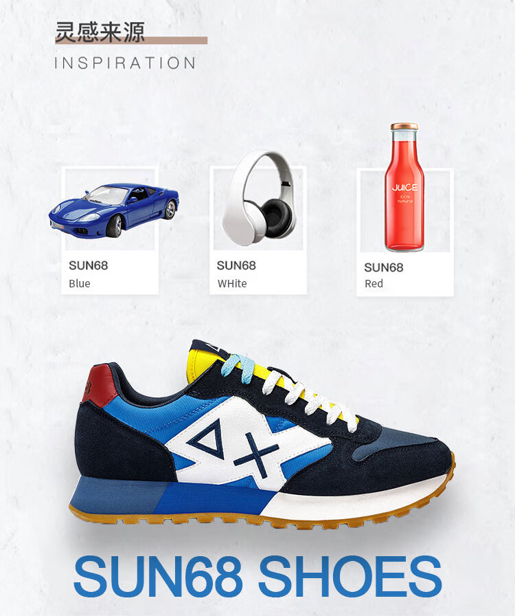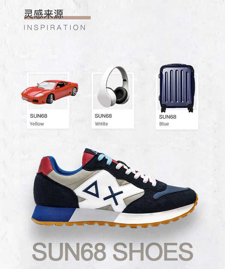 Sun68意大利小众时尚休闲男鞋经典缓震透气百搭运动鞋春夏新品低帮 Z34112-1619米色/军绿色 43