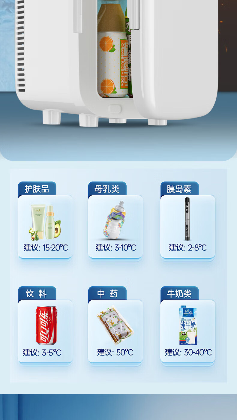 凯吉熊迷你冰箱便携冷藏放药品恒温2-8度胰岛素冰箱母乳化妆品家用车载 数显款-药品母乳冷藏 车家两用 10L
