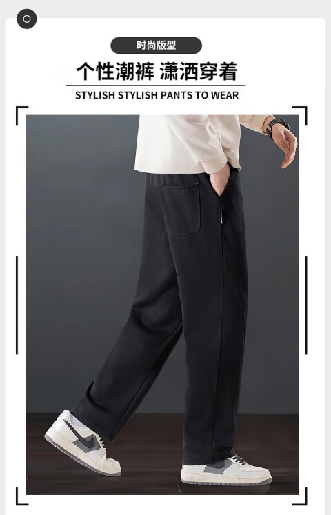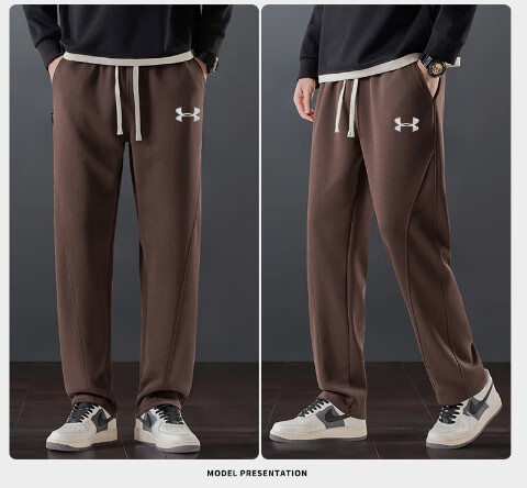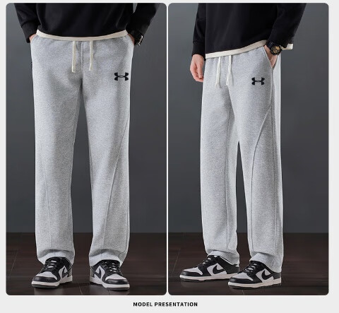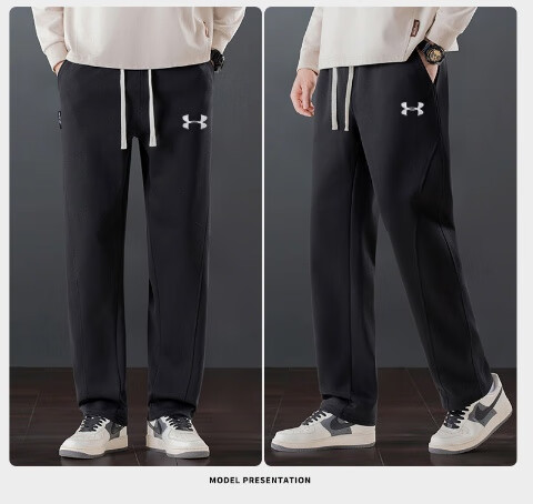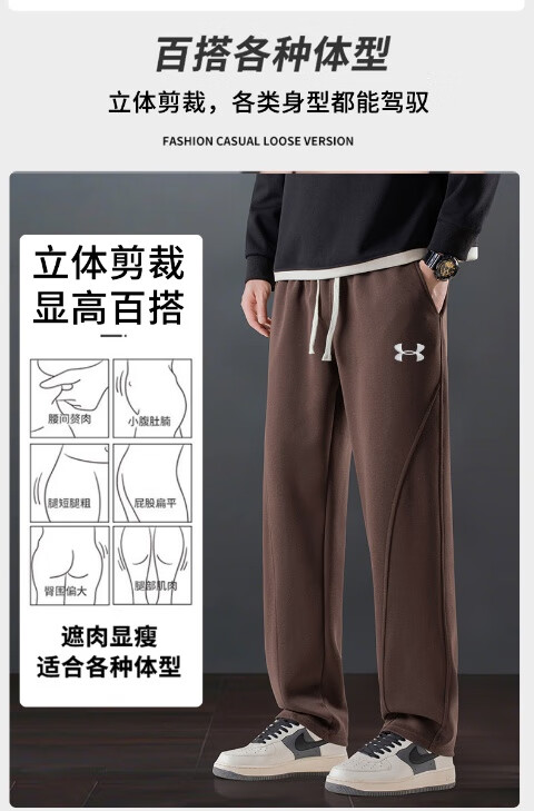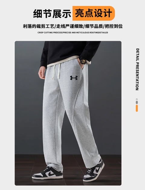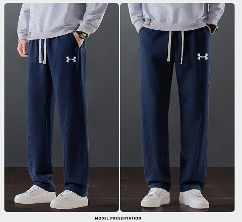 安德玛刺绣logo秋季男士宽松大码运动裤休闲针织舒适卫裤保暖束脚长裤子 黑色春秋款 5XL 建议体重200-220斤
