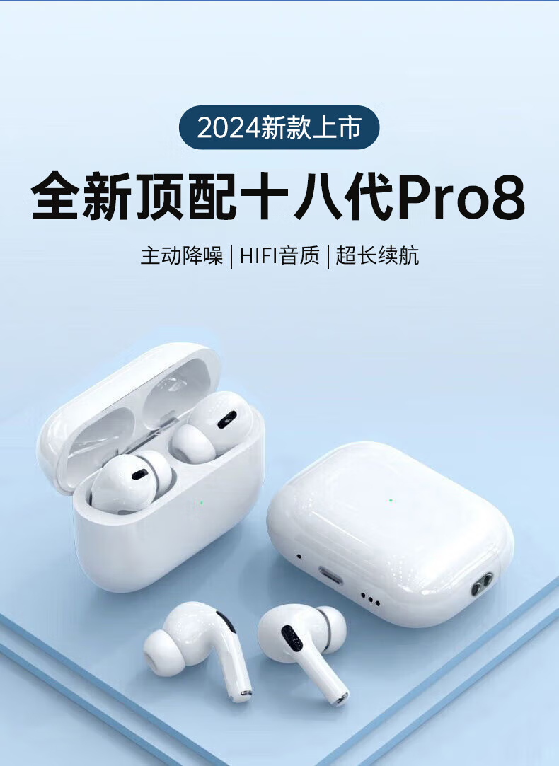 DIJO【华强北18代Pro8顶配】蓝牙耳机无线Air适用苹果主动降噪iphone15/14/13/12/五代ios入耳式运动 【全新升级全功能】滑动调节音量 50db主动降噪丨蜂鸣器丨入耳检测