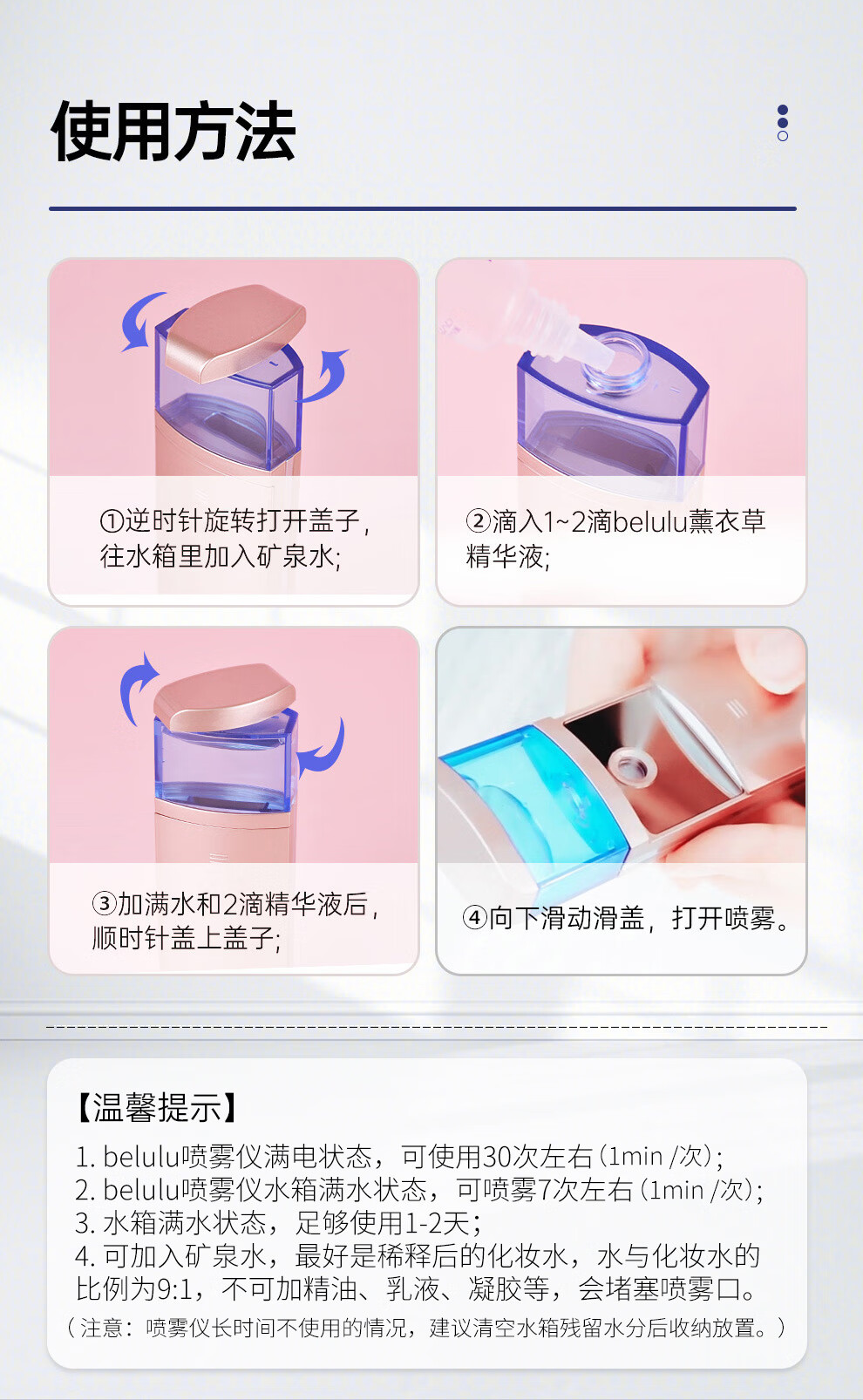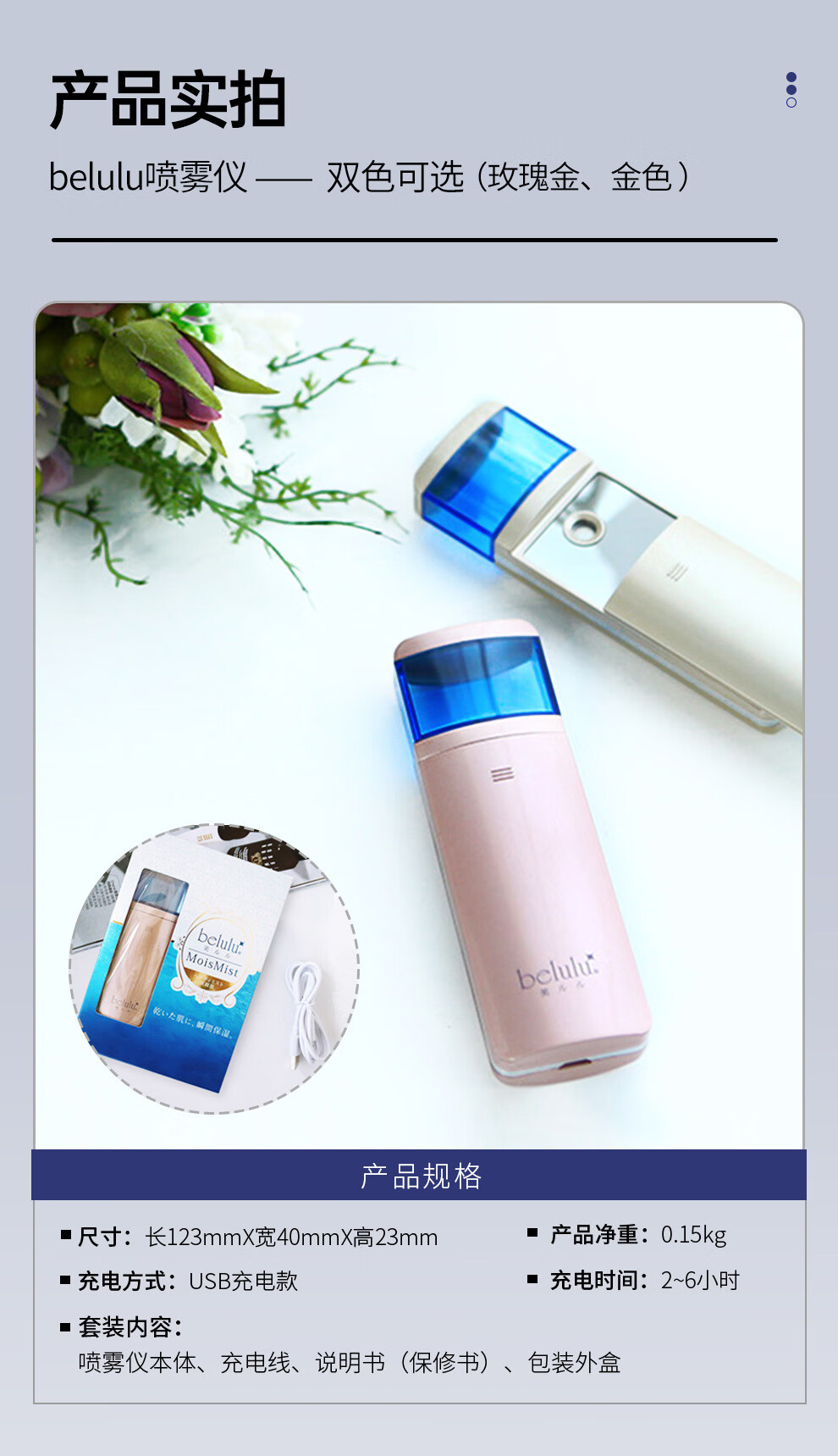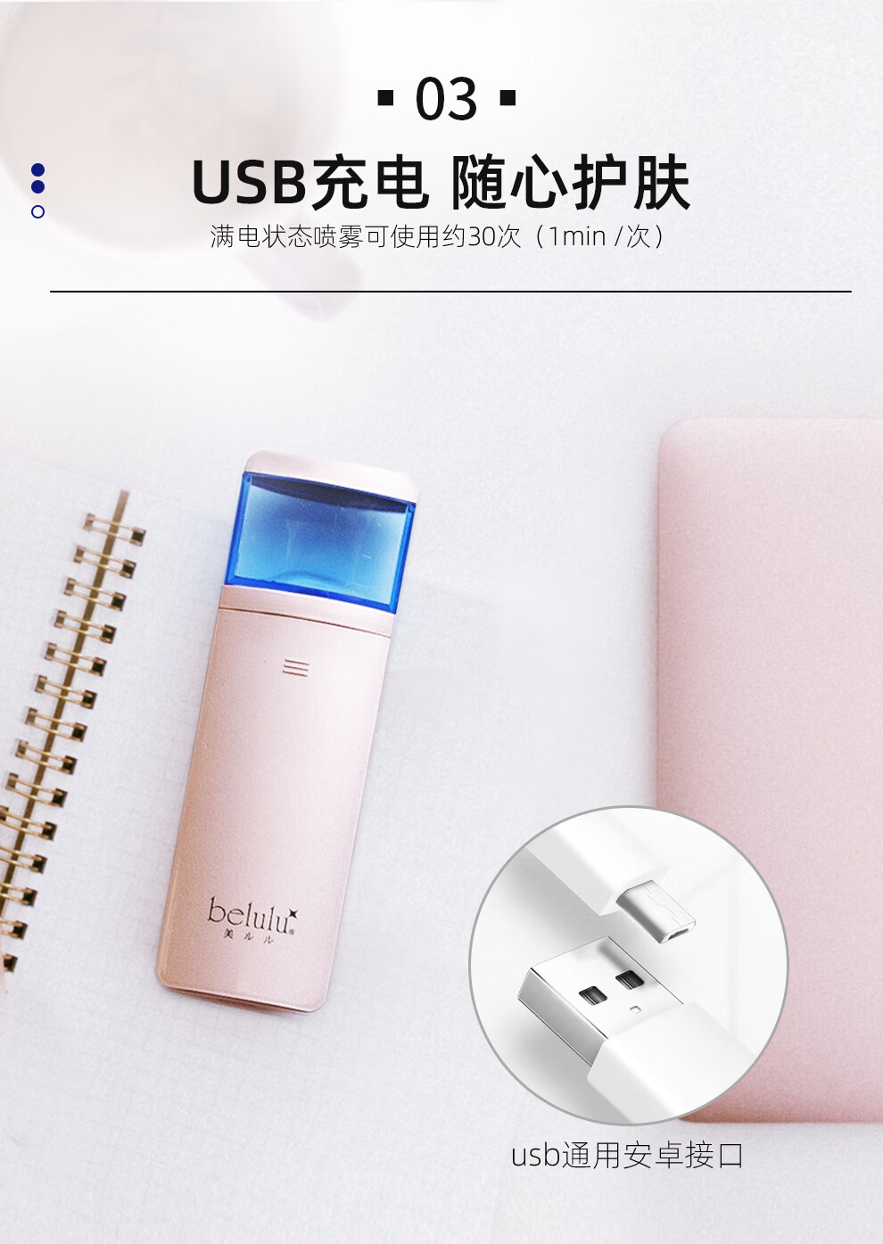 belulu纳米雾化喷雾仪补水美容仪水光仪脸部保湿滋润手持便携mosimist生日礼物送女友 玫瑰粉(不含精华液)