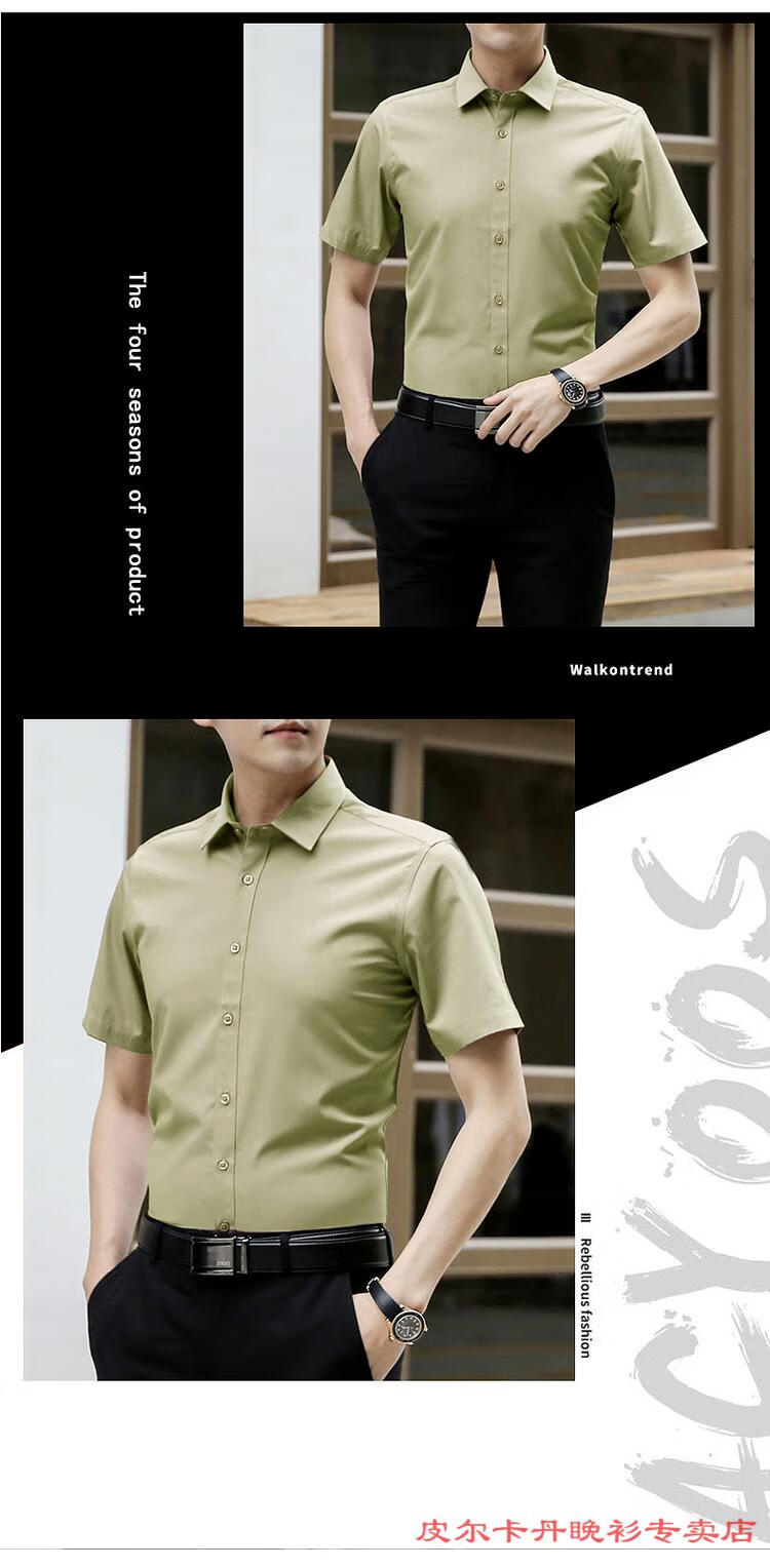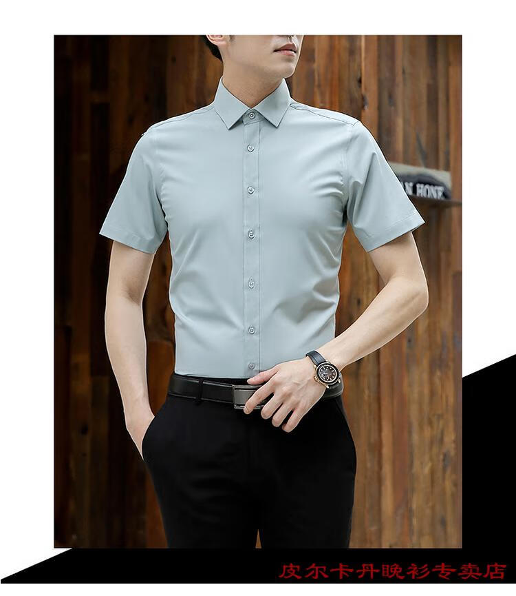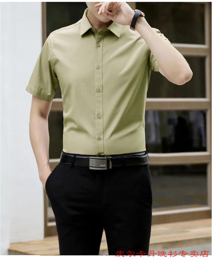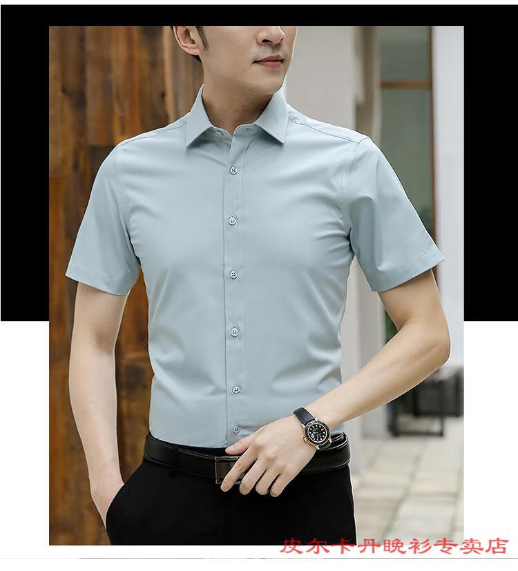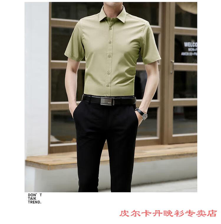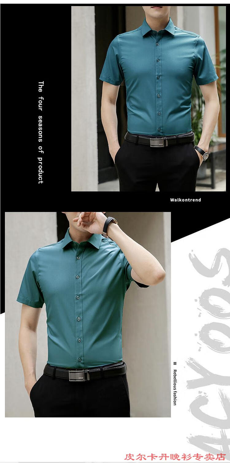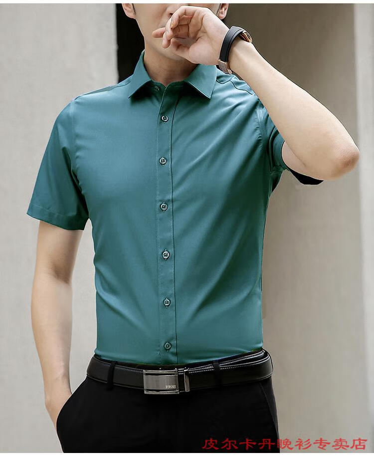皮尔卡丹(pierre cardin)高档品牌男士白色衬衫短袖夏季薄款商务职业正装修身半袖西装衬衫 gam-8808纯色短袖衬衫松石绿 2XL (体重155-175斤)