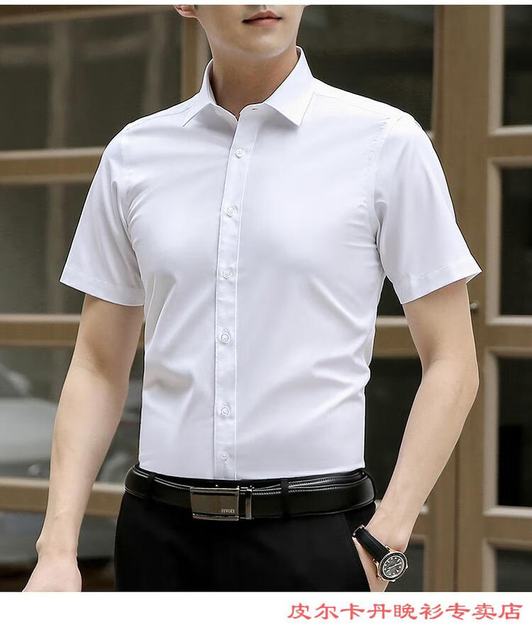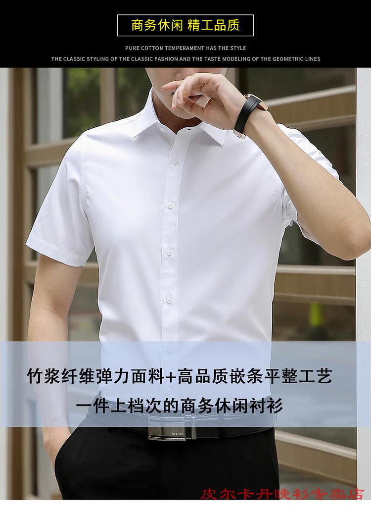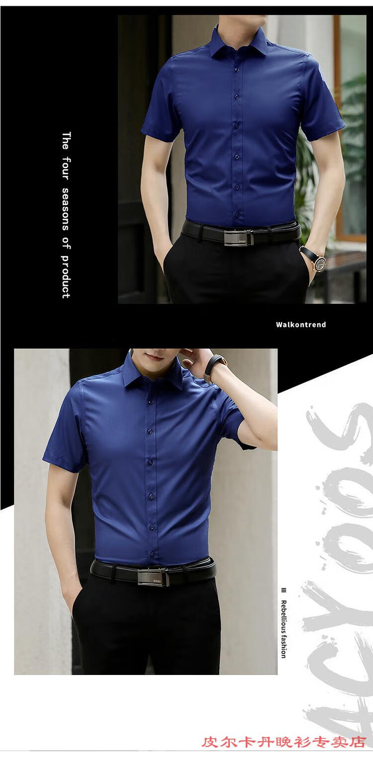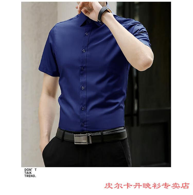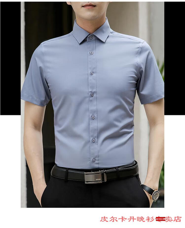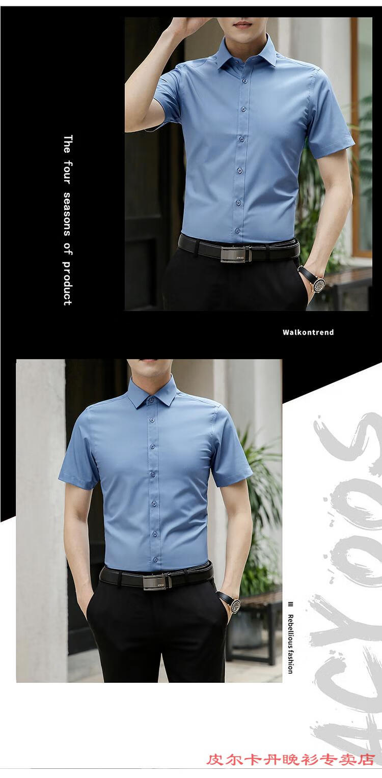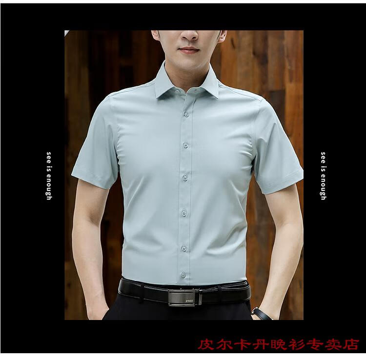 皮尔卡丹(pierre cardin)高档品牌男士白色衬衫短袖夏季薄款商务职业正装修身半袖西装衬衫 gam-8808纯色短袖衬衫松石绿 2XL (体重155-175斤)