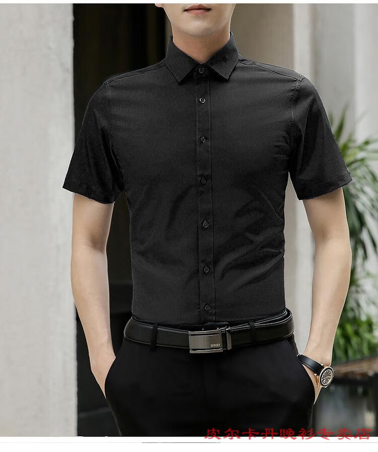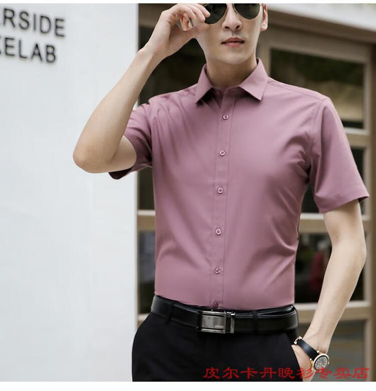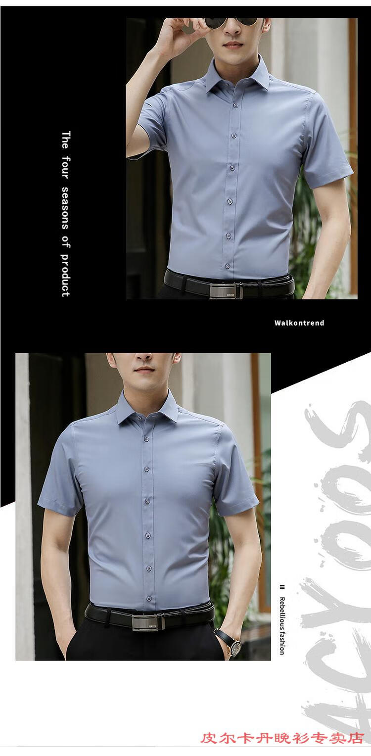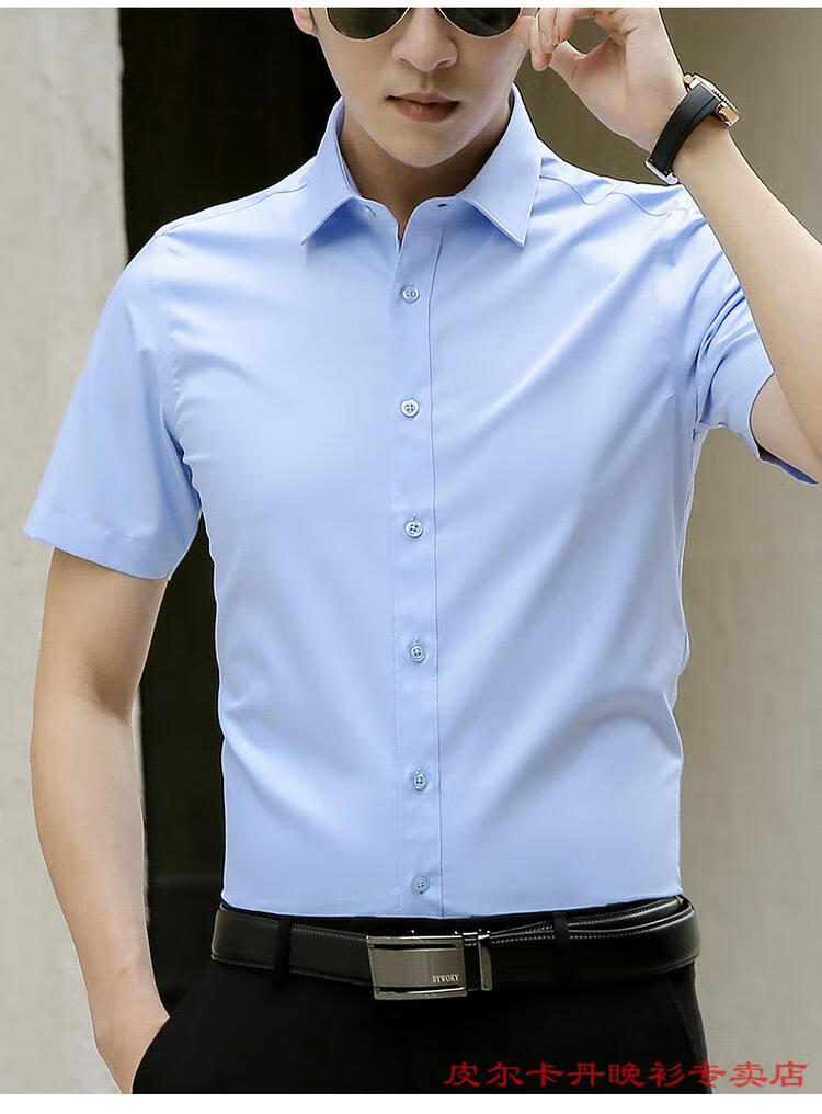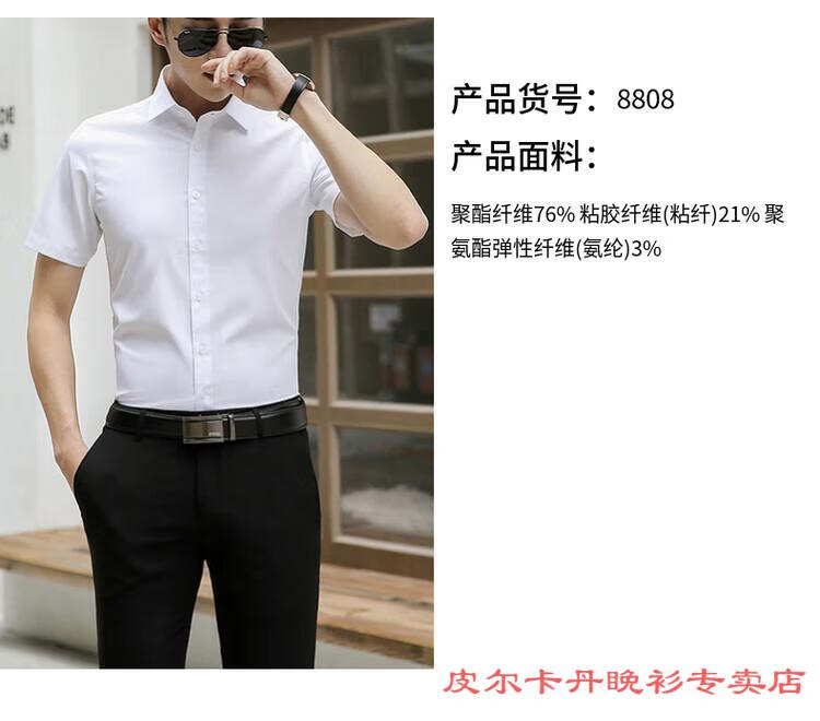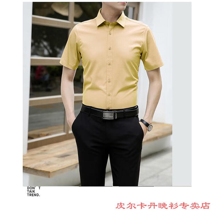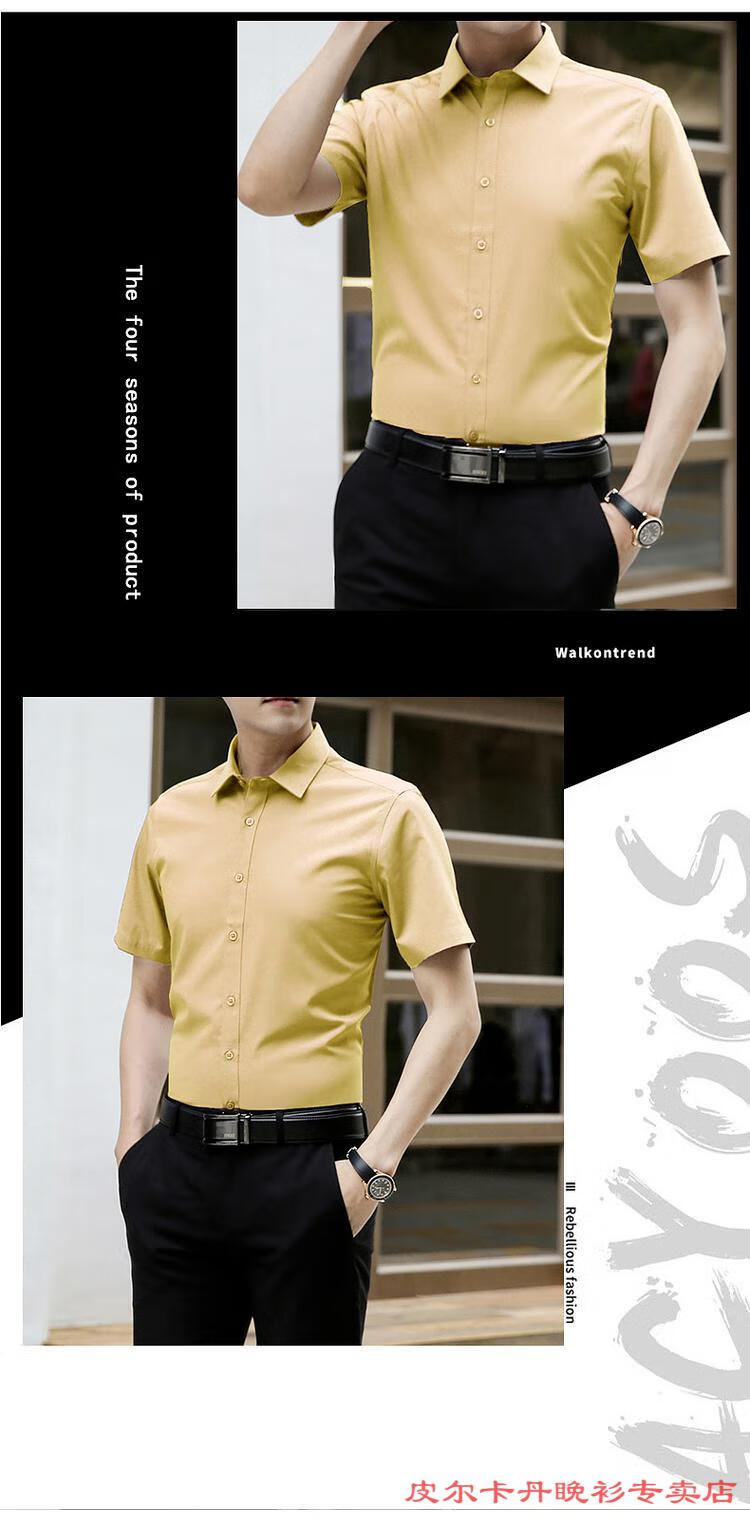 皮尔卡丹(pierre cardin)高档品牌男士白色衬衫短袖夏季薄款商务职业正装修身半袖西装衬衫 gam-8808纯色短袖衬衫松石绿 2XL (体重155-175斤)
