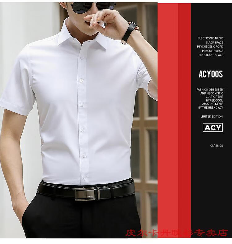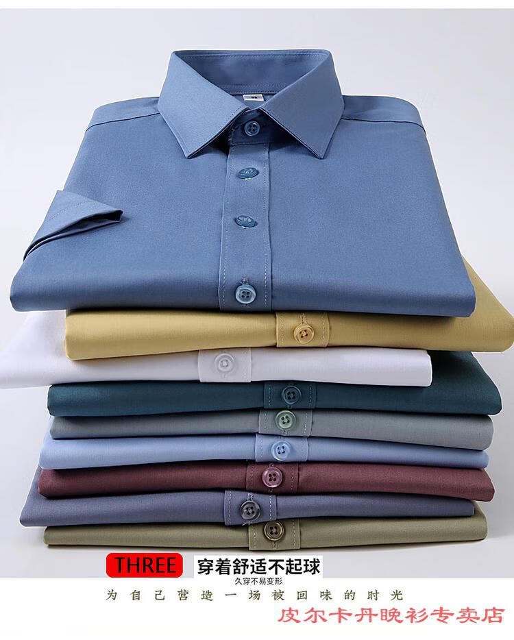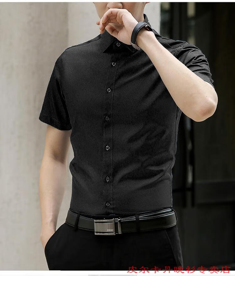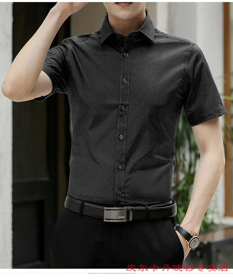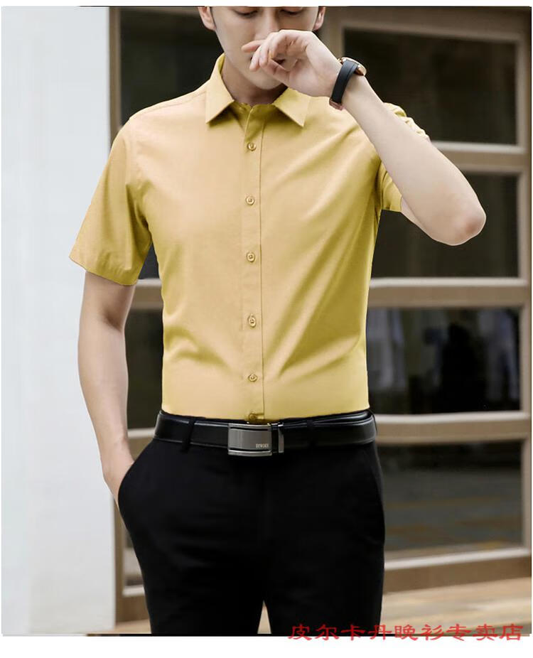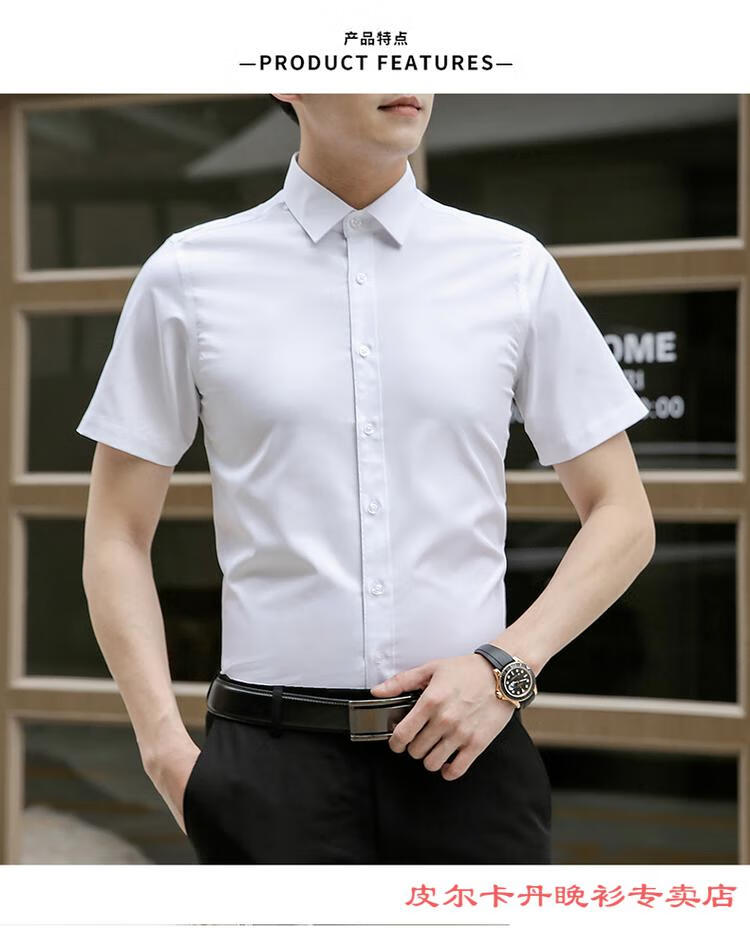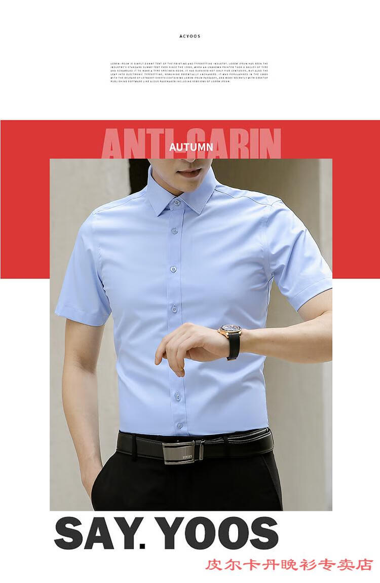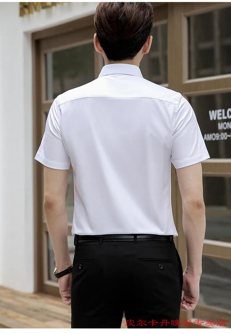 皮尔卡丹(pierre cardin)高档品牌男士白色衬衫短袖夏季薄款商务职业正装修身半袖西装衬衫 gam-8808纯色短袖衬衫松石绿 2XL (体重155-175斤)